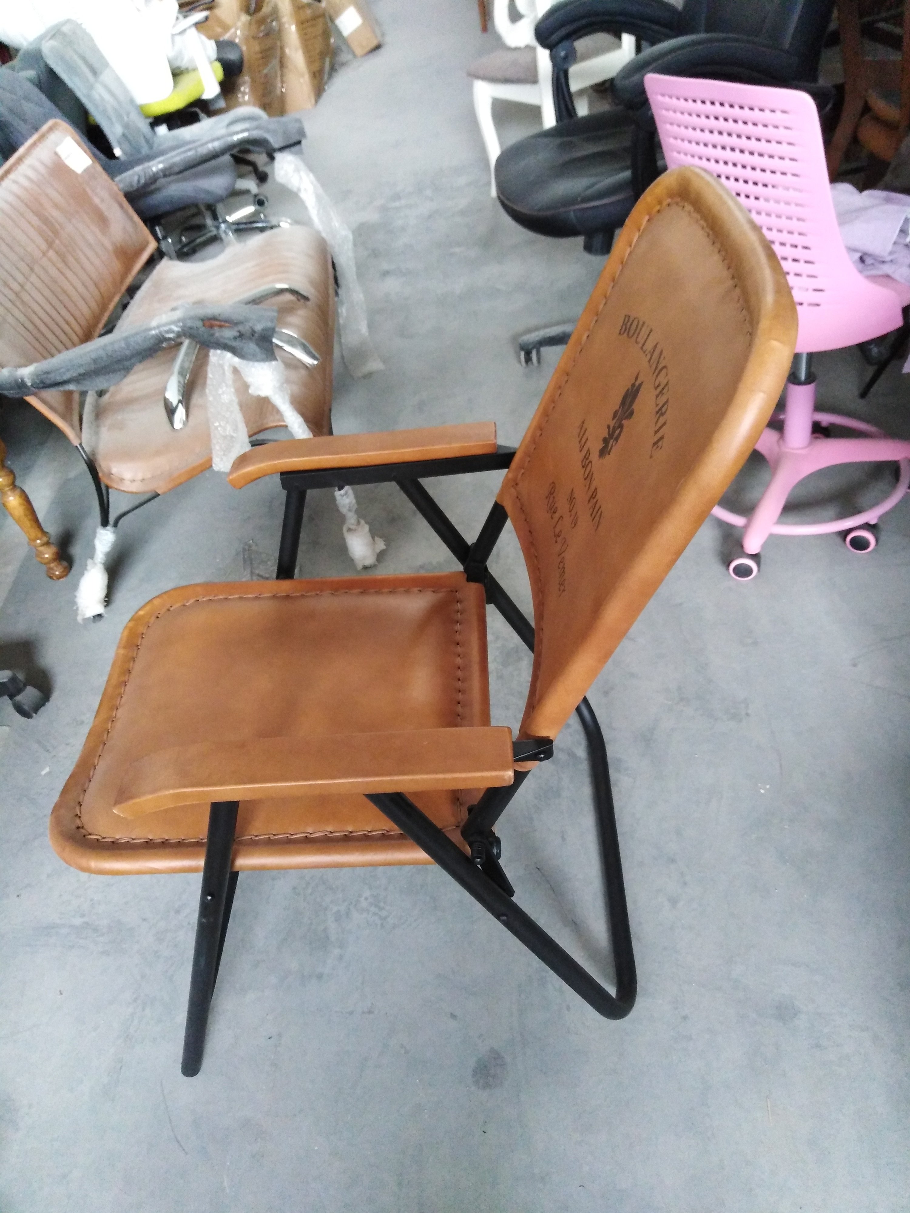 Описание дефекта: Нарушение ЛКП на ножках, потертости и незначительные порезы на коже спинок, ржавчина в местах соединения