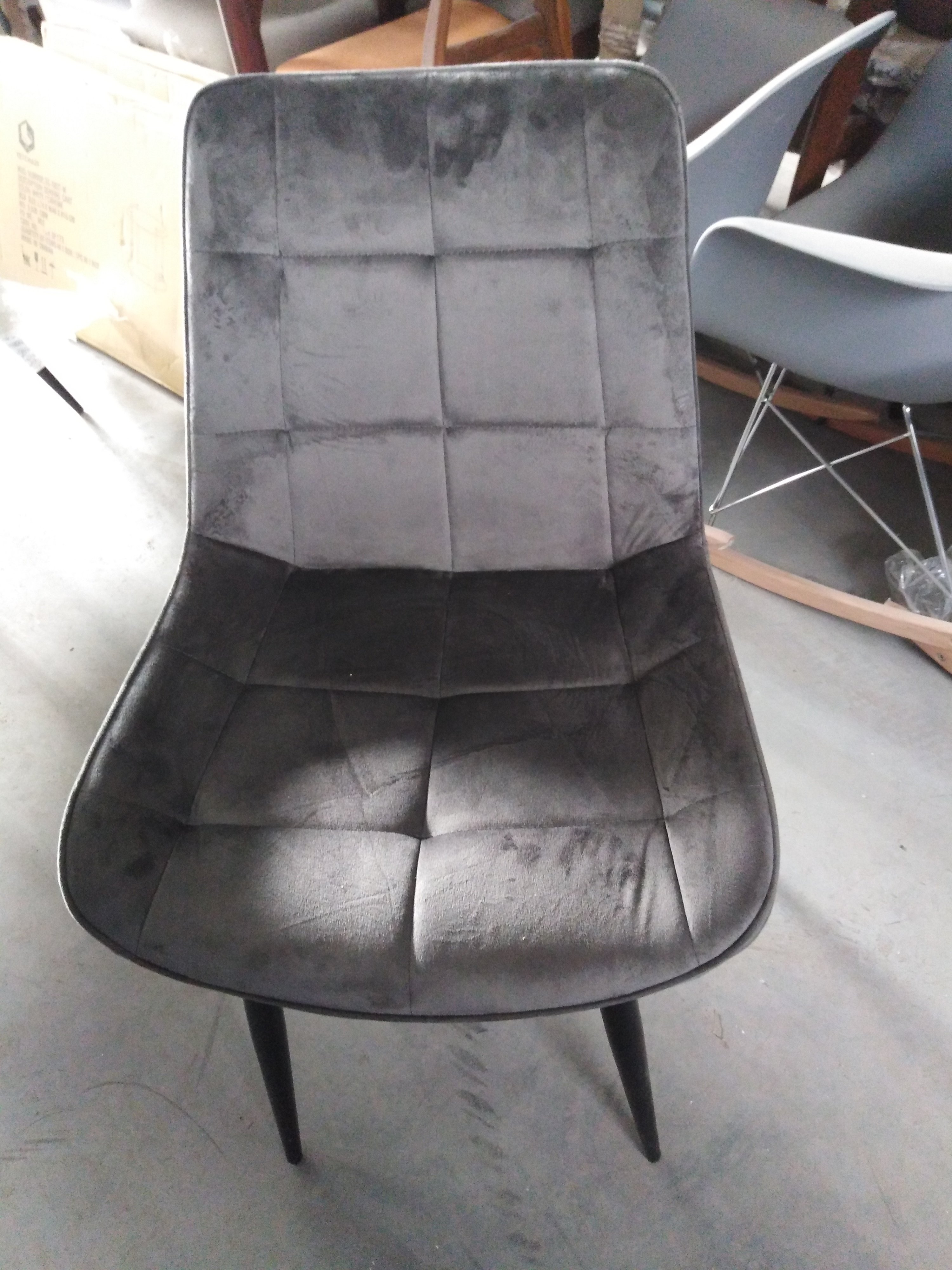 Описание дефекта: Стулья в собраном виде. Нарушение ЛКП на ножках. Потертости материала сидения.