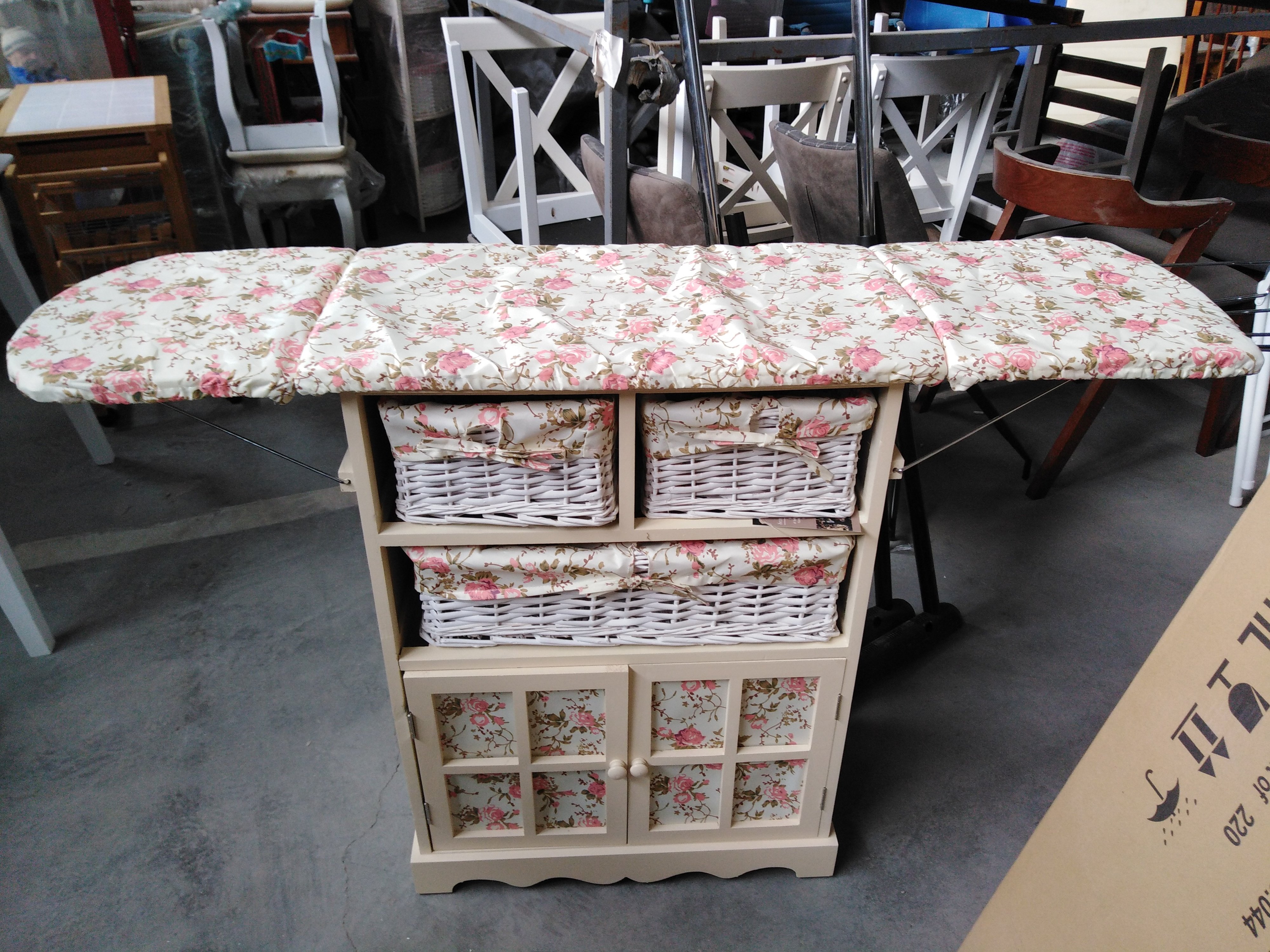 Описание товара без дефектов: Интересный и продуманный дизайн, ориентированный на практичность, выгодно выделяет гладильный комод Secret De Maison CAMPANARD среди привычной мебели. Каркас из массива павловнии, покрашенный в цвет слоновой кости, плетеные корзины из бумажного жгута ручной работы и тканевые чехлы с цветочным принтом помогут создать атмосферу максимального уюта, спокойствия и умиротворения в вашем доме. В сложенном виде комод не занимает много места. Благодаря наличию специального складного механизма, его можно быстро и легко трансформировать в гладильную доску. Удобный размер доски, подставка для утюга и чехол из ткани обеспечивают оптимальные условия для глажки. Плетеные корзины разного размера и закрытое отделение с дверцами идеальны для хранения постельного белья, утюга и множества предметов. Этот стильный, привлекающий внимание комод, можно поставить в любой комнате: гостиной, спальне, коридоре, ванной. Модель выполнена из массива павловнии, легкого и одновременно прочного материала, с хорошими водоотталкивающими свойствами, благодаря чему комод долговечен, надежен и не требует специального ухода. Изделие отлично сочетается с мебелью из коллекции SAINT-TROPEZ, поставляется в собранном виде.