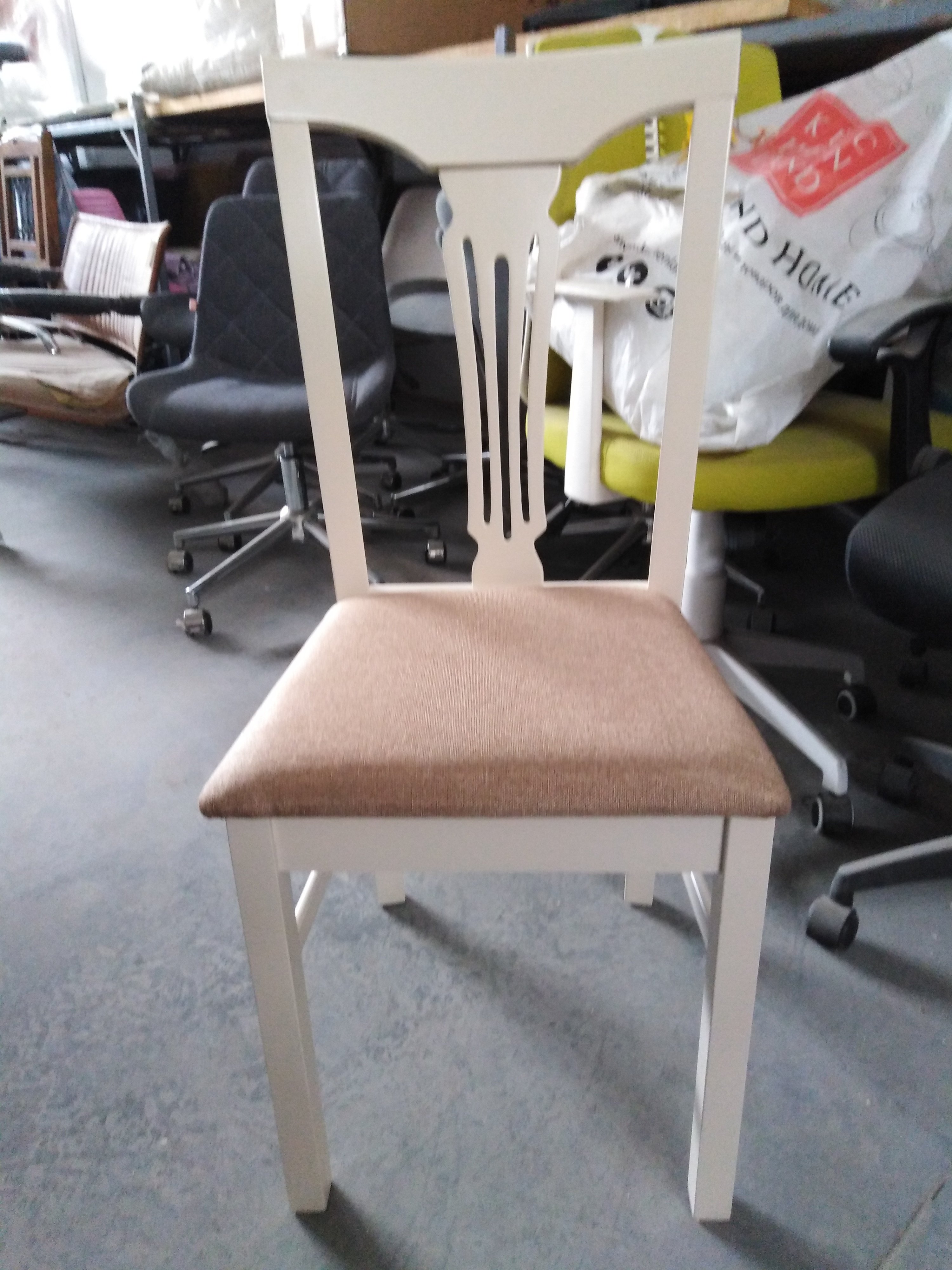 Описание товара без дефектов: Изысканные черты деревянного стула Гермес (Hermes) из Дельфийской коллекции позволят подчеркнуть совершенство вашего интерьера. Модель сочетает в себе функциональность и уникальный внешний вид, она гармонично впишется в любой интерьер. Удобная спинка стула с узором ручной работы добавляет модели эстетическую привлекательность. Прямые ножки устойчивы, надежны и основательны. Каркас стула изготовлен из прочной древесины - массива гевеи, что делает модель надежной и долговечной. Изделие имеет мягкое комфортное сиденье, обитое тканью, поддающейся легкой чистке и не требующей сложного ухода. Сиденье не меняет форму со временем, что позволяет сохранить его первоначальный внешний вид долгие годы. Каркас стула благородного цвета слоновой кости (Ivory white) в сочетании с тканевой обивкой песочного цвета поможет украсить любую кухню или столовую, создать атмосферу роскоши и уюта в вашем доме. Идеальное решение для ресторанов и кафе. Модель Гермес из Дельфийской коллекции произведет впечатление на вас и вашу семью своей солидностью, долговечностью и эксплуатационными качествами. Стул поставляется в разобранном виде, необходима несложная сборка. Инструкция прилагается.