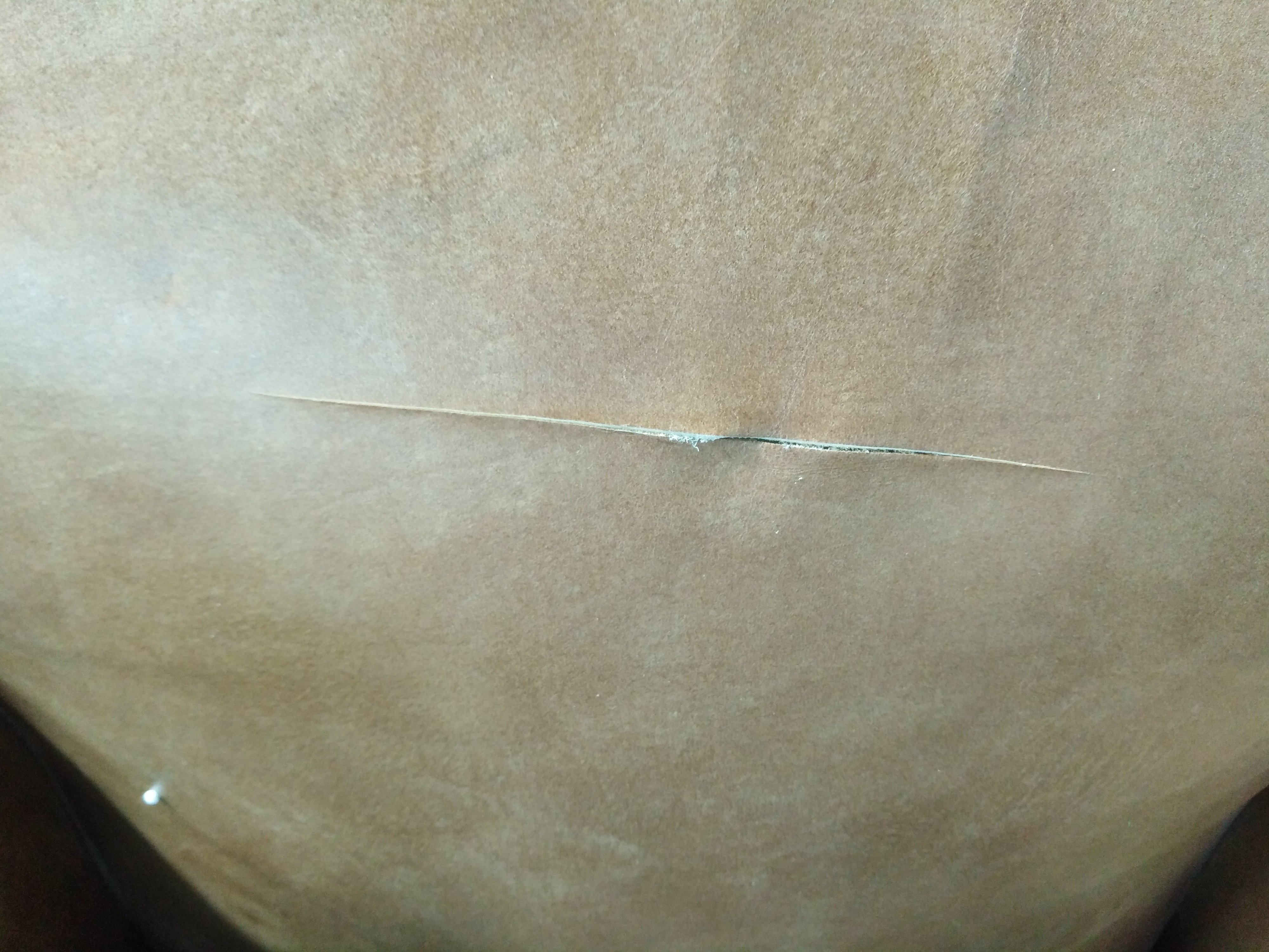 Описание дефекта: Порез на спинке, замятины.