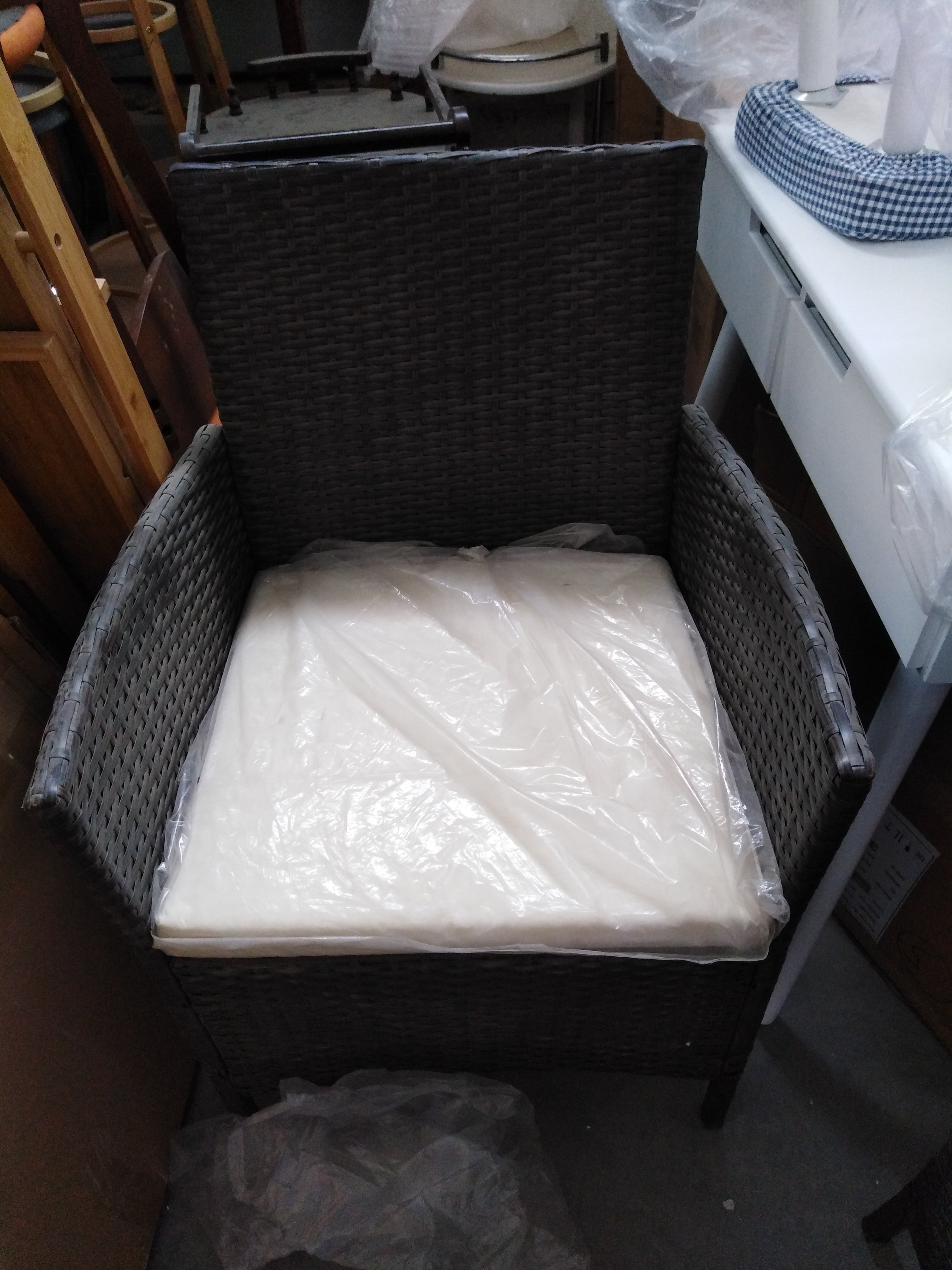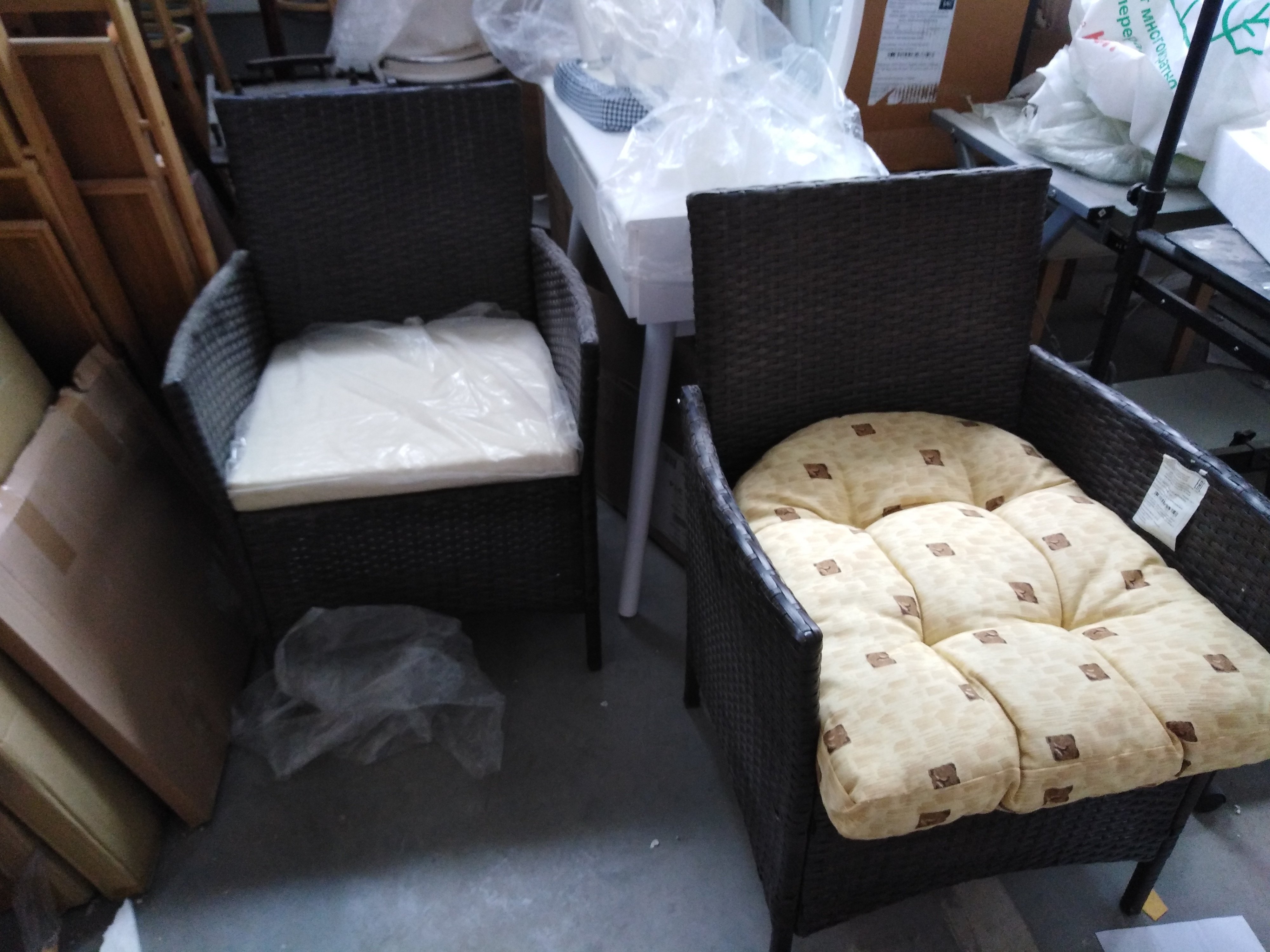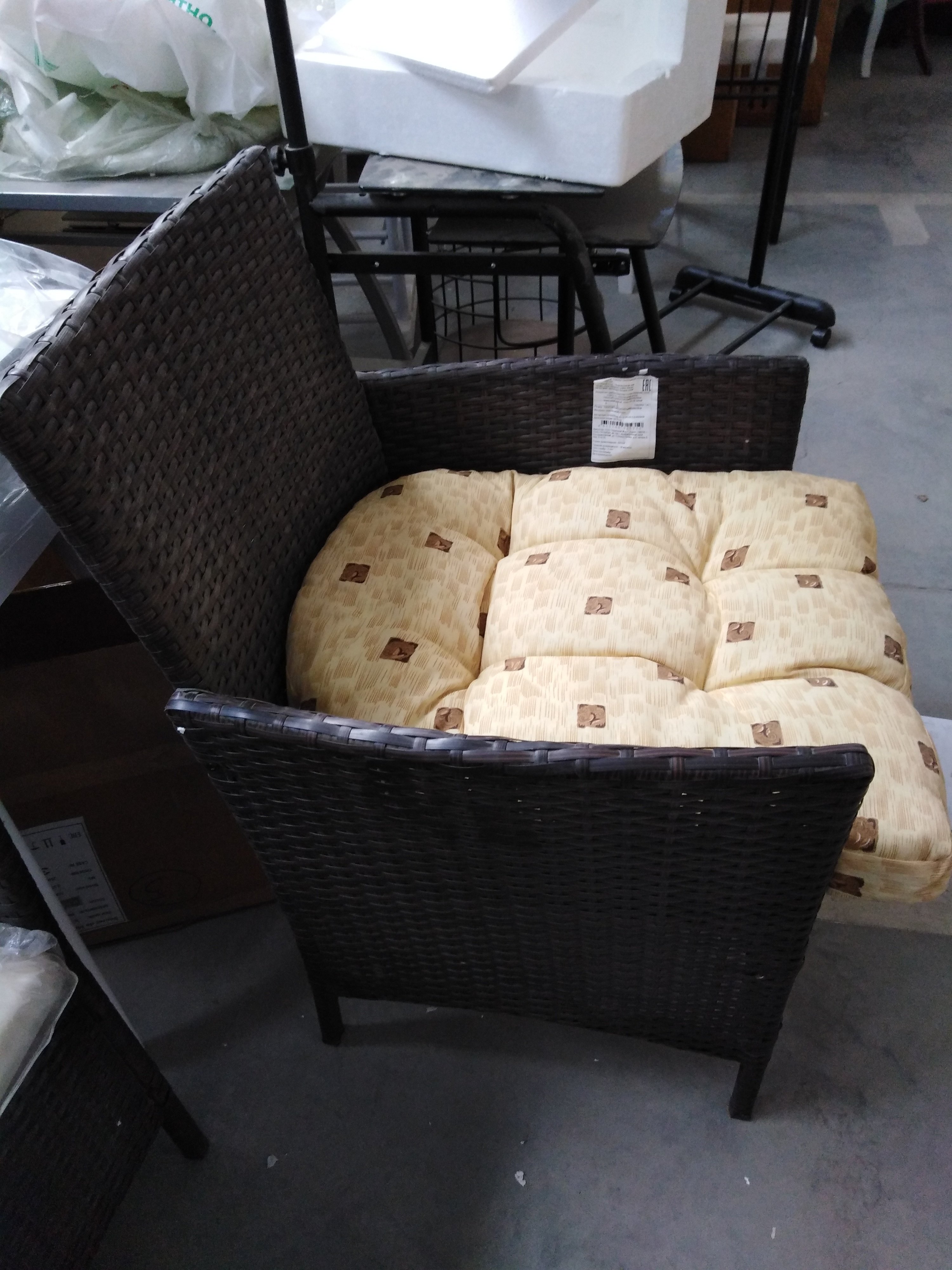 Описание дефекта: Из комплекта продаются только 2 кресла. В собранном виде. Имеются потёртости на ротанге