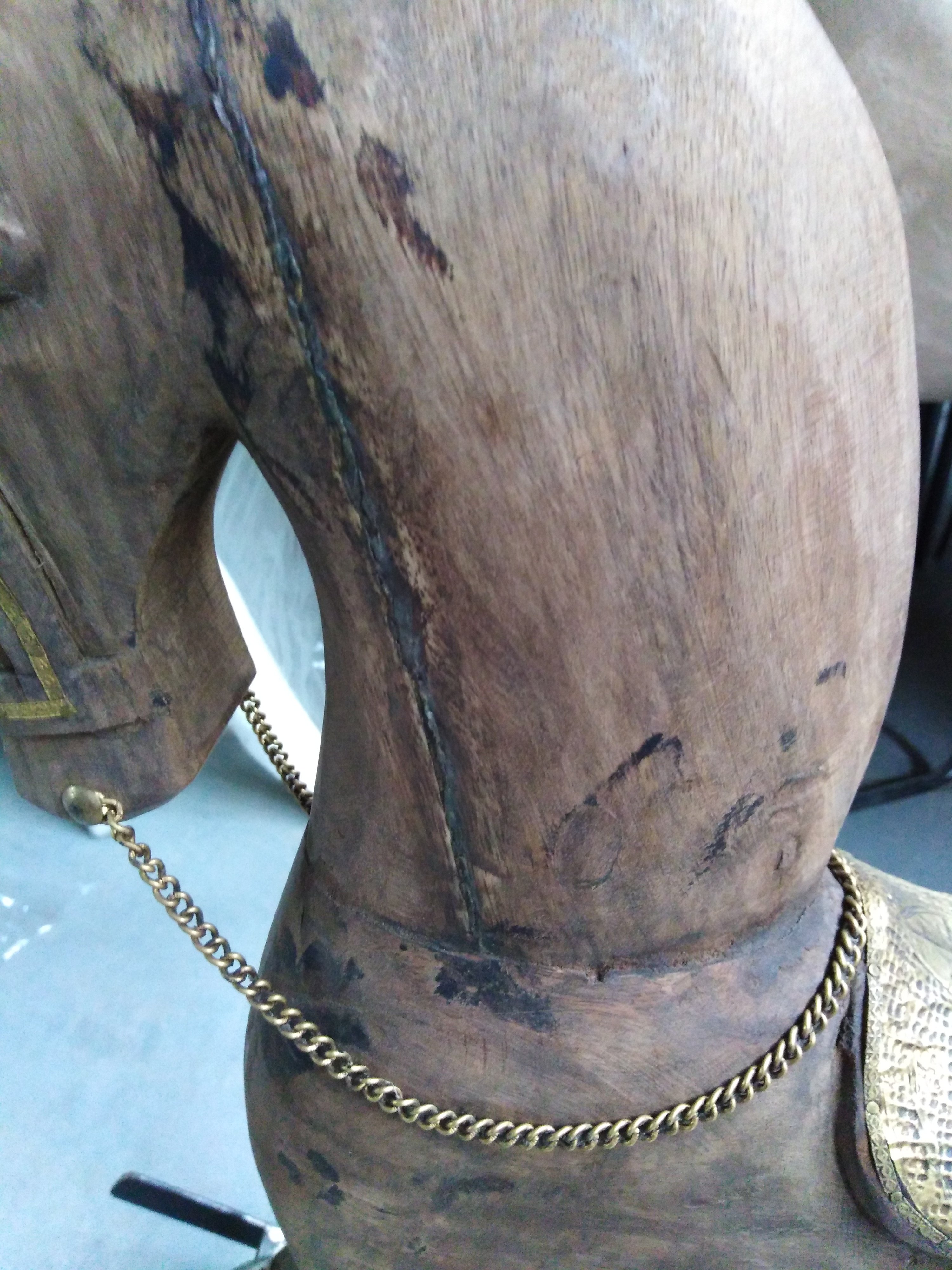 Описание дефекта: Сколы и трещины на деревянных деталях. Ржавчина на металлических полозьях