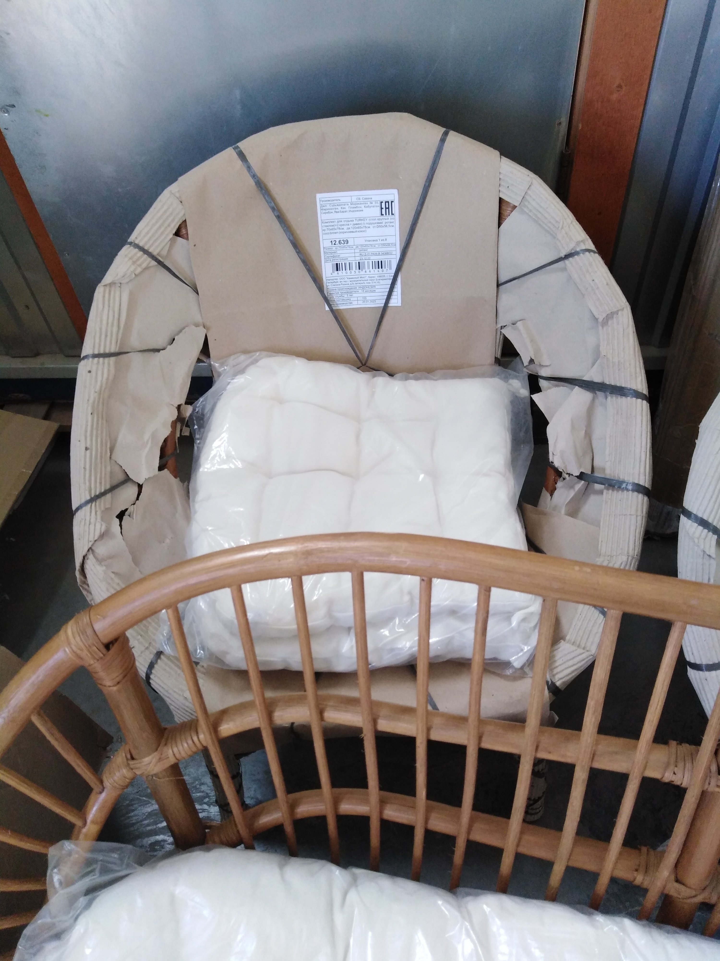Описание дефекта: без стекла к столику , нарушение двух прутьев на диване