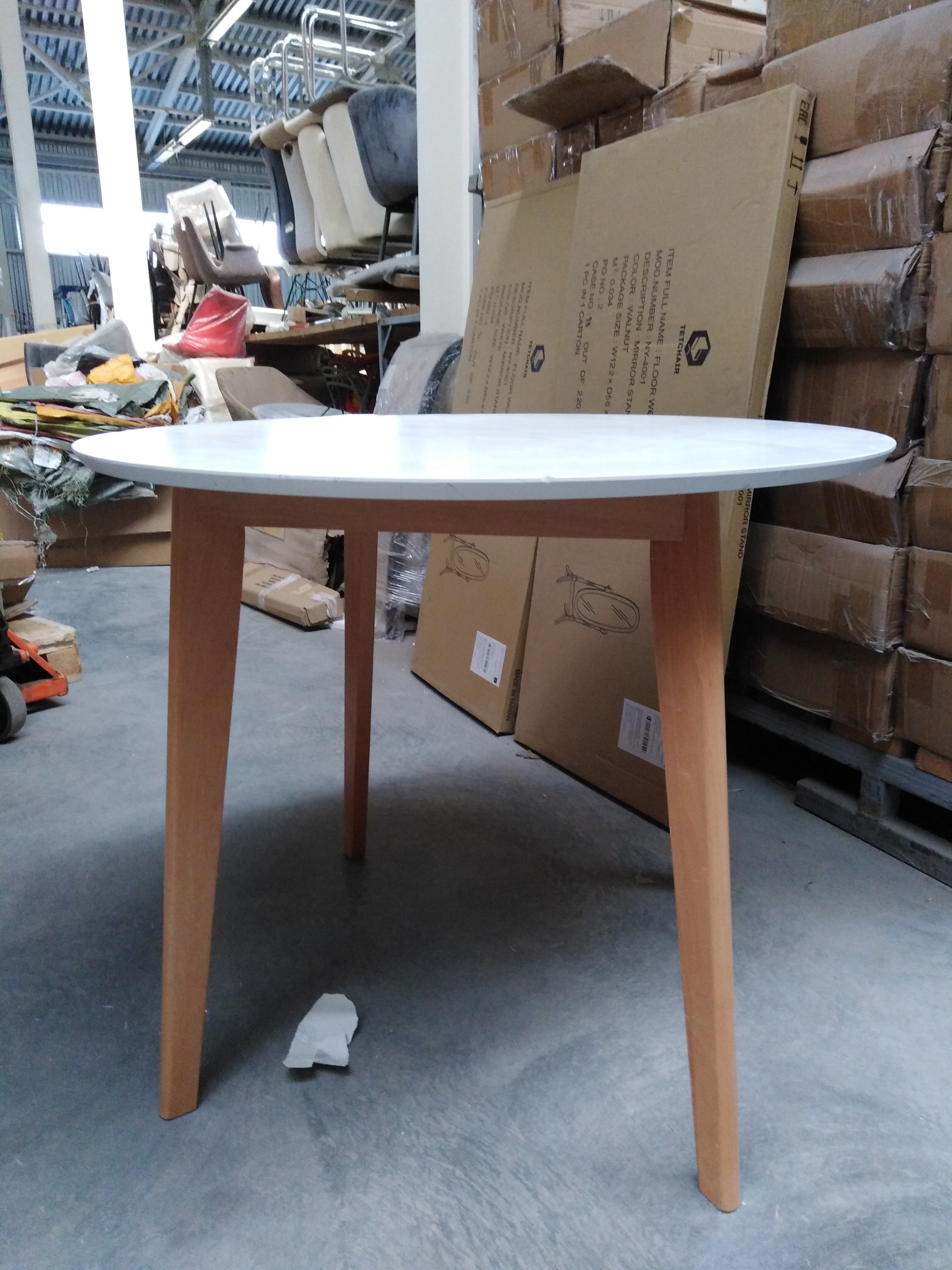 Описание товара без дефектов: Стильный обеденный стол BOSCO из Датской коллекции отлично дополнит интерьер загородного дома, городской квартиры, кухни, гостиной, кафе или ресторана. Компактный и аккуратный стол отлично подойдет даже для небольших помещений. Удачное сочетание столешницы, покрашенной в белый цвет, и визуально легких ножек цвета натурального дерева выглядит стильно, легко и привлекательно. Обеденный стол BOSCO хорошо впишется в любой современный интерьер. Круглая форма столешницы помогает создать свободную и легкую атмосферу в комнате, способствует спокойному и приятному общению. Изящные тонкие ножки изготовлены из натуральной экологически чистой древесины ─ массива бука. Столешница из МДФ со шпоном бука и глянцевым напылением не требует специального ухода, выдерживает воздействие жидкости и тепла. Модель поставляется в разобранном виде, необходима несложная сборка по инструкции.
