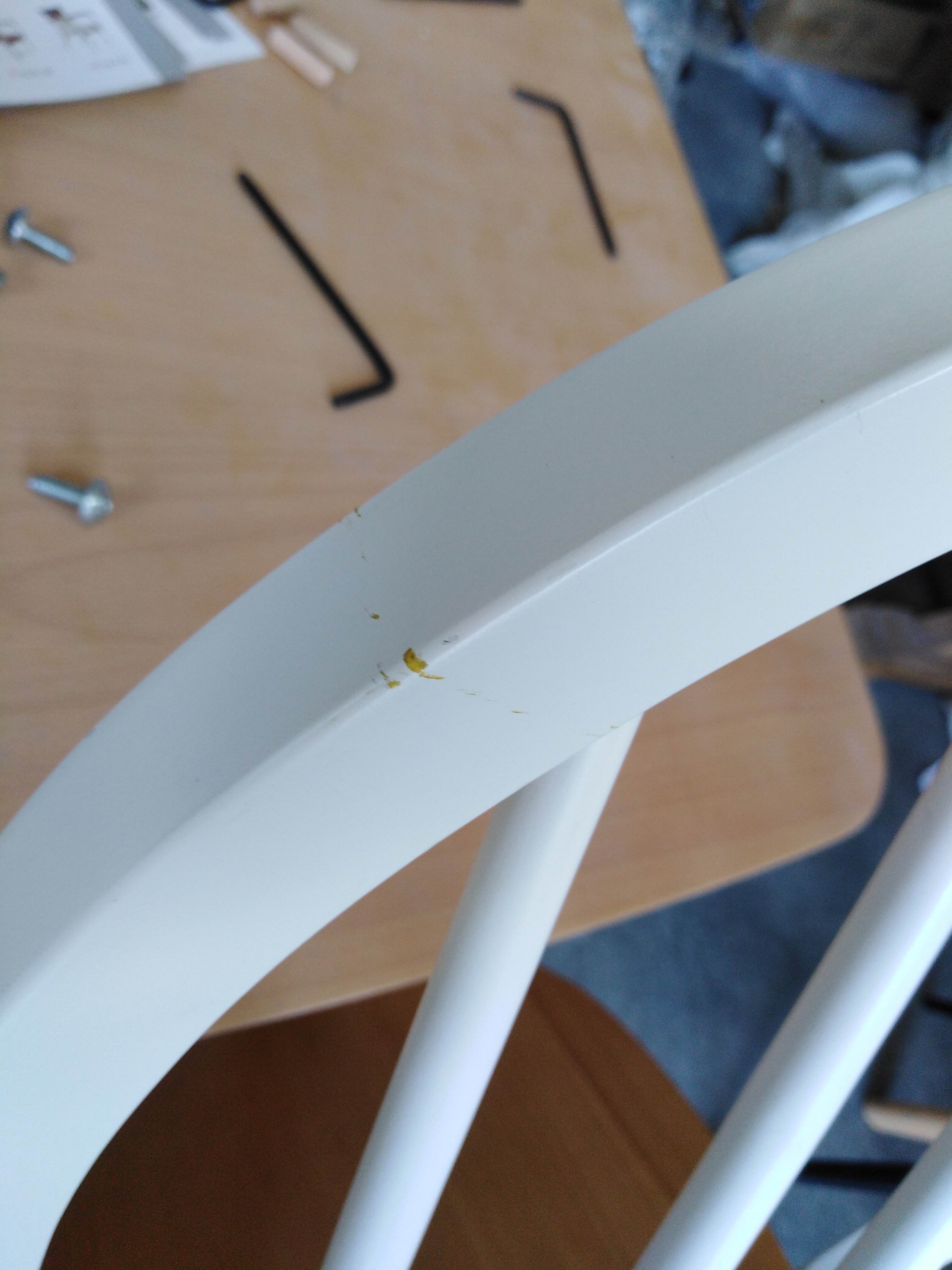 Описание дефекта: вмятина на вертикальной планки для спинке , нет фурнитуры