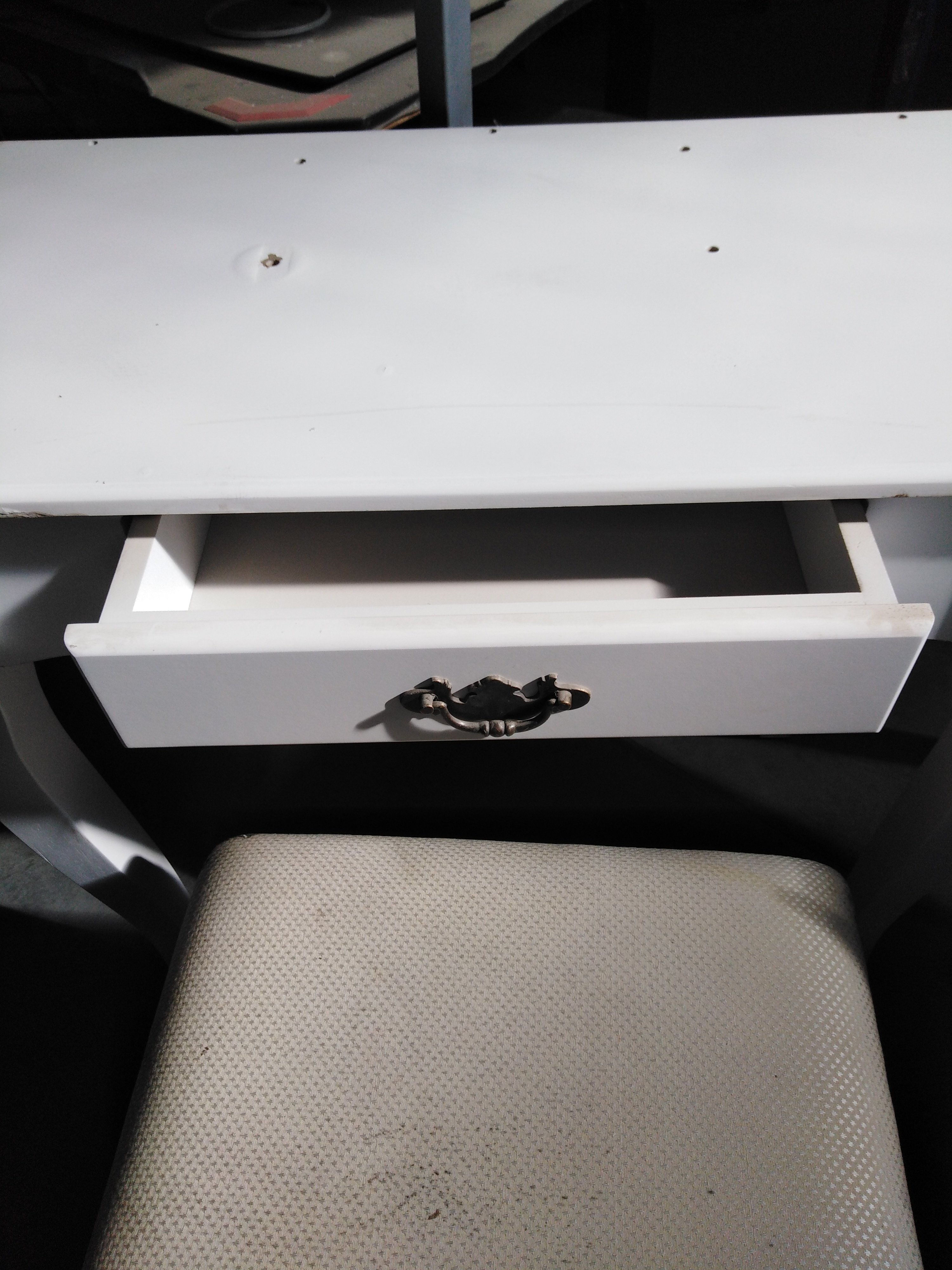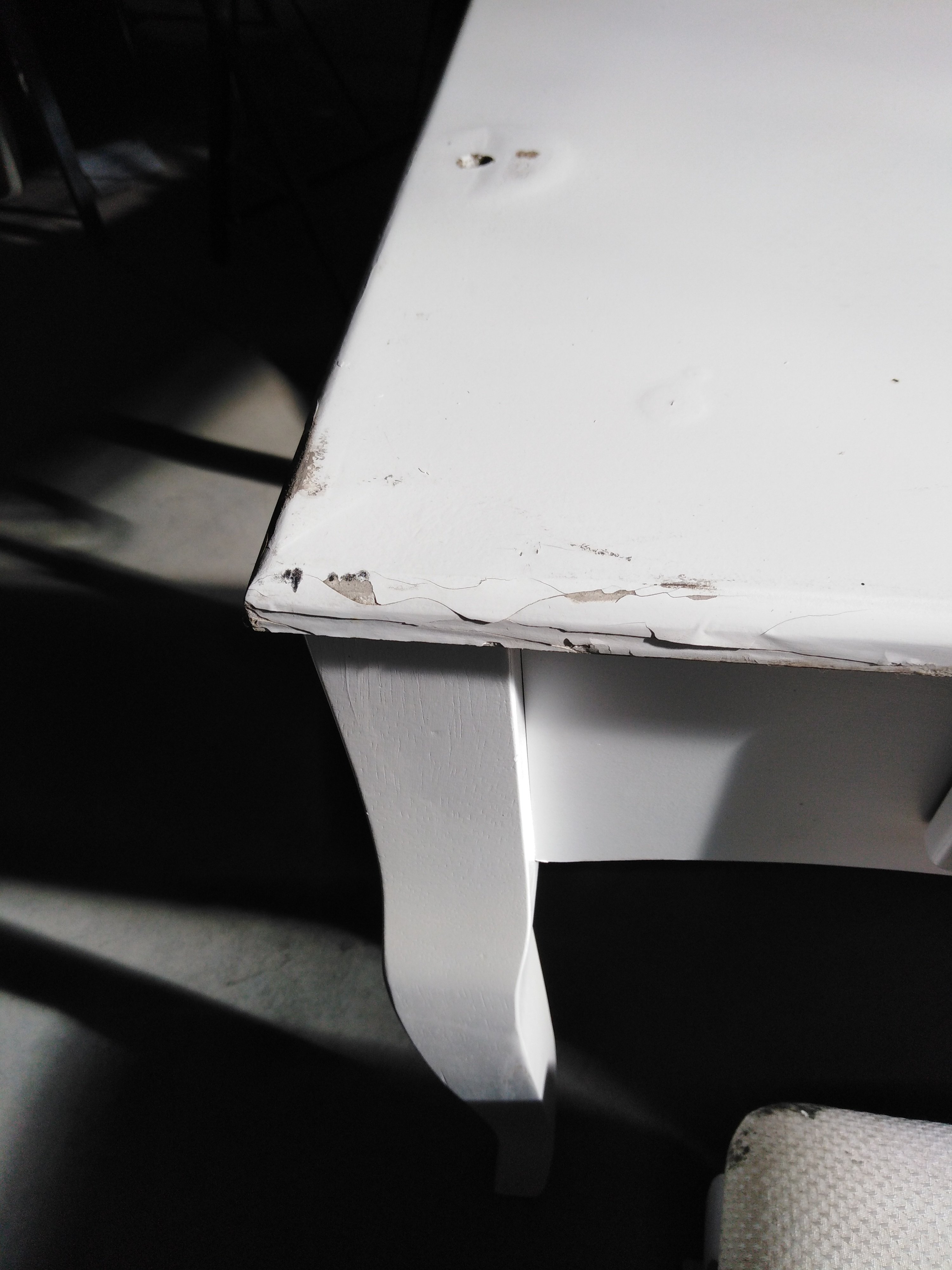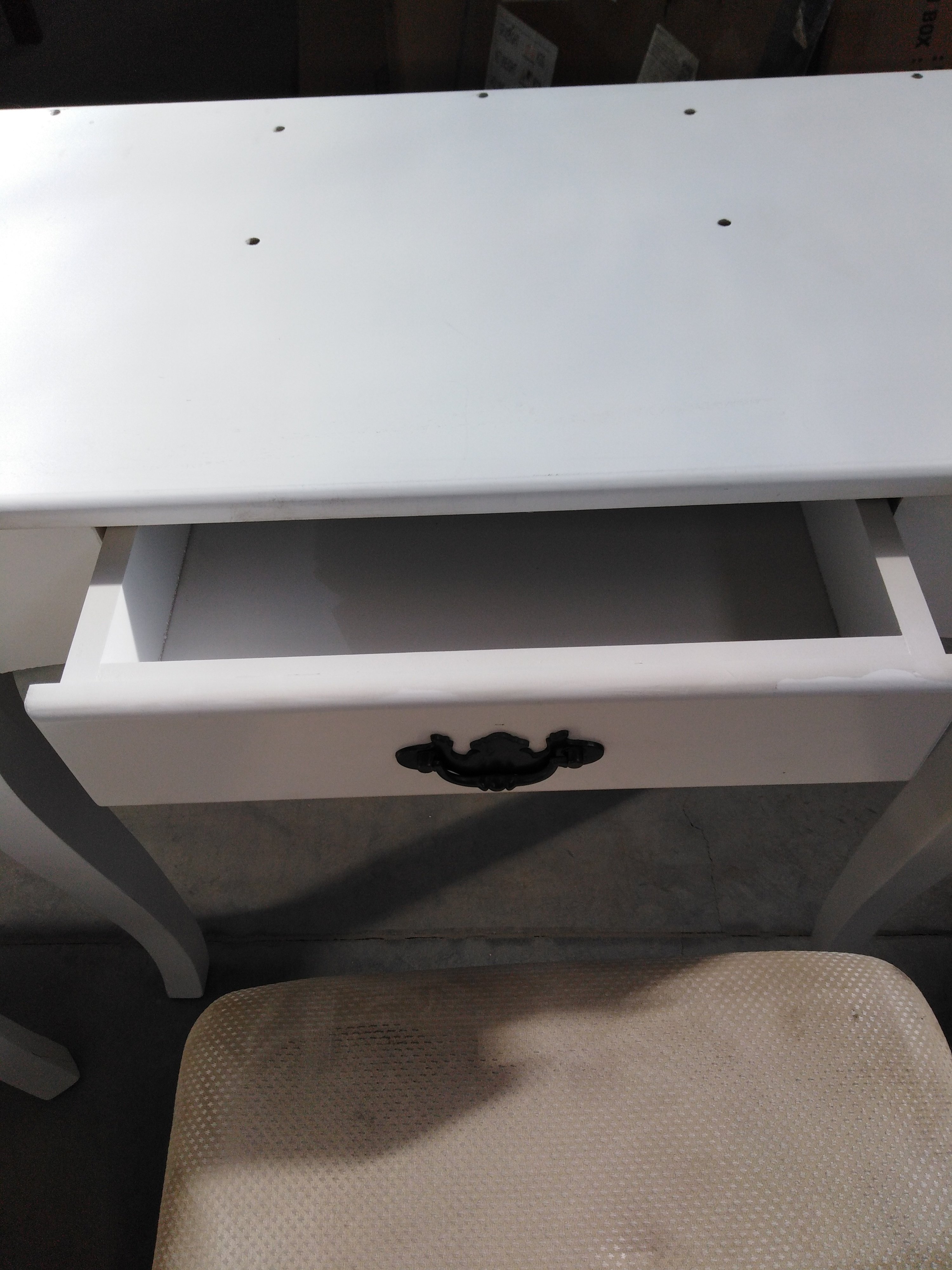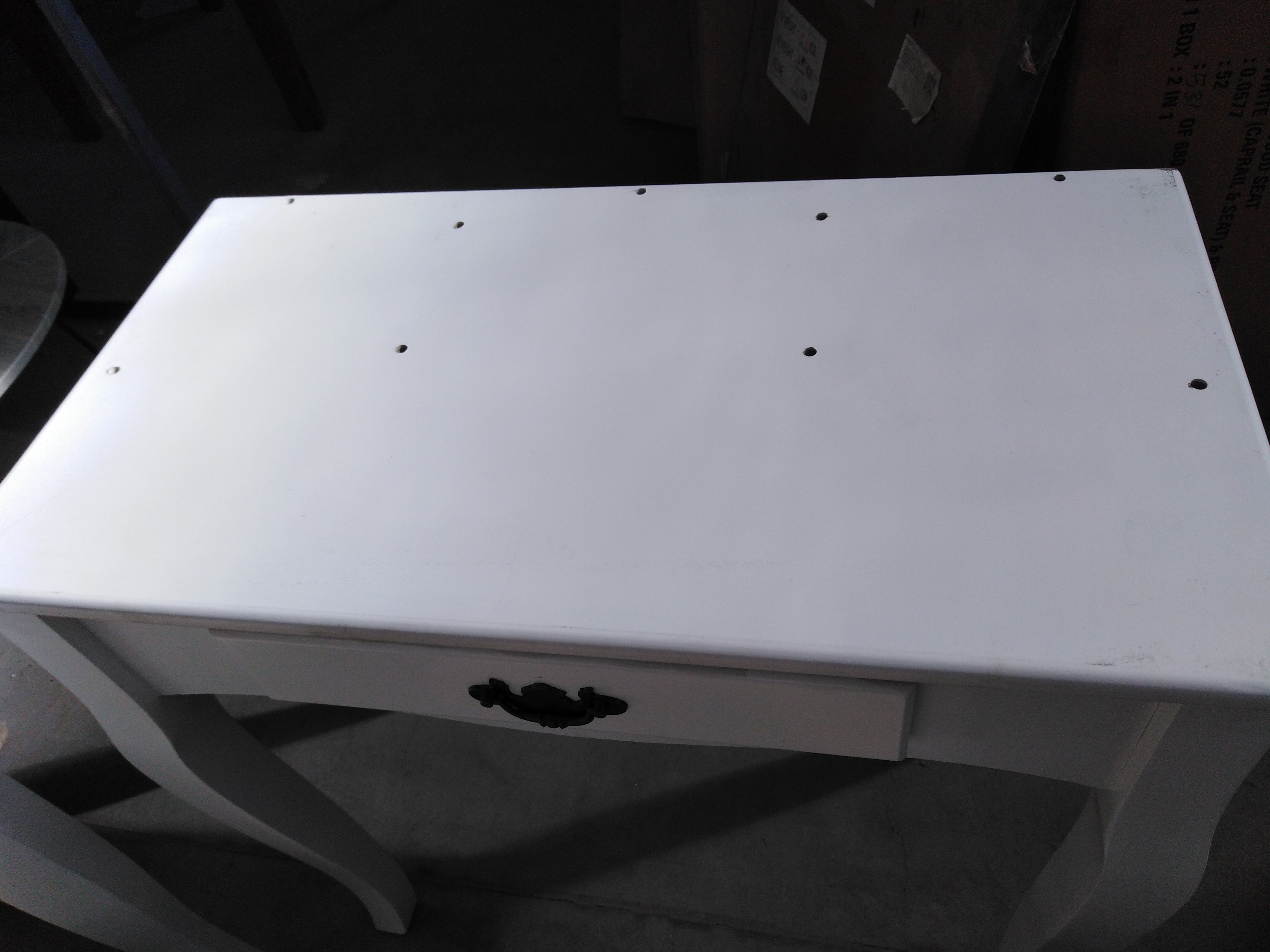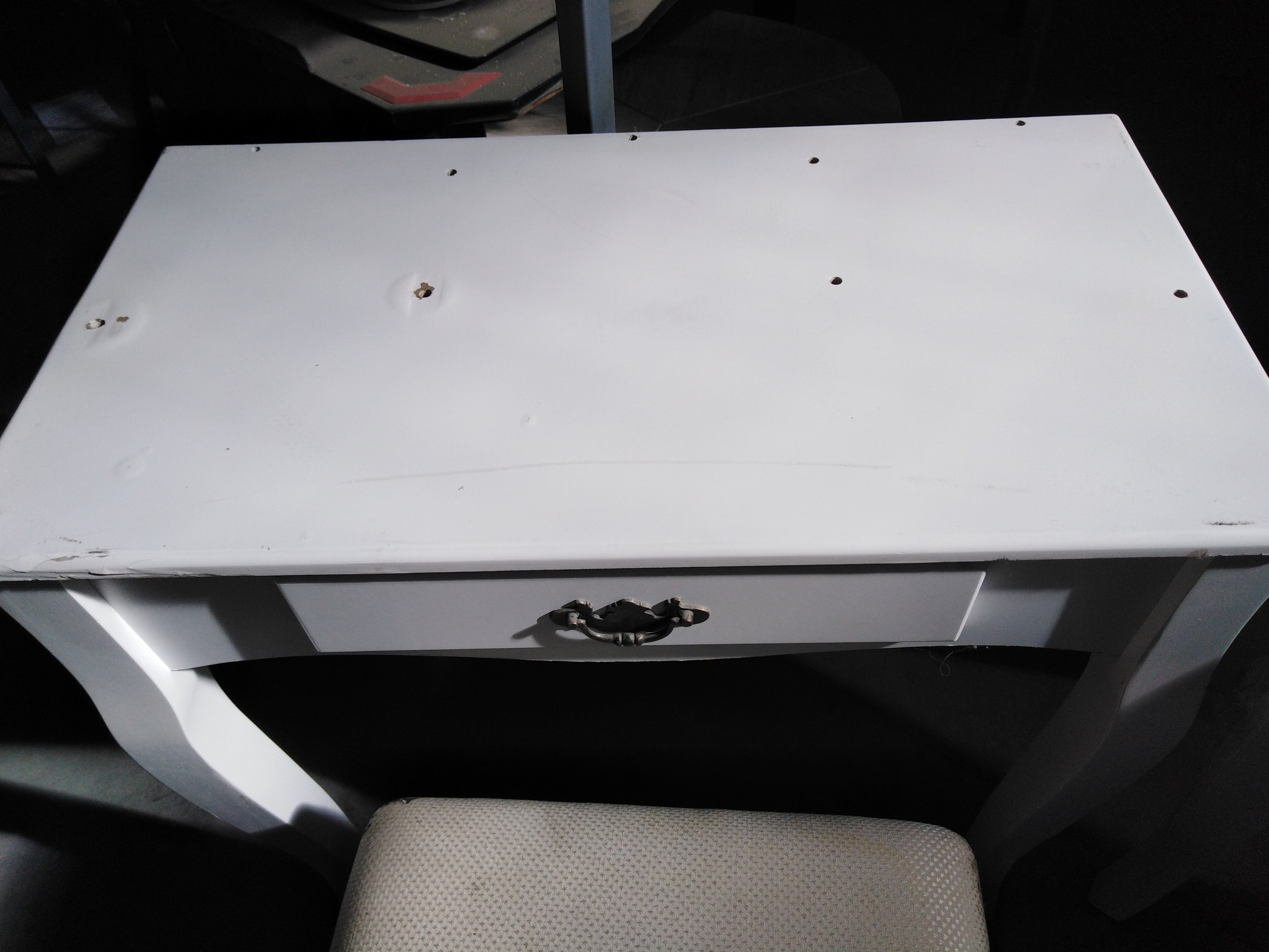 Описание дефекта: Столик продаётся без верхней надстройки, без зеркала. Сколы и трещины на столешнице. Нарушение ЛКП