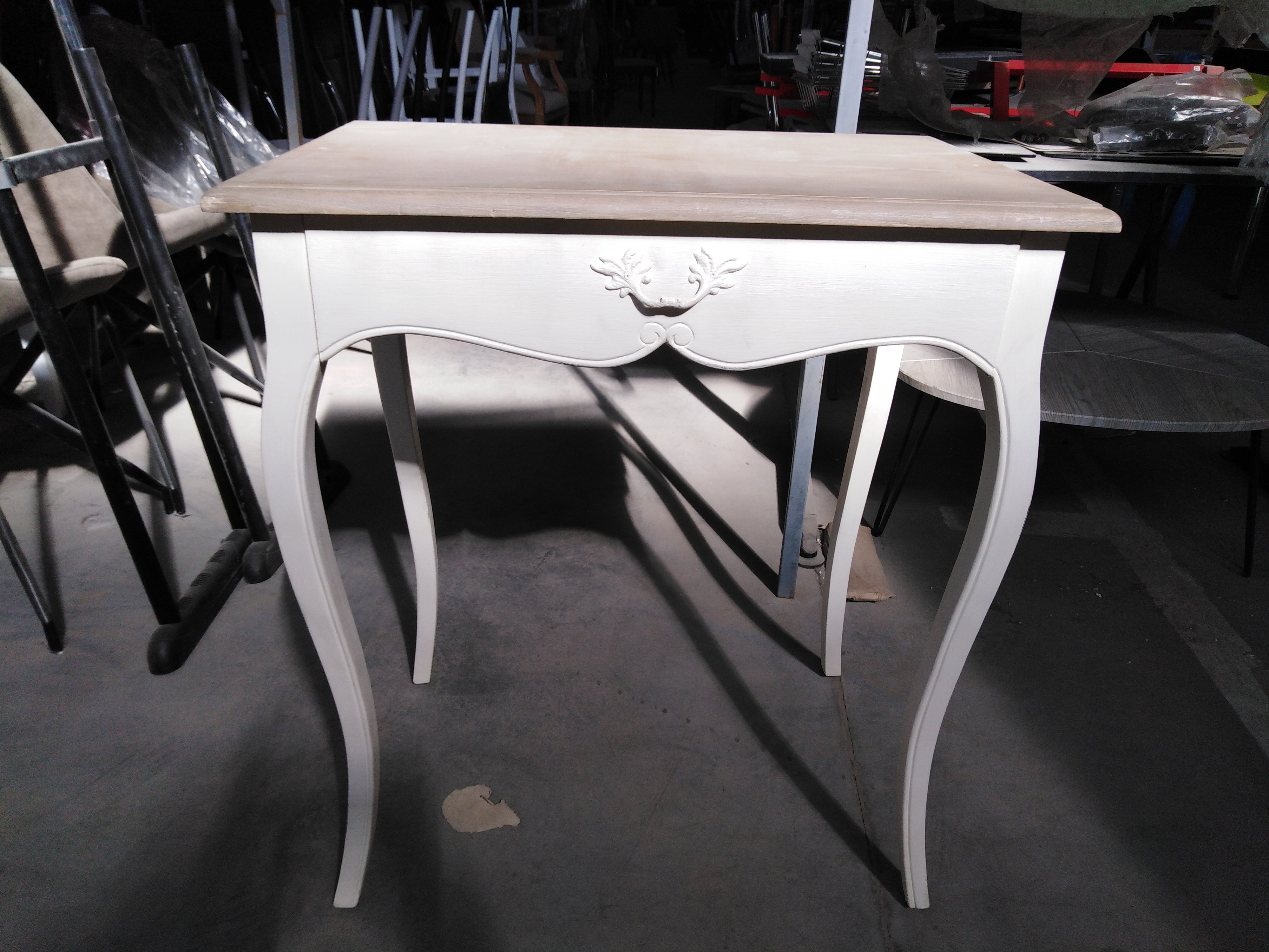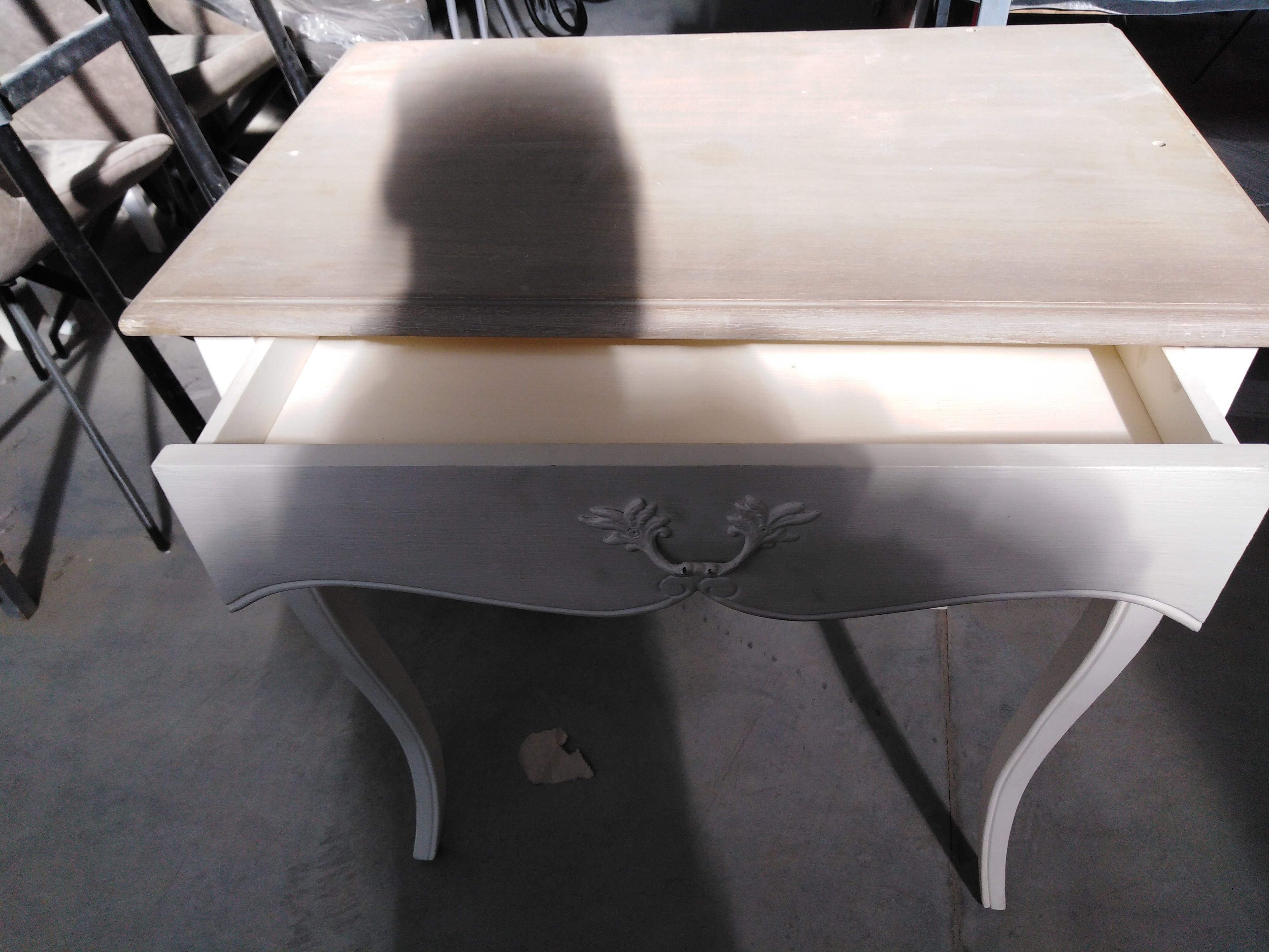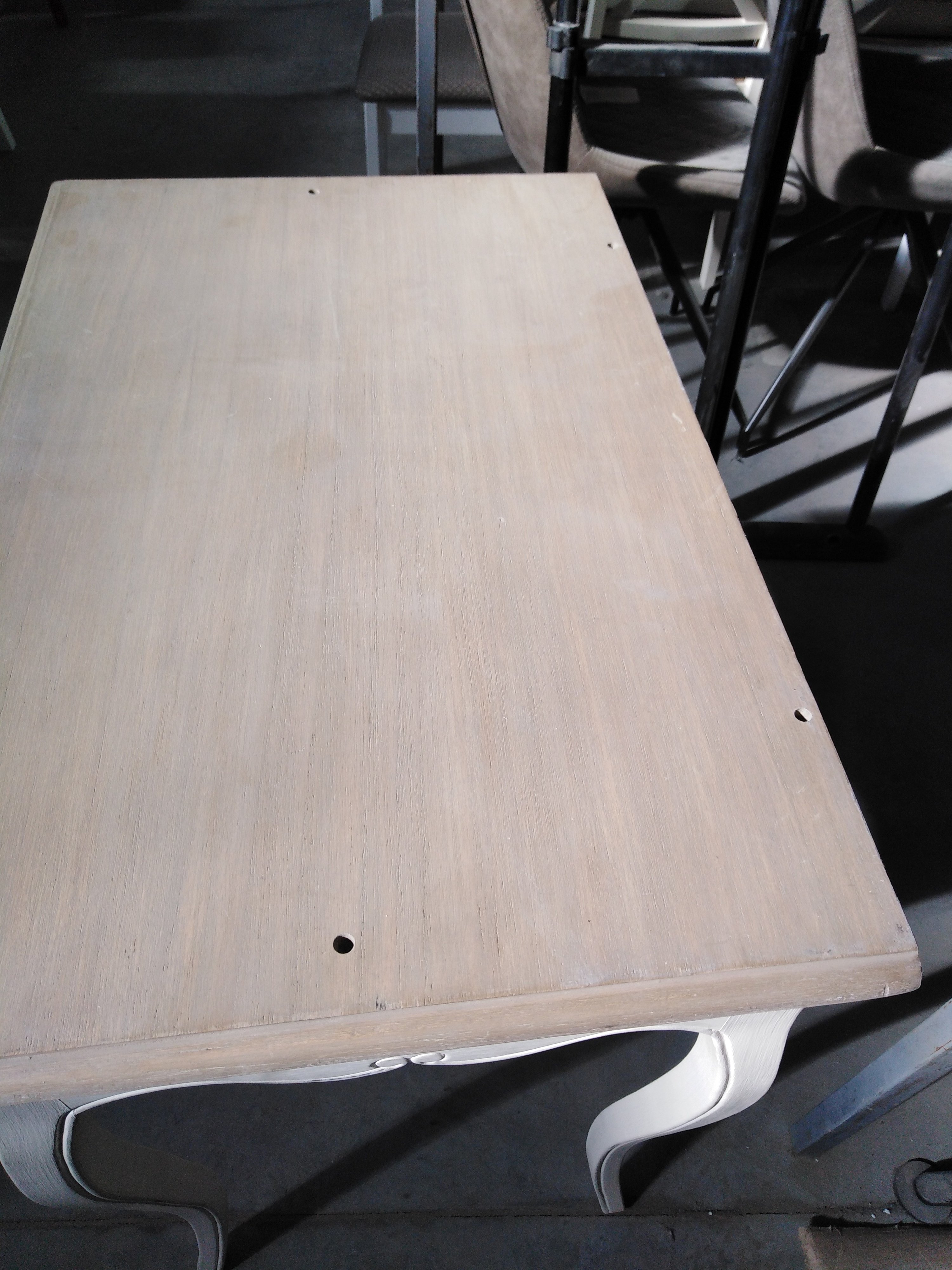Описание дефекта: Столик продаётся без верхней надстройки, без зеркала. Имеются потёртости, нарушение ЛКП на деревянных деталях