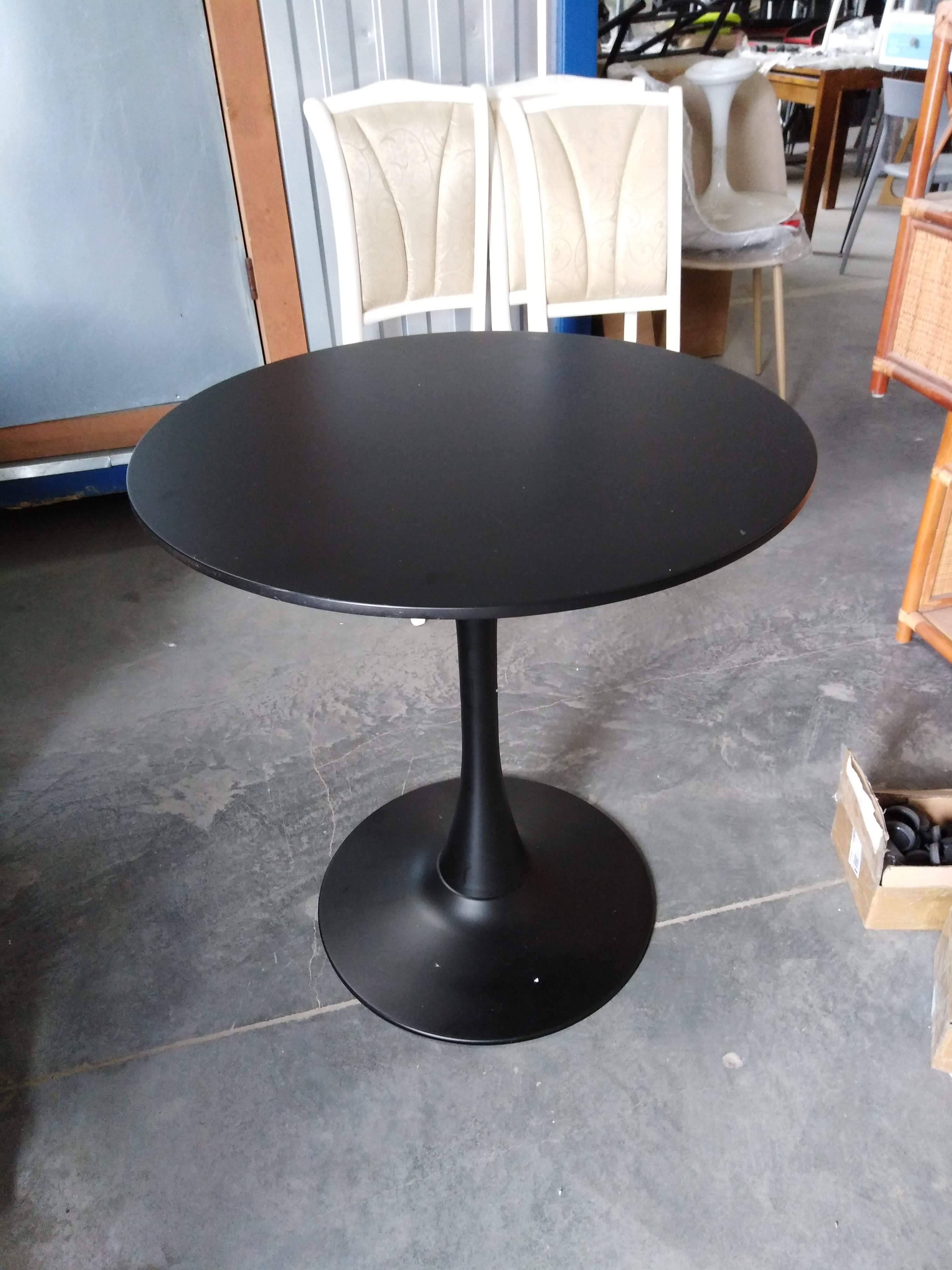 Описание товара без дефектов: Великолепный стол TULIP из коллекции Modern выполнен в стиле известной работы американского архитектора Ээро Сааринена - стула Tulip, который он спроектировал в середине двадцатого века. Стол подкупает своей универсальностью и визуальной легкостью, благодаря которым варианты его расположения в интерьере безграничны. Он хорошо впишется в обстановку гостиной, кухни или столовой, будет смотреться стильно и гармонично в кафе или ресторане. Круглая форма стола располагает к комфортному и непринужденному общению. Металлическое основание и столешница из мдф черного цвета – отличное решение для современного стильного пространства. Благодаря удобным размерам и простоте конструкции стол можно легко переместить при необходимости. МДФ и металл – прочные и долговечные материалы, не требующие специального ухода, способные выдерживать большую нагрузку. Стол хорошо сочетается со стульями TULIP из коллекции Modern. Стол отлично подойдёт для гостиной, кухни, дачи, ресторана или кафе. Стол очень прост в сборке, инструкция по сборке прилагается.