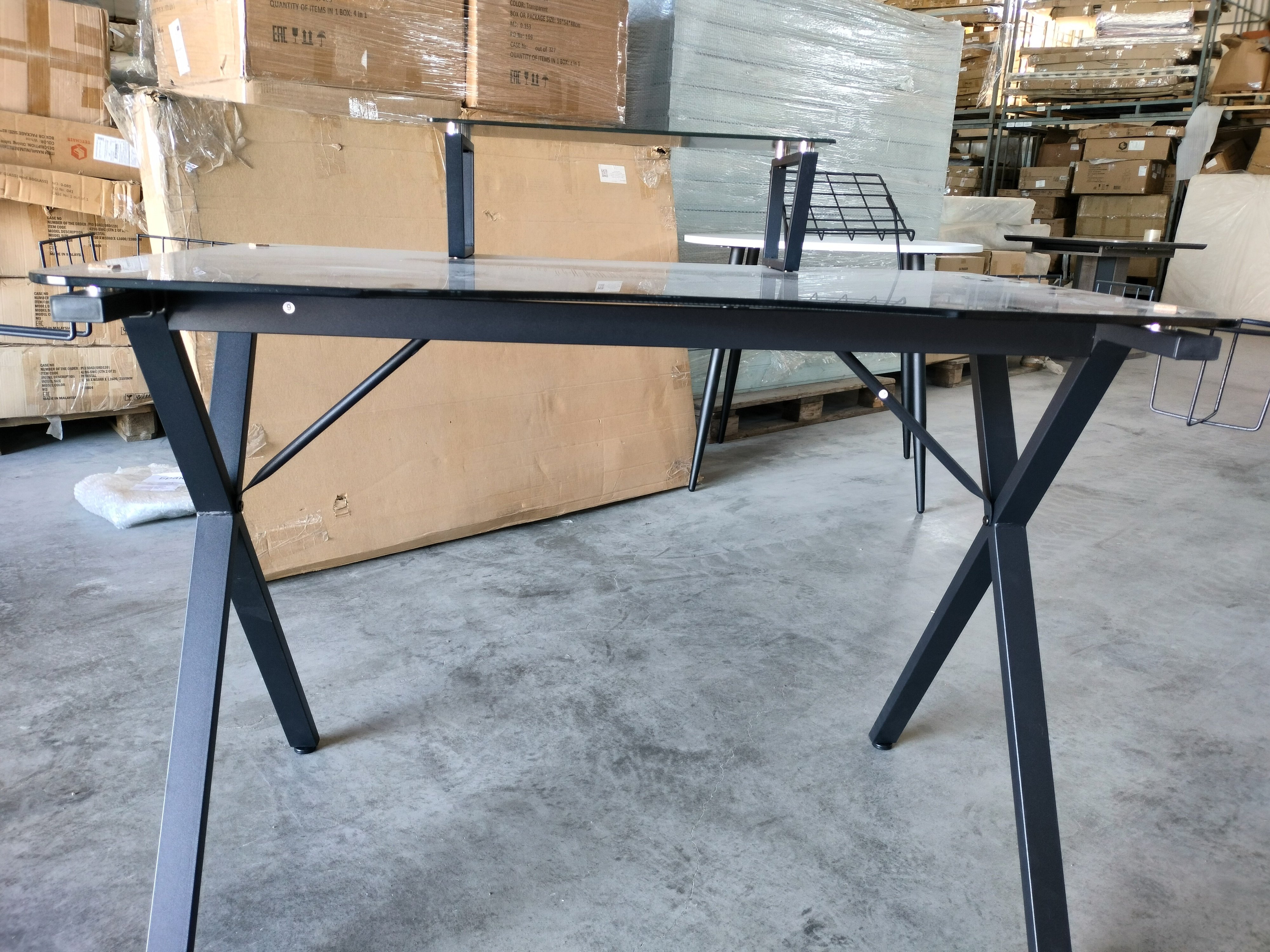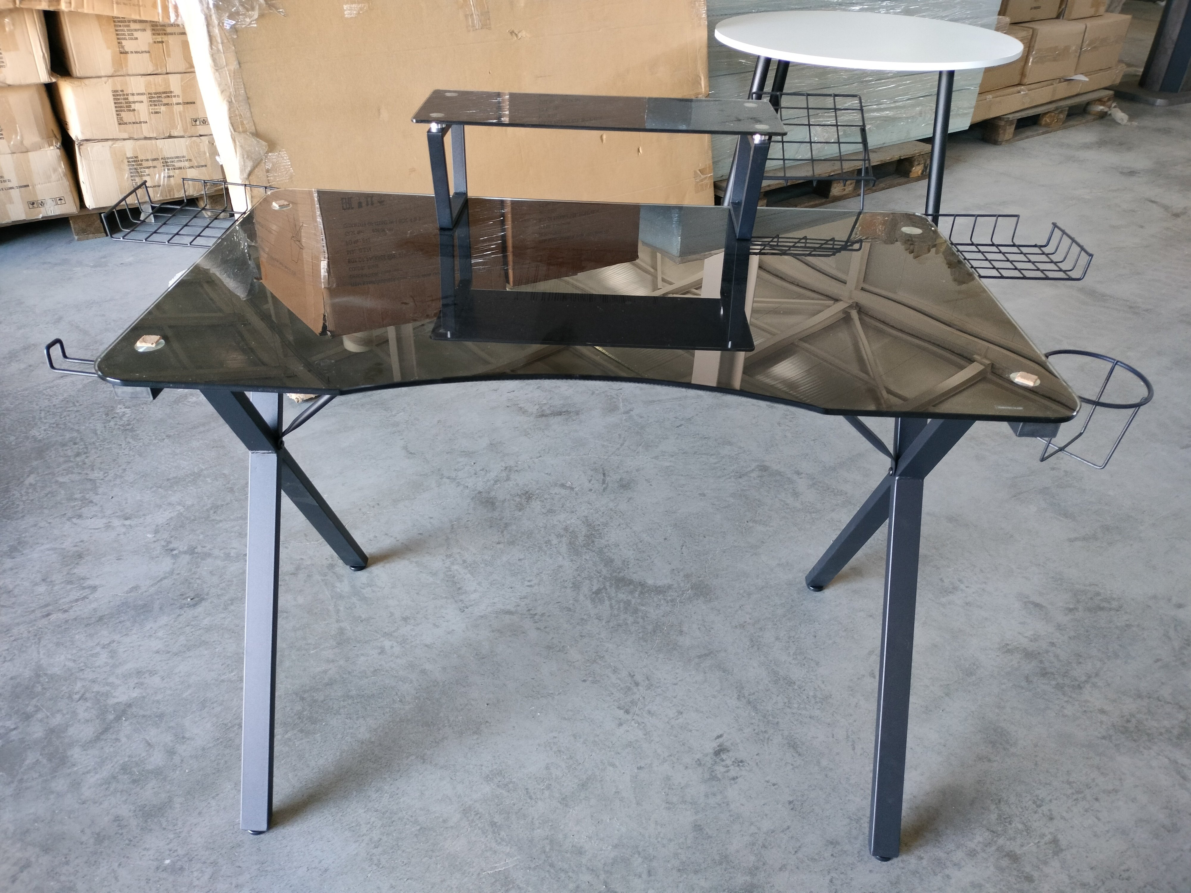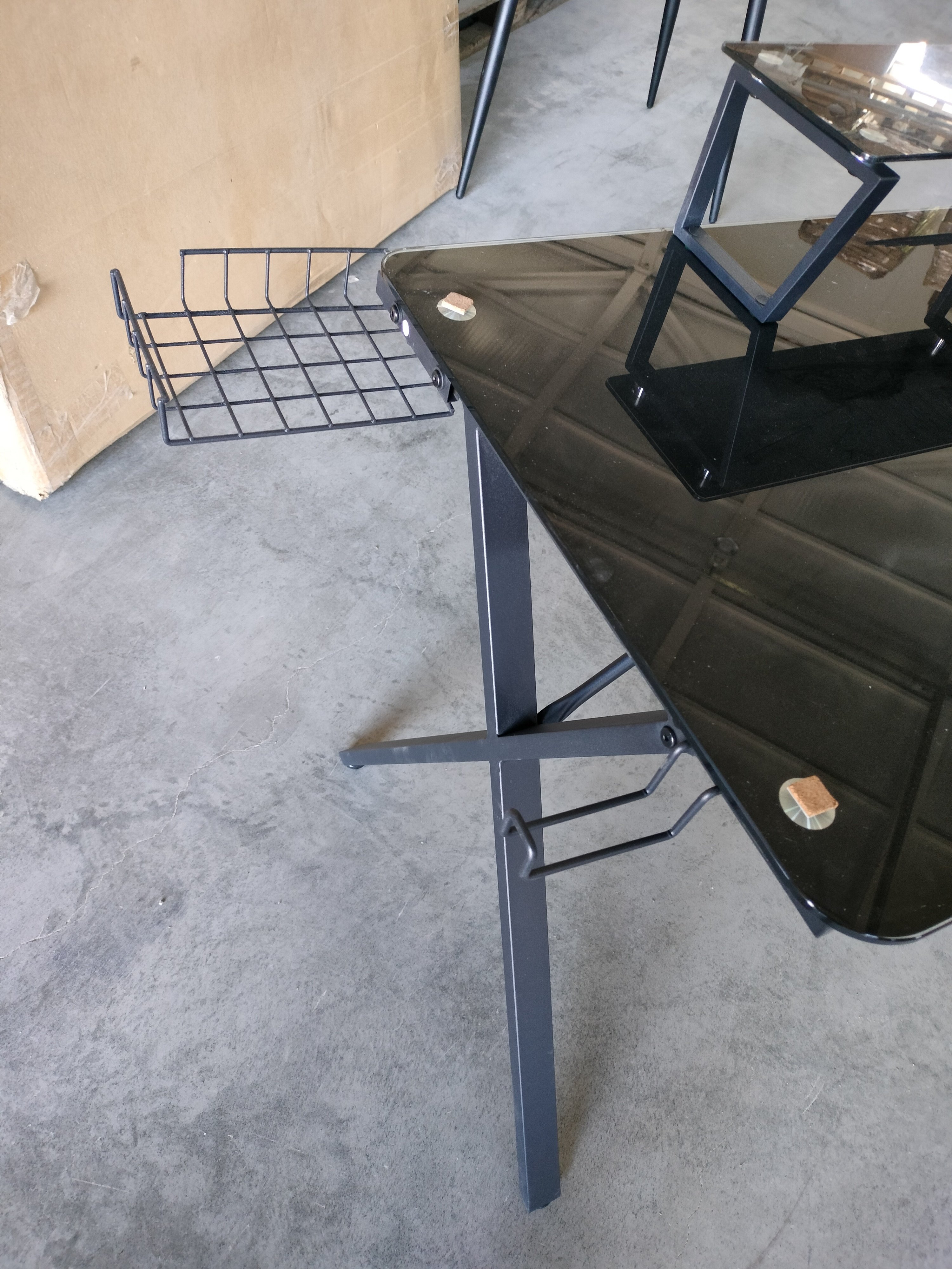 Описание товара без дефектов: Оригинальный дизайн компьютерного стола GD-06 добавит неповторимый и уникальный акцент в интерьер вашего рабочего кабинета. Модель отлично впишется в дизайн загородного дома, городской квартиры или офиса. Прямоугольная столешница изготовлена из окрашенного в черный цвет закаленного стекла толщиной 8 мм. Она надежна, устойчива к механическим воздействиям, влажности и изменениям температур, проста в уходе и долговечна. Прочный каркас выполнен из металла с порошковым покрытием, которое позволяет защитить поверхность от влаги, продлевает срок службы модели. Основательные ножки с регулировкой отлично компенсируют неровности пола, что придает модели устойчивость. Компьютерный стол имеет дополнительные металлические аксессуары, которые помогут создать комфортные условия работы и увеличить производительность труда. Модель можно использовать как геймерский стол. Оригинальная стол черного цвета (black) GD-06 удивит даже самых требовательных владельцев своей привлекательностью, основательностью и износостойкостью. Стол очень прост в сборке, инструкция по сборке прилагается.