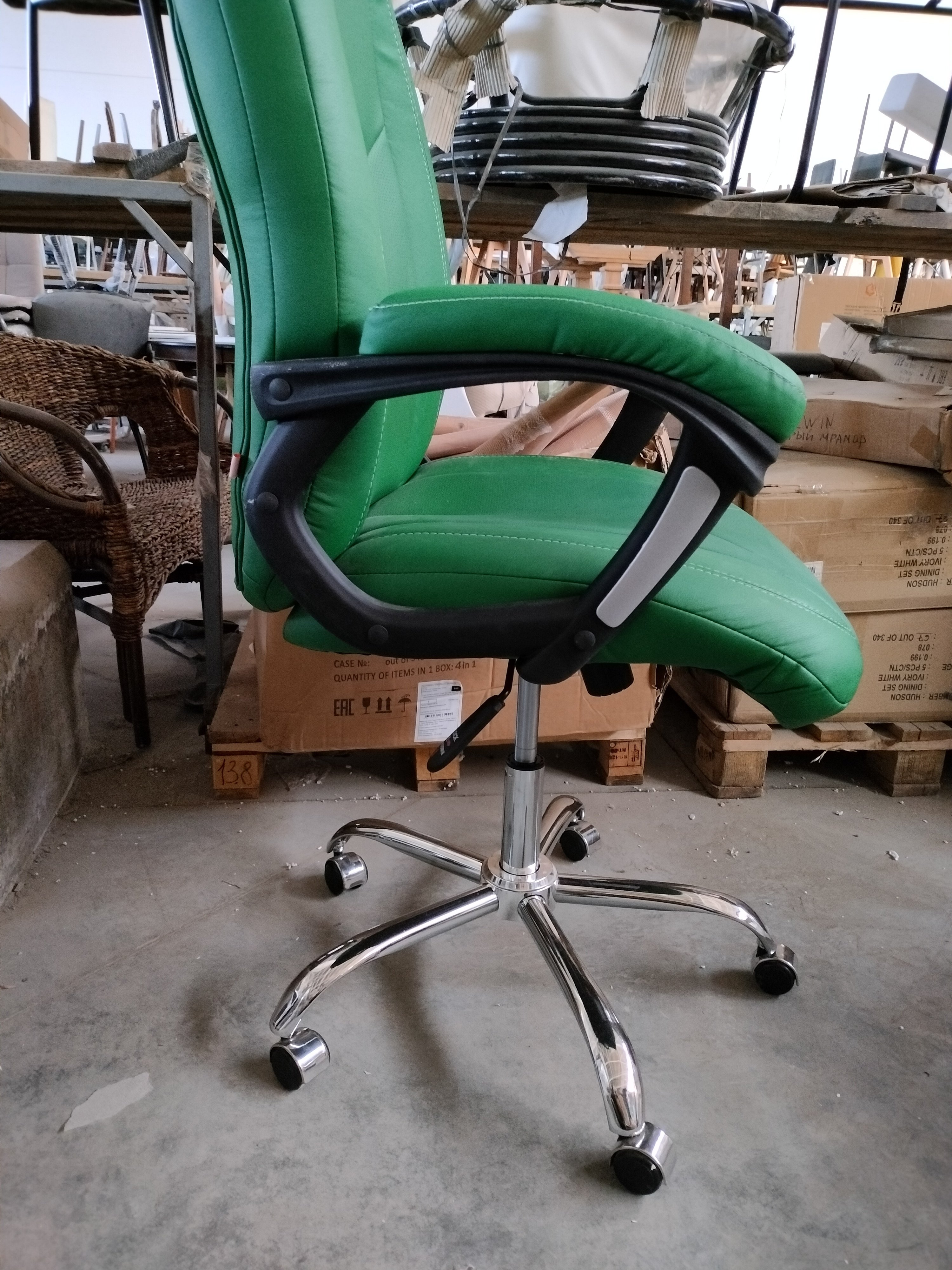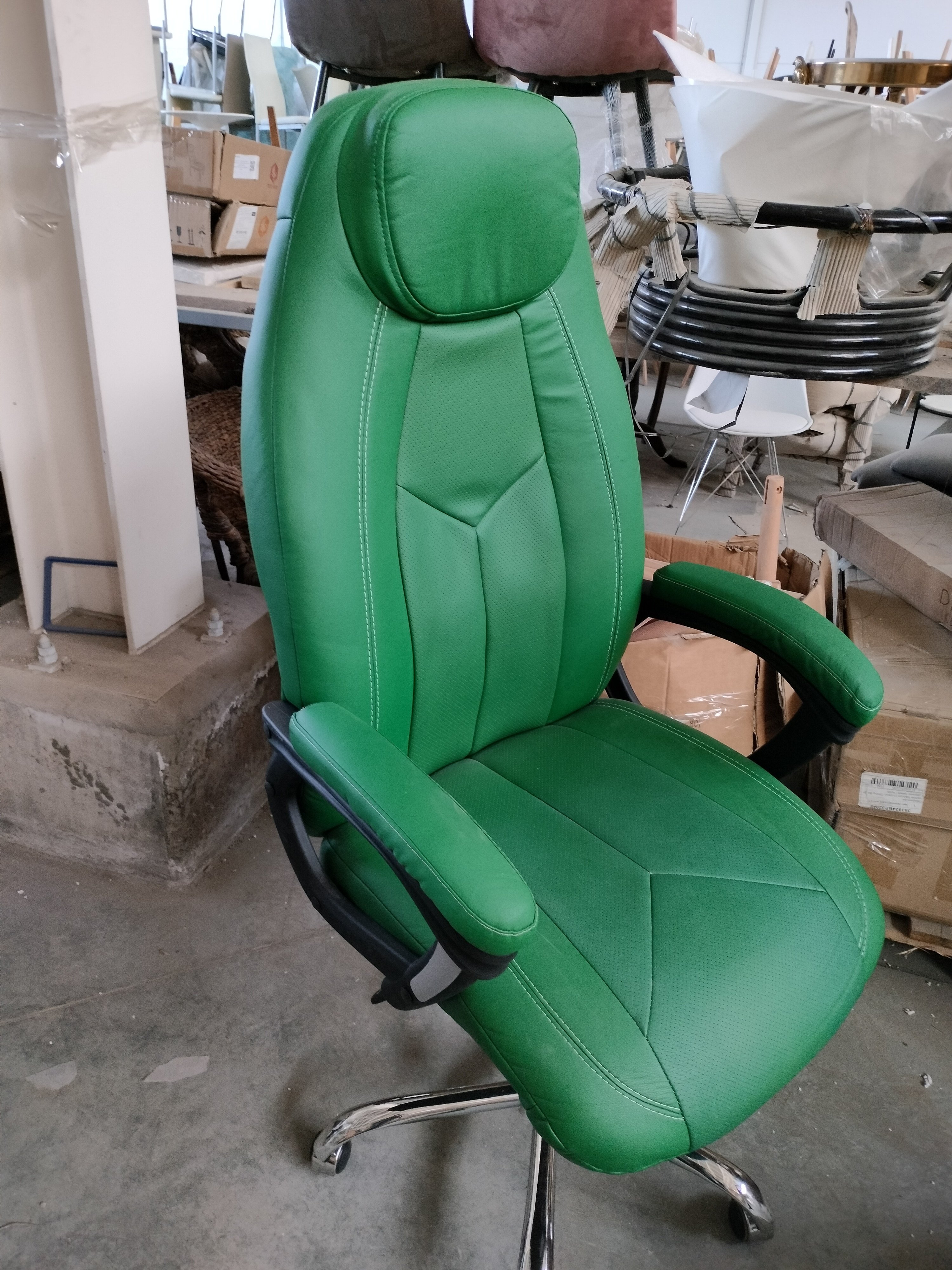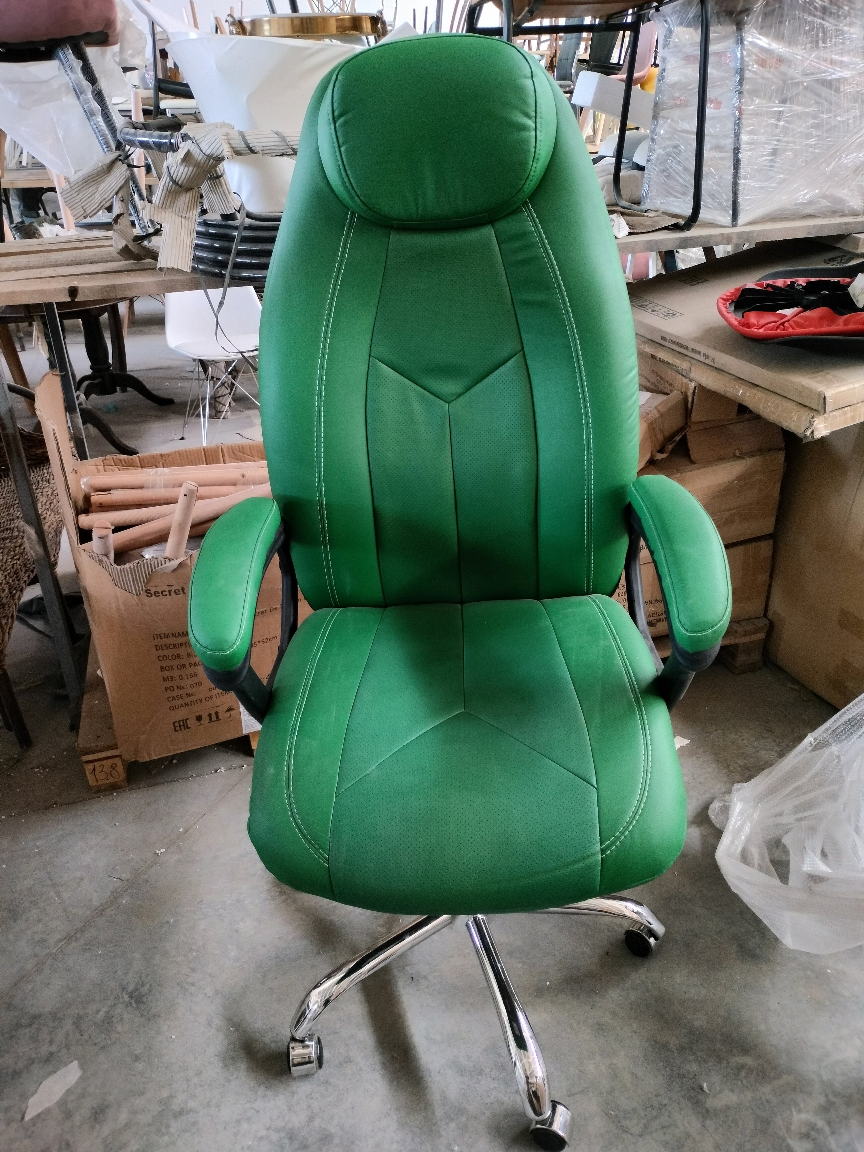 Описание товара без дефектов: Компьютерное кресло BOSS из коллекции OFFICE – уникальное сочетание привлекательности, комфорта и функциональности. Модель прекрасно впишется как в рабочий кабинет офиса, так и дома. Каркас модели изготовлен из фанеры толщиной до 15 мм. Такой материал обладает отличными эксплуатационными качествами, прочен и гипоаллергенен. Сиденье и спинка кресла с мягким наполнителем из пенополиуретана (до 35 кг/м2) стандартной плотности не деформируются со временем, не накапливают пыль, хорошо пропускают воздух и отводят влагу, имеют долгий срок службы. Офисное кресло регулируется по высоте и наклону с фиксацией в одном положении. Металлическая хромированная крестовина выглядит стильно и привлекательно, обладает основательностью и надежностью. Полиуретановые ролики с прорезиненными вставками бесшумны, не повреждают напольное покрытие. Ролики и крестовина в креслах бренда TETCHAIR соответствуют стандарту BIFMA. Во всех креслах бренда TETCHAIR используются газлифты 3 класса, он способен выдерживать вес до 120 кг. Фиксированные пластиковые подлокотники с мягкими накладками, вместительное сиденье, анатомическая спинка и удобный подголовник помогут принять комфортную позу для продолжительной работы, снимут напряжение с поясницы и шеи. Компьютерное кресло BOSS изготавливается из приятного на ощупь флока и высокопрочной износостойкой экокожи в коричневом, бежевом, черном, белом, сером и зеленом цветах. Экокожа , используемая при изготовлении кресла, выдерживает до 50 000 циклов на истирание по Мартиндейлу, мягкая ткань рогожка выдерживает до 40 000 циклов. Ткани с плотностью более 35 000 циклов являются самыми долговечными. Элегантная модель презентабельна, долговечна и функциональна, не нуждается в сложном уходе, будет радовать вас своим исходным видом на протяжении длительного времени. Офисное кресло поставляется в разобранном виде. Необходима простая сборка по прилагаемой инструкции. Максимальная нагрузка модели 120 кг.