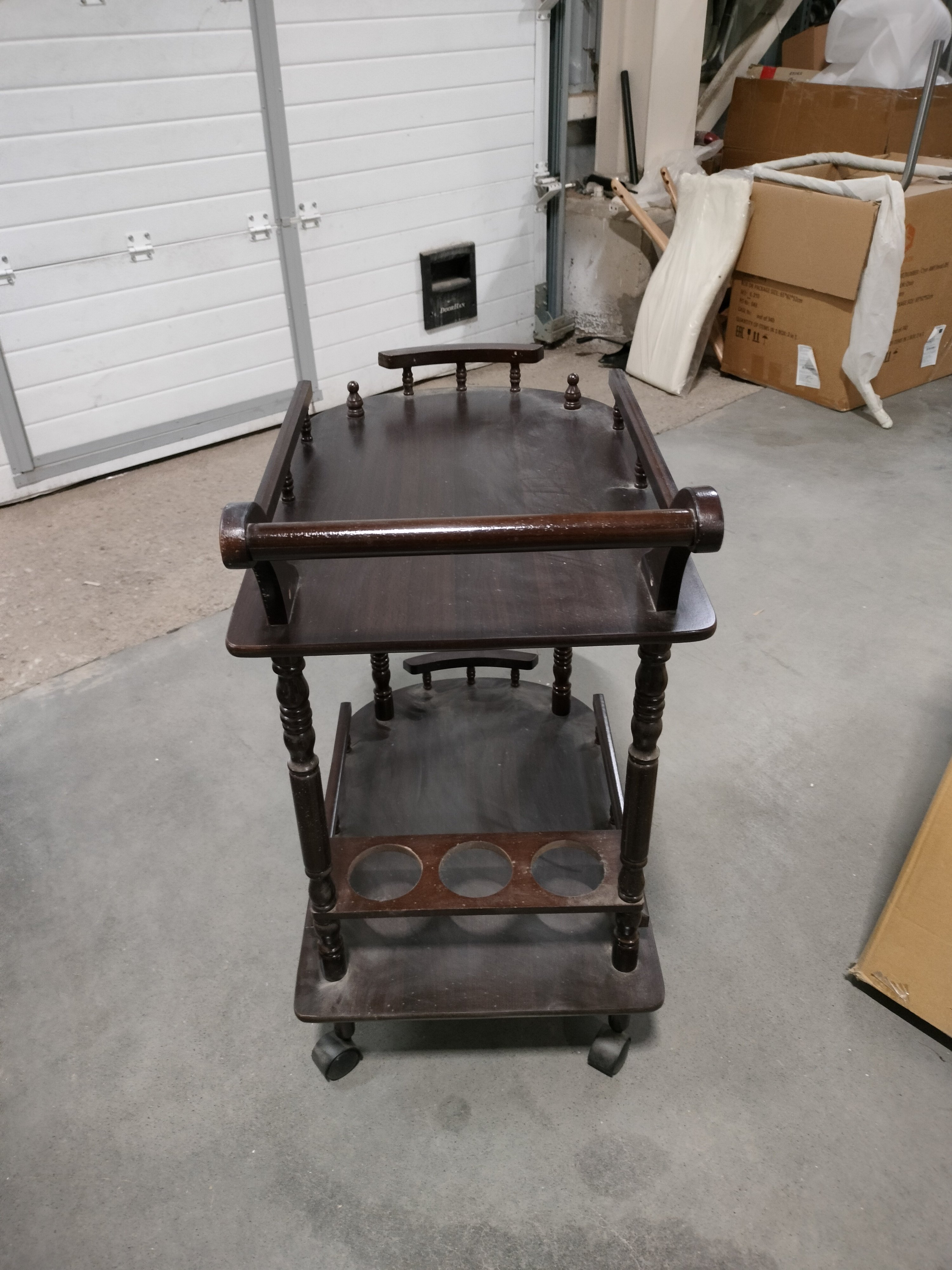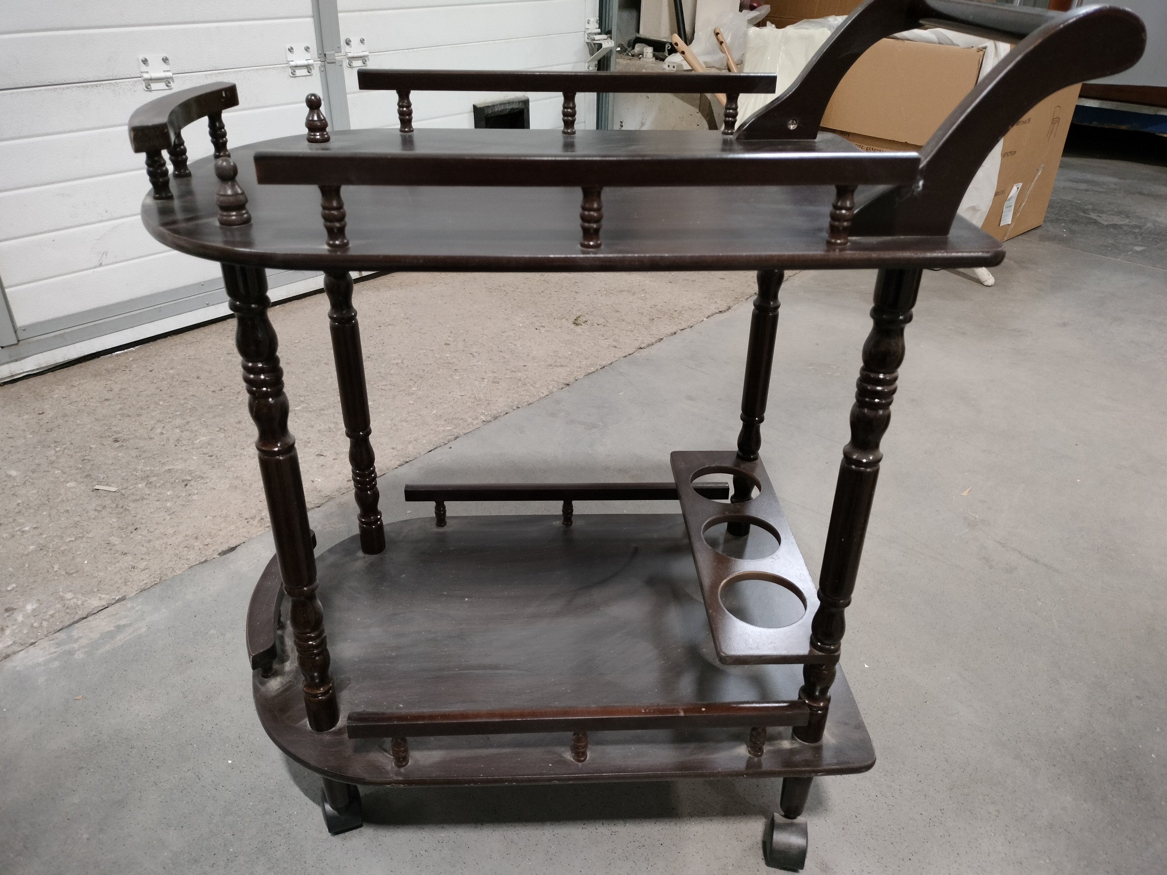 Описание товара без дефектов: Деревянный сервировочный столик из коллекции УЮТНЫЙ ДОМ будет выгодно выделяться среди других предметов интерьера за счет своего элегантного внешнего вида. Он прекрасно подойдет как для загородного дома, так и для городской квартиры. Столешница оригинальной формы придает модели изысканность и уникальность. Нижний уровень сервировочного столика оборудован специальным отделением для винных бутылок. Высокие боковые ограничители позволяют ставить на столешницу различные продукты или бокалы, не опасаясь, что они упадут или скатятся с поверхности. Колесики дают возможность свободно перемещать его по кухне, столовой или гостиной вместе с угощениями. Резные элементы ручной работы выполнены из дерева, полки из МДФ подчеркнут тонкий вкус владельца, а также добавят помещению ноты элегантности и изящности. Деревянный сервировочный столик в цвете орех из коллекции УЮТНЫЙ ДОМ будет отлично смотреться в любом интерьере гостиной или кабинета, порадует вас своей долговечностью, мобильностью и компактностью. Интсрукция по сборке прилагается.