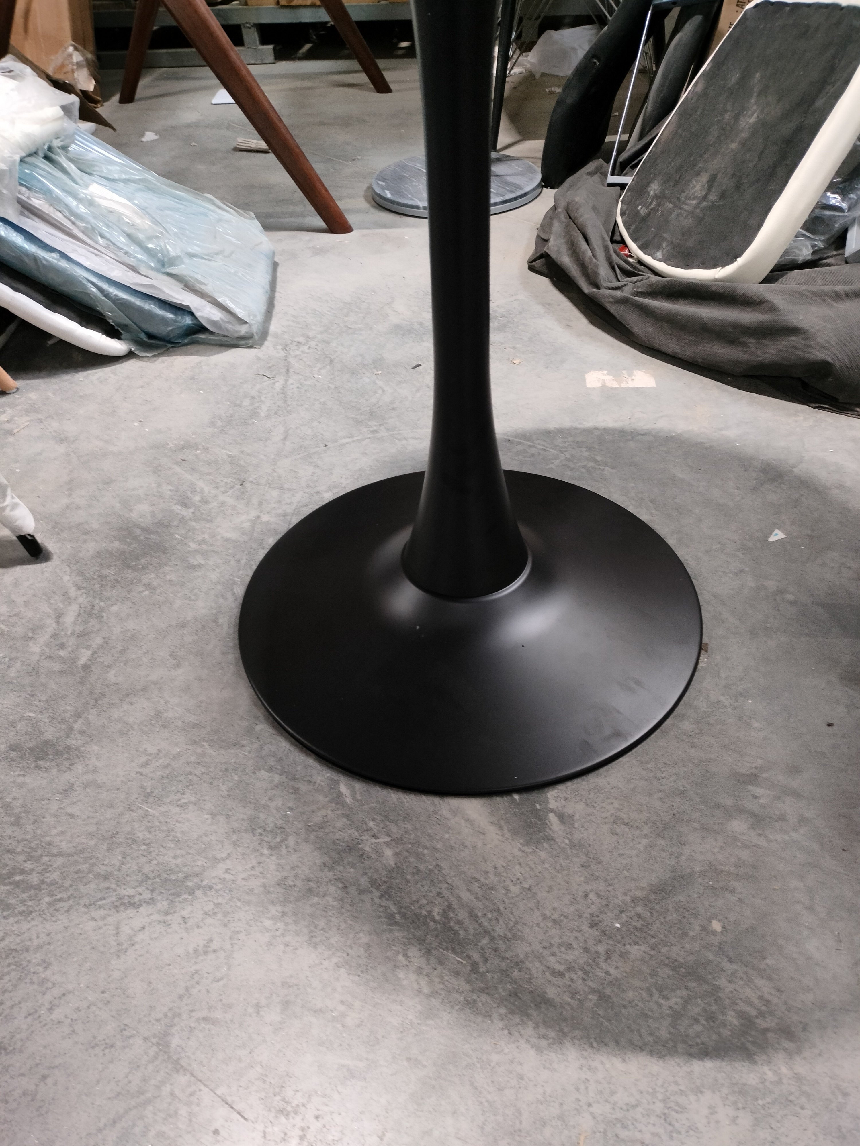 Описание товара без дефектов: Великолепный стол TULIP из коллекции Modern выполнен в стиле известной работы американского архитектора Ээро Сааринена - стула Tulip, который он спроектировал в середине двадцатого века. Стол подкупает своей универсальностью и визуальной легкостью, благодаря которым варианты его расположения в интерьере безграничны. Он хорошо впишется в обстановку гостиной, кухни или столовой, будет смотреться стильно и гармонично в кафе или ресторане. Круглая форма стола располагает к комфортному и непринужденному общению. Металлическое основание и столешница из мдф черного цвета – отличное решение для современного стильного пространства. Благодаря удобным размерам и простоте конструкции стол можно легко переместить при необходимости. МДФ и металл – прочные и долговечные материалы, не требующие специального ухода, способные выдерживать большую нагрузку. Стол хорошо сочетается со стульями TULIP из коллекции Modern. Стол отлично подойдёт для гостиной, кухни, дачи, ресторана или кафе. Стол очень прост в сборке, инструкция по сборке прилагается.