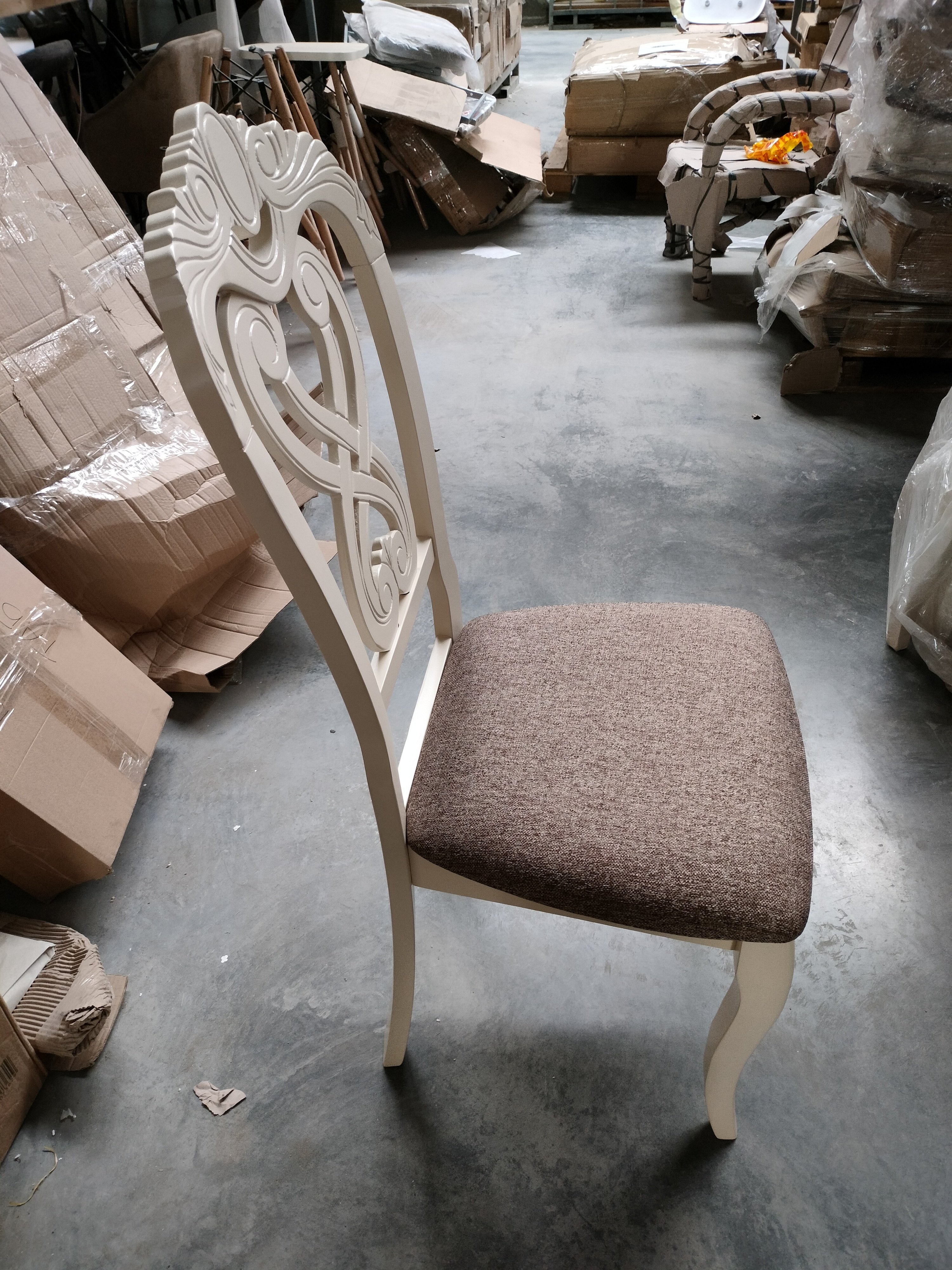 Описание товара без дефектов: Резная спинка, изящные ножки и мягкое сиденье обеденного стула Андромеда (Andromeda) из Дельфийской коллекции - воплощение роскоши, уникальности и изысканности. Модель отлично впишется в обстановку загородного дома или городской квартиры. Стул Андромеда с резной спинкой ручной работы может стать не только частью интерьера, но и нестандартной составляющей обстановки, привлекающей к себе внимание в кафе или ресторане. Утонченные грациозные ножки модели имеют изогнутую форму, что придает ей визуальную легкость и уникальность. Каркас изделия изготовлен из крепкой и прочной древесины - дерева гевеи. Комфортное мягкое сиденье обито тканью, не требующей дополнительного ухода и поддающейся несложной чистке. Безукоризненное сочетание каркаса и ножек цвета слоновой кости (Ivory white) с сиденьем благородного коричневого цвета позволяет использовать модель в помещении любой цветовой гаммы. Деревянный стул Андромеда придаст элегантности вашему интерьеру и ,он будет вас радовать своим первоначальным видом долгие годы. Стул подойдёт для гостиной, кухни или столовой. Стул очень прост в сборке, инструкция по сборке прилагается.