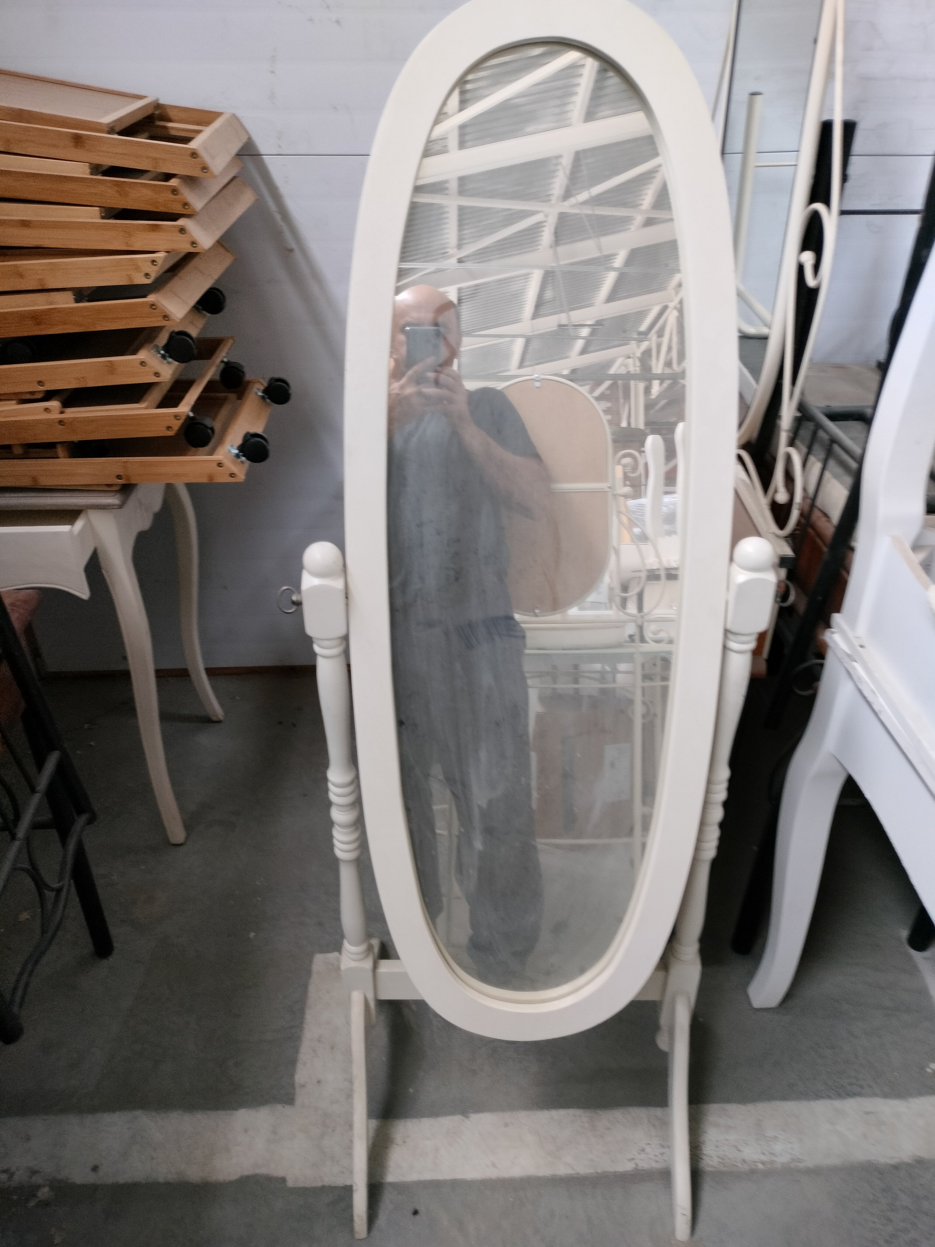 Описание товара без дефектов: Напольное зеркало из коллекции УЮТНЫЙ ДОМ станет отличным решением для вашего интерьера. Модель идеально впишется в дизайн спальни, гостиной, прихожей, ванной комнаты. Зеркало овальной формы смотрится стильно и оригинально. Резные изящные ножки устойчивы и надежны. Прочный деревянный каркас долговечен, не требует особого ухода, не теряет своего первоначального внешнего вида на протяжении длительного времени. Наклон регулируется с помощью специального механизма, что позволяет использовать модель при любых обстоятельствах. Элегантное зеркало белого цвета легко впишется в любой стиль и цветовое решение интерьера. Оно визуально расширит пространство, сделает его объемнее и светлее. Изысканное зеркало из коллекции УЮТНЫЙ ДОМ восхитит владельца своей долговечностью, практичностью и красотой. Модель дополнит интерьер вашего дома, добавит визуальной легкости и изящества обстановке загородной квартиры. Модель очень проста в сборке, инструкция по сборке прилагается.