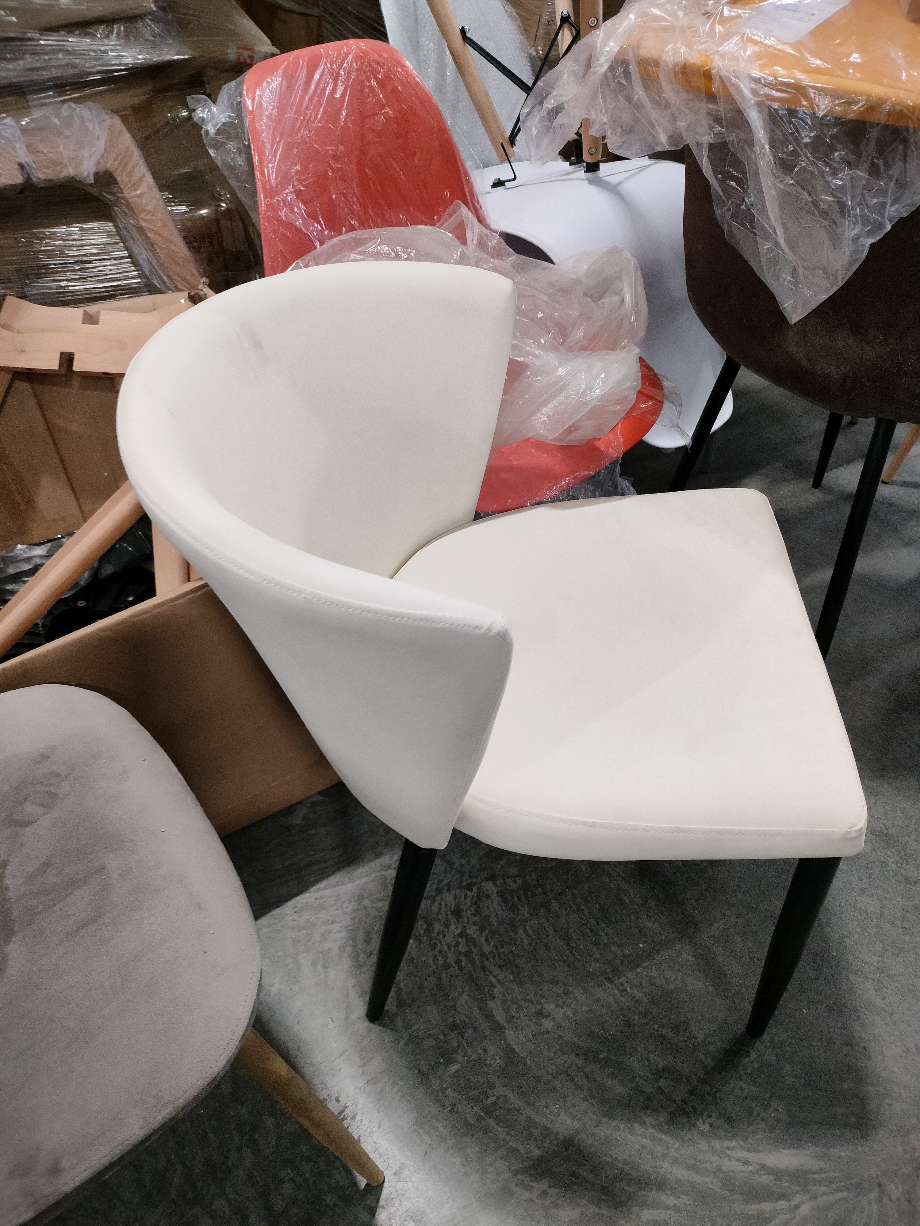 Описание товара без дефектов: Оригинальная форма и необычный дизайн стула AMY из коллекции Modern идеально соответствуют концепции современного стильного пространства. Тонкие металлические ножки и обивка из полиуретана белого цвета выгодно выделяют модель в интерьере, придают ей визуальную легкость и привлекательность. Несмотря на необычную форму стула, эргономичная спинка и сиденье обеспечивают комфорт и удобство для продолжительного отдыха. Полиуретан – мягкий, приятный на ощупь материал. Обивка из него не деформируется, не выгорает, она сверхпрочная, эластичная, устойчивая к механическим нагрузкам и повреждениям. Каркас стула выполнен из металла, он надежен, прочен, долговечен. Стул не требует специального ухода и будет долгое время радовать вас своим первоначальным видом.
