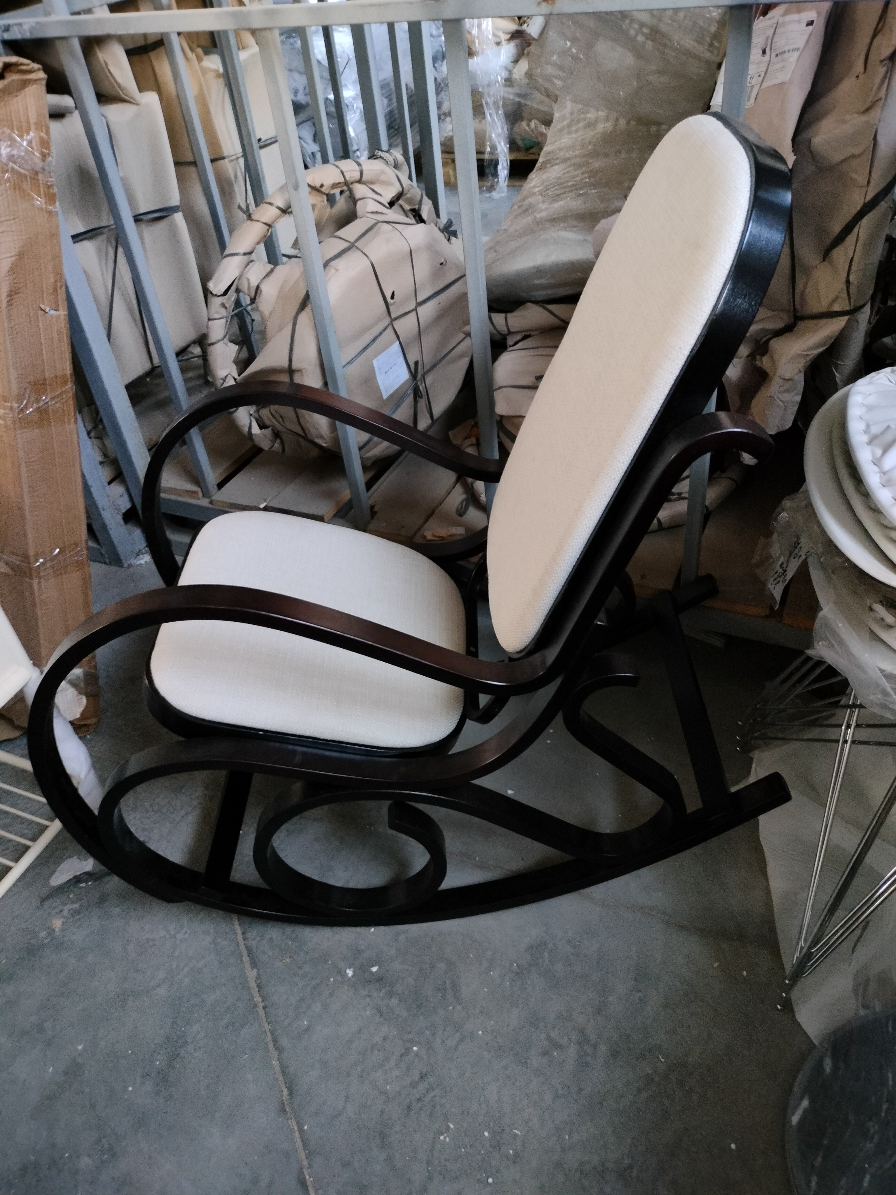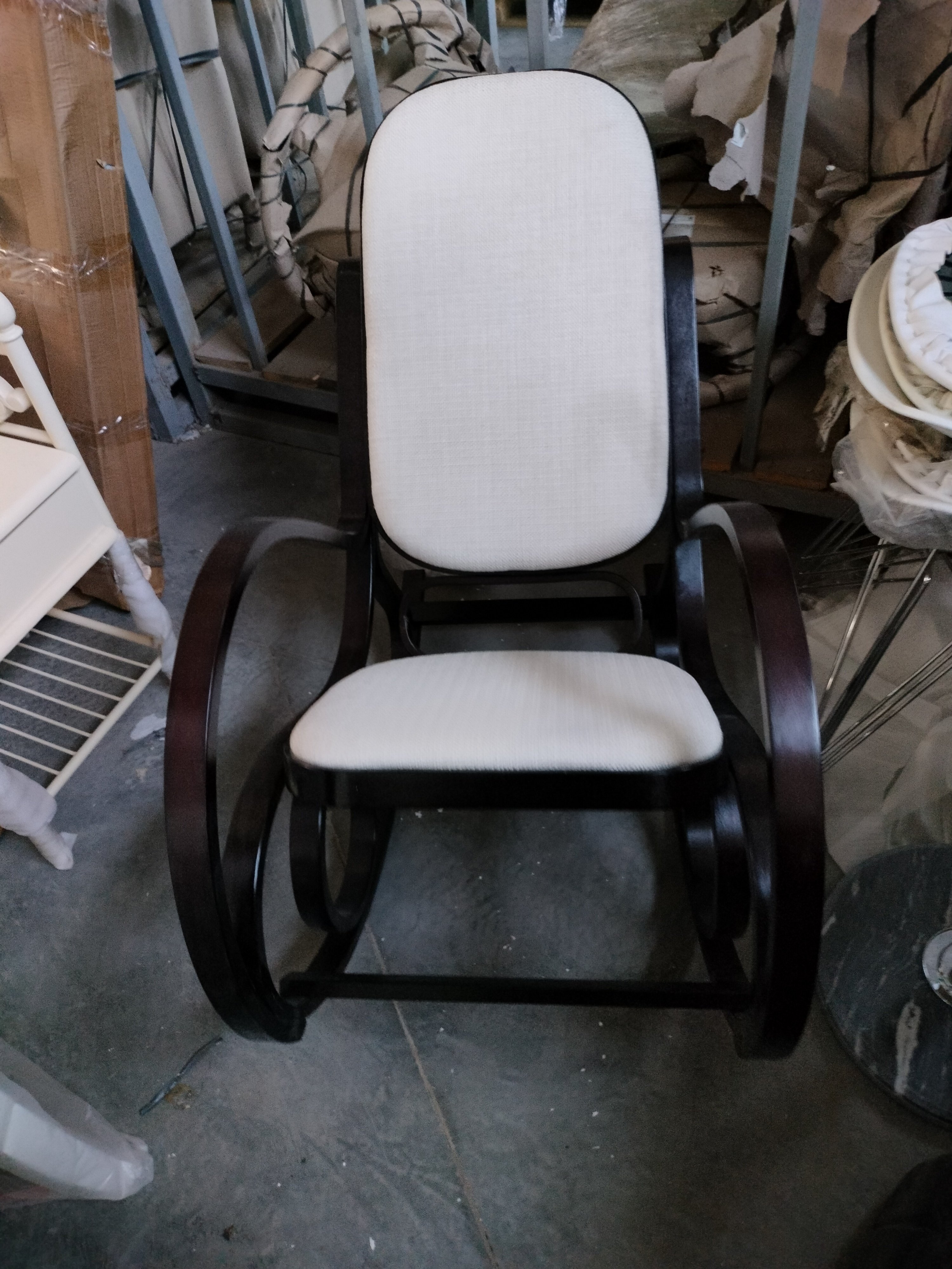 Описание товара без дефектов: Кресло-качалка. Основание - берёза. Сиденье - ткань. Размеры: 48,5х54,5х86 см