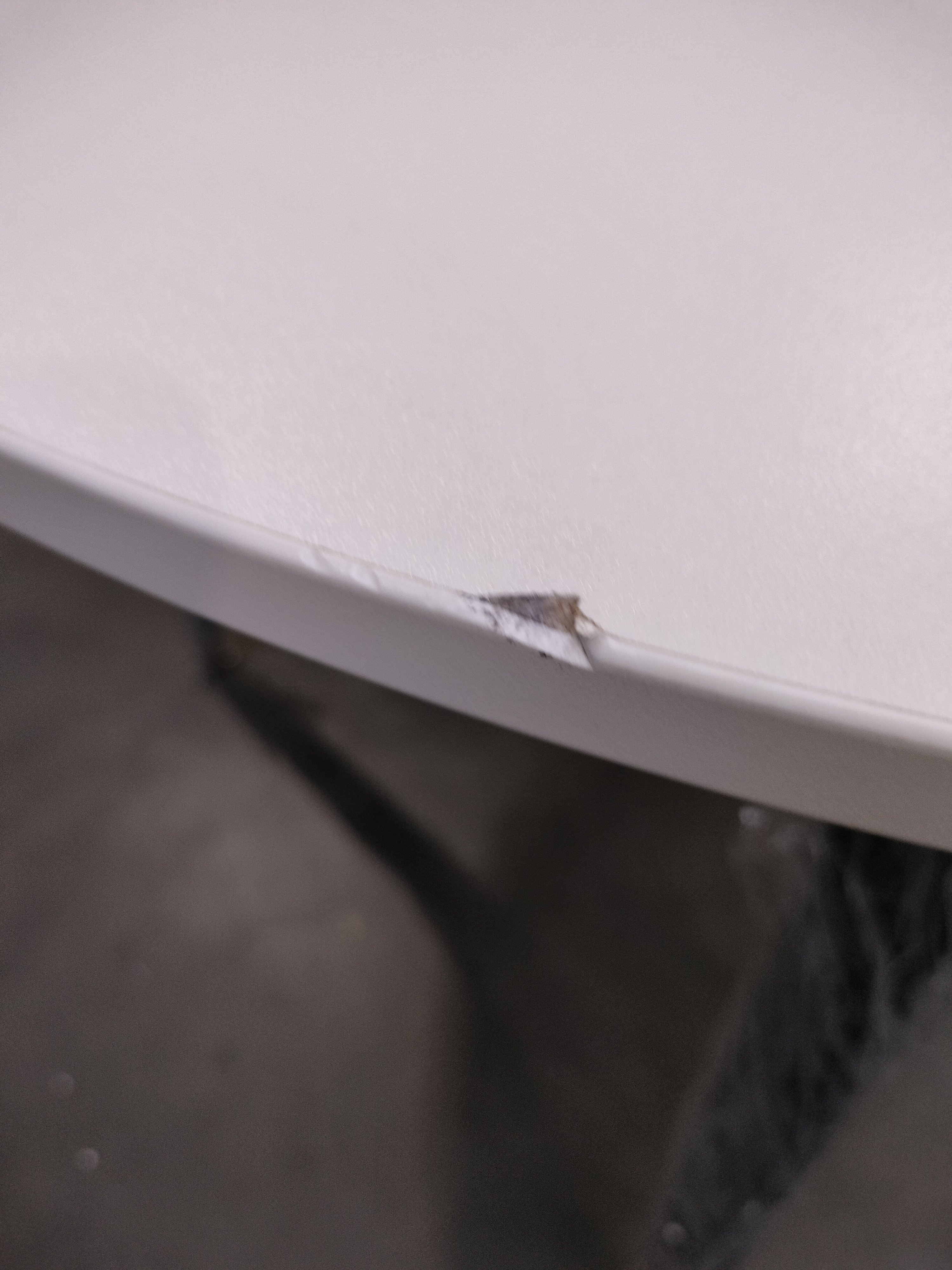 Описание товара без дефектов: Стильный обеденный стол Uranus из коллекции Modern отлично дополнит интерьер загородного дома, городской квартиры, кухни, гостиной, столовой, кафе или ресторана. Компактный и аккуратный стол отлично подойдет даже для небольших помещений. Столешница белого цвета выполнена из ЛДСП толщиной 18 мм, края оклеены прочной пластиковой кромкой толщиной 2 мм. Изящные тонкие ножки изготовлены из металла и окрашены в черный цвет. Размеры стола дают возможность с комфортом разместить от двух до четырех человек. Стол очень прост в сборке, инструкция по сборке прилагается.