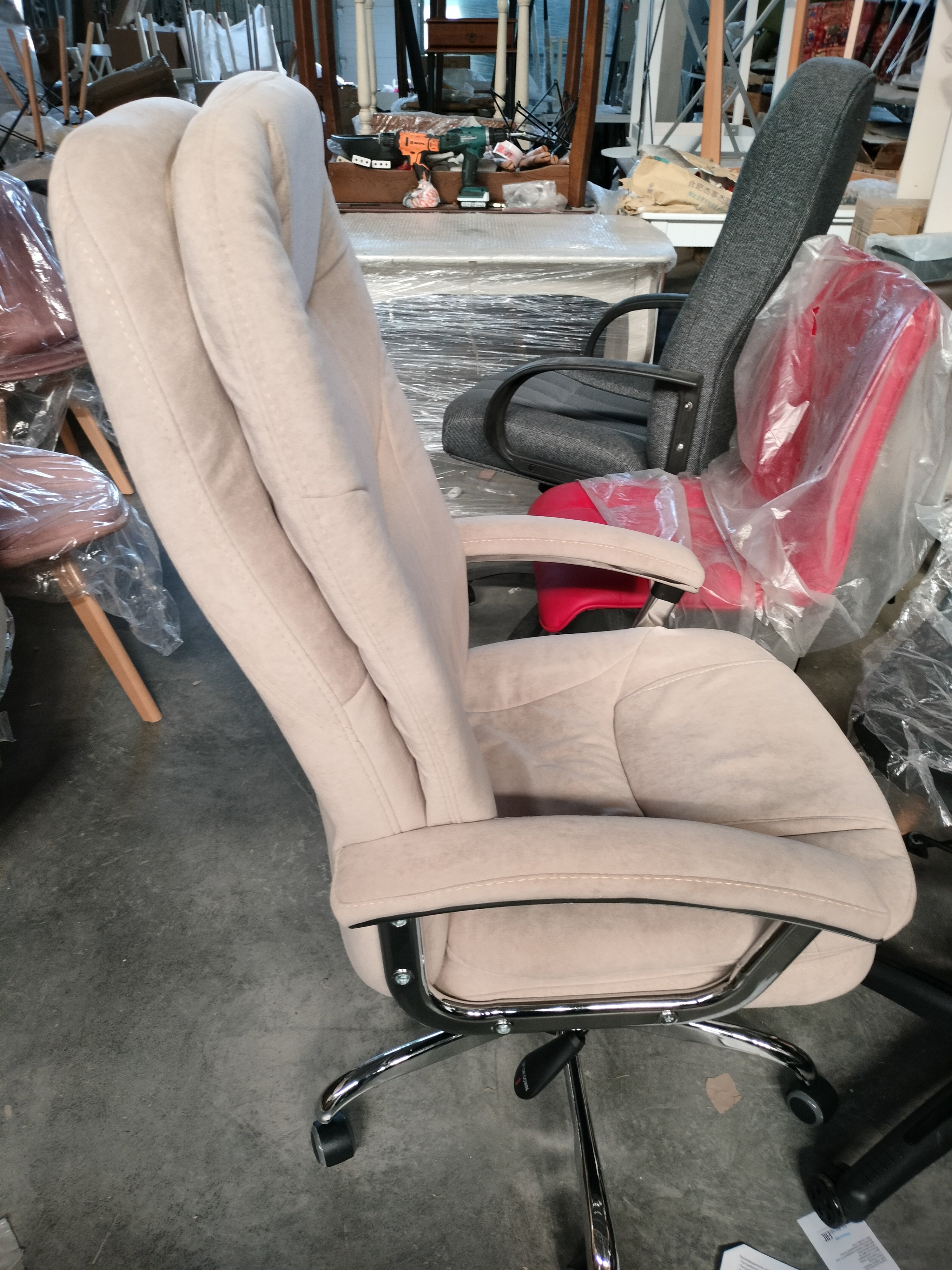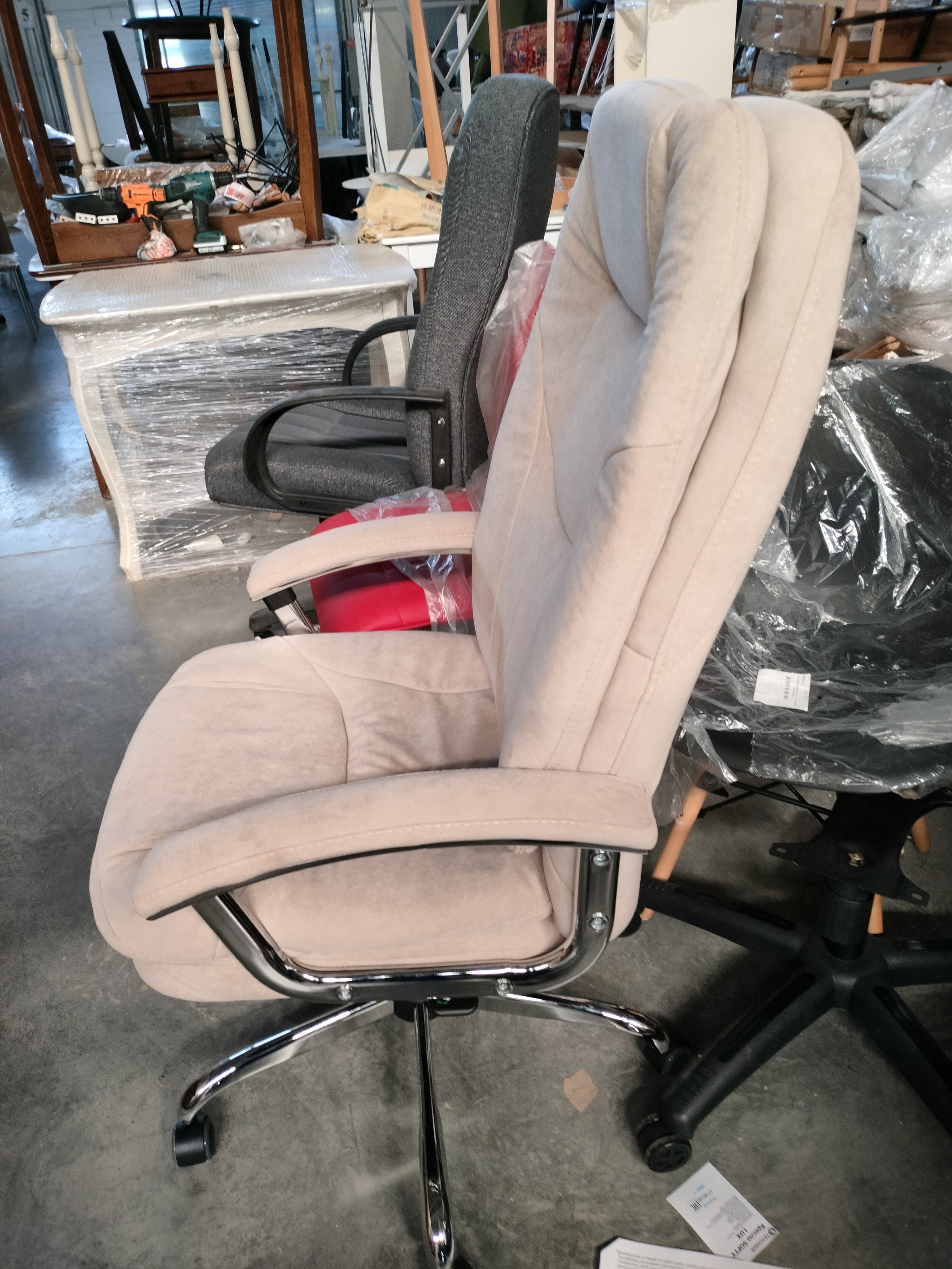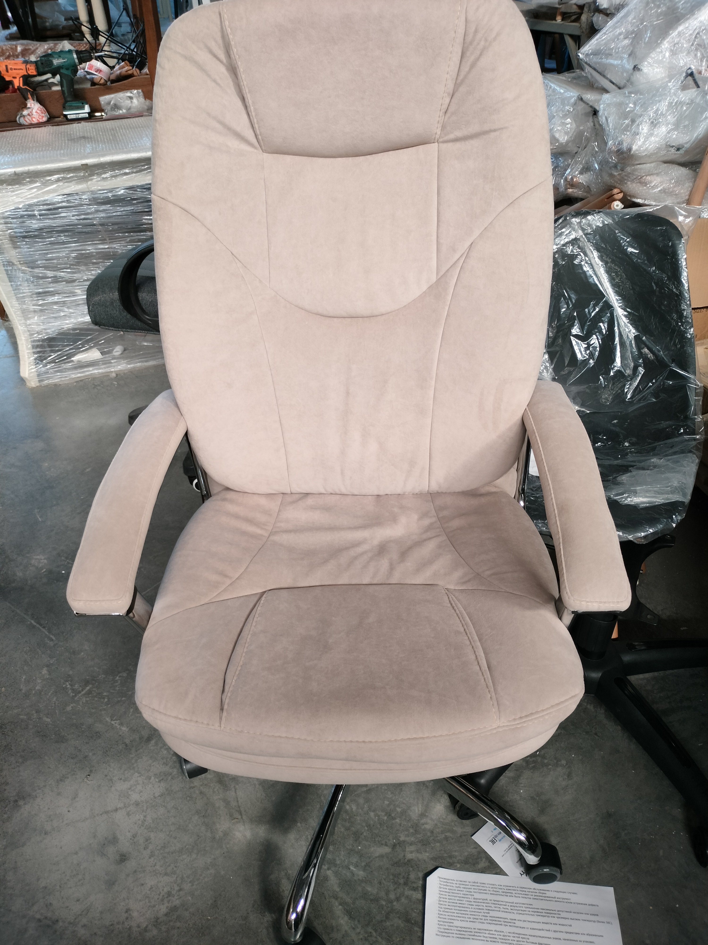 Описание товара без дефектов: Уникальное компьютерное кресло SOFTY LUX из коллекции OFFICE станет отличным решением для любых интерьеров и гармонично впишется в любой рабочий кабинет. Модель подчеркнет особый статус владельцев, наделит помещение благородством, богатством и комфортом. Крепкий каркас выполнен из фанеры толщиной более 10 мм – экологически чистого, надежного и долговечного материала. Сиденье с мягким наполнителем из пенополиуретана (до 35 кг/м2) стандартной плотности обладает высокими эксплуатационными качествами, не меняет форму со временем. Компьютерное кресло регулируется по высоте и наклону с фиксацией в любом положении до 15 градусов. Фиксированные металлические подлокотники с мягкими накладками, широкое сиденье, эргономичная спинка помогут принять удобную позу и снять напряжение с позвоночника. Хромированная крестовина устойчива, выдерживает большой вес, выглядит привлекательно и стильно. Полиуретановые ролики с прорезиненными вставками не повреждают напольную поверхность, не оставляют следов на паркете и ламинате. Ролики и крестовина в креслах бренда TETCHAIR соответствуют стандарту BIFMA. Во всех креслах бренда TETCHAIR используются газлифты 3 класса, он способен выдерживать вес до 120 кг. Оригинальное компьютерное кресло, обитое износостойкой высокопрочной экокожей или мягким флоком, представлено в коричневом, черном, бежевом, сером, синем и розовом цветах. Экокожа, используемая при изготовлении кресла, выдерживает до 50 000 циклов на истирание по Мартиндейлу, ткань флок также выдерживает до 50 000 циклов. Ткани с прочностью более 35 000 циклов являются самыми долговечными. Мебель, в которой используются такие ткани можно использовать не только дома но и в ресторанах, салонах красоты, приемных. Привлекательный дизайн и отличные эксплуатационные качества компьютерного кресла SOFTY LUX будут доставлять удовольствие и восхищать вас долгие годы. Модель поставляется в разобранном виде. Необходима простая сборка по прилагаемой инструкции. Максимальная нагрузка 120 кг.