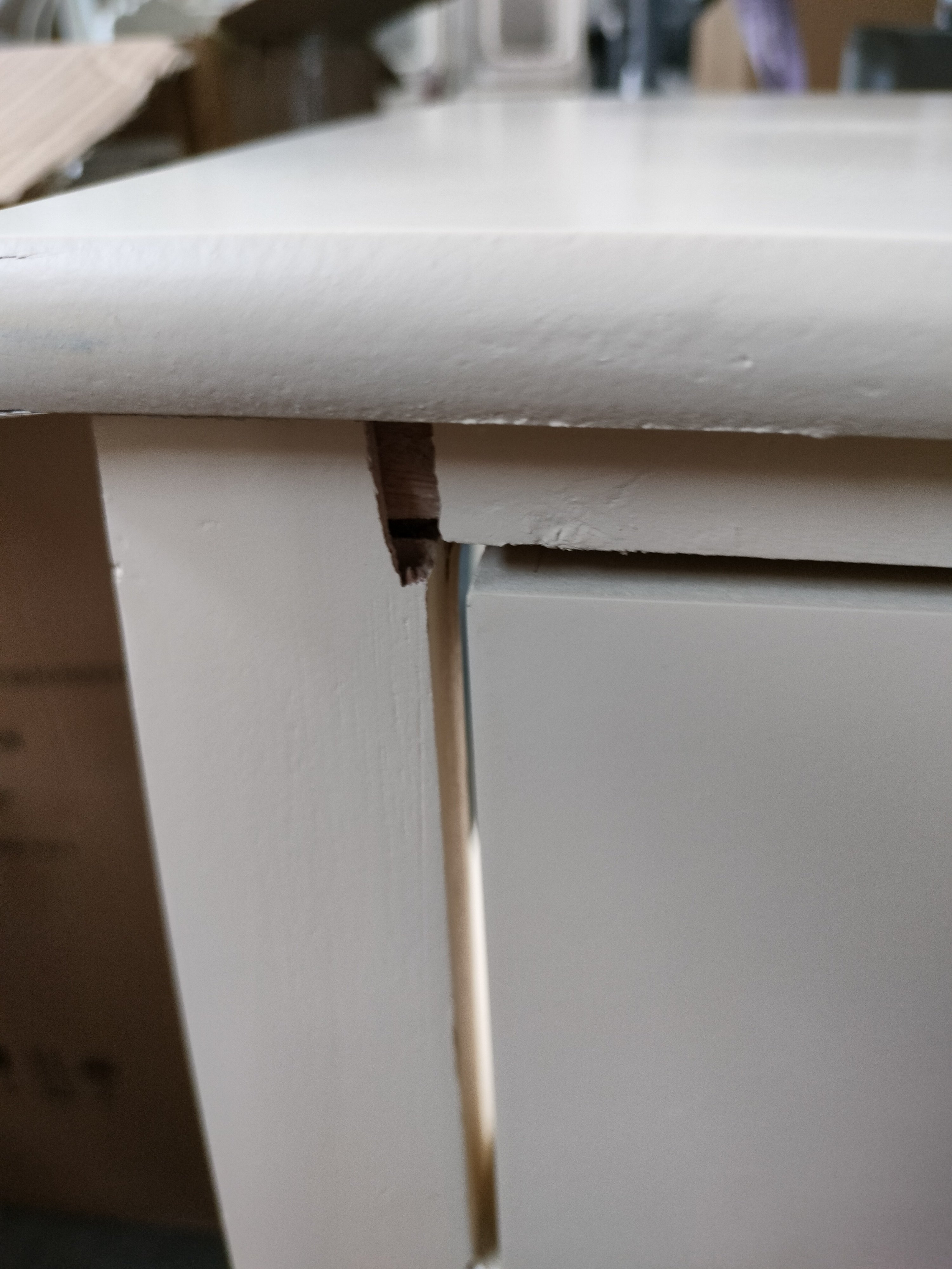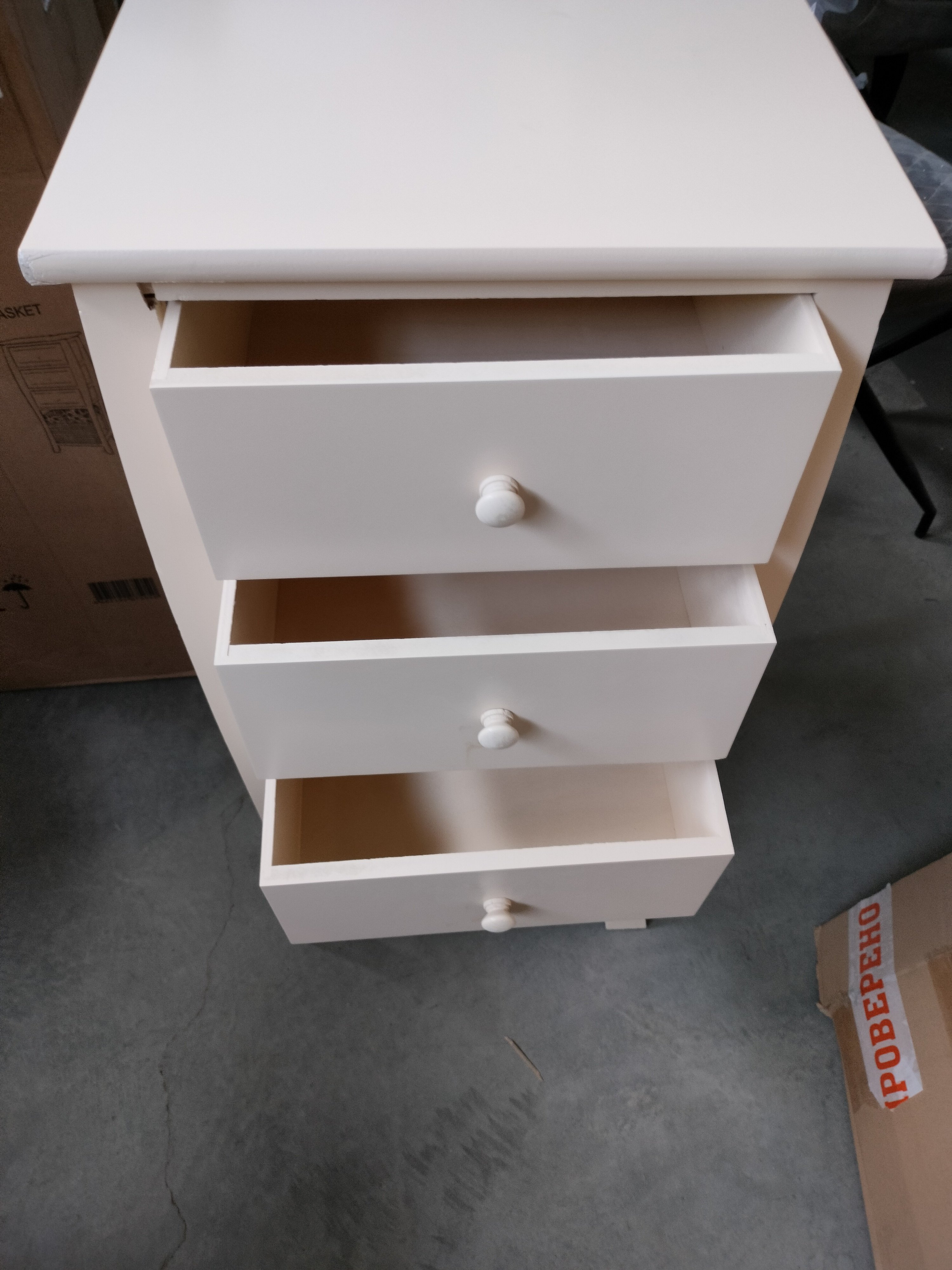 Описание дефекта: множественные нарушение лкп по всей тумбы на боковой части трещина между ящиками