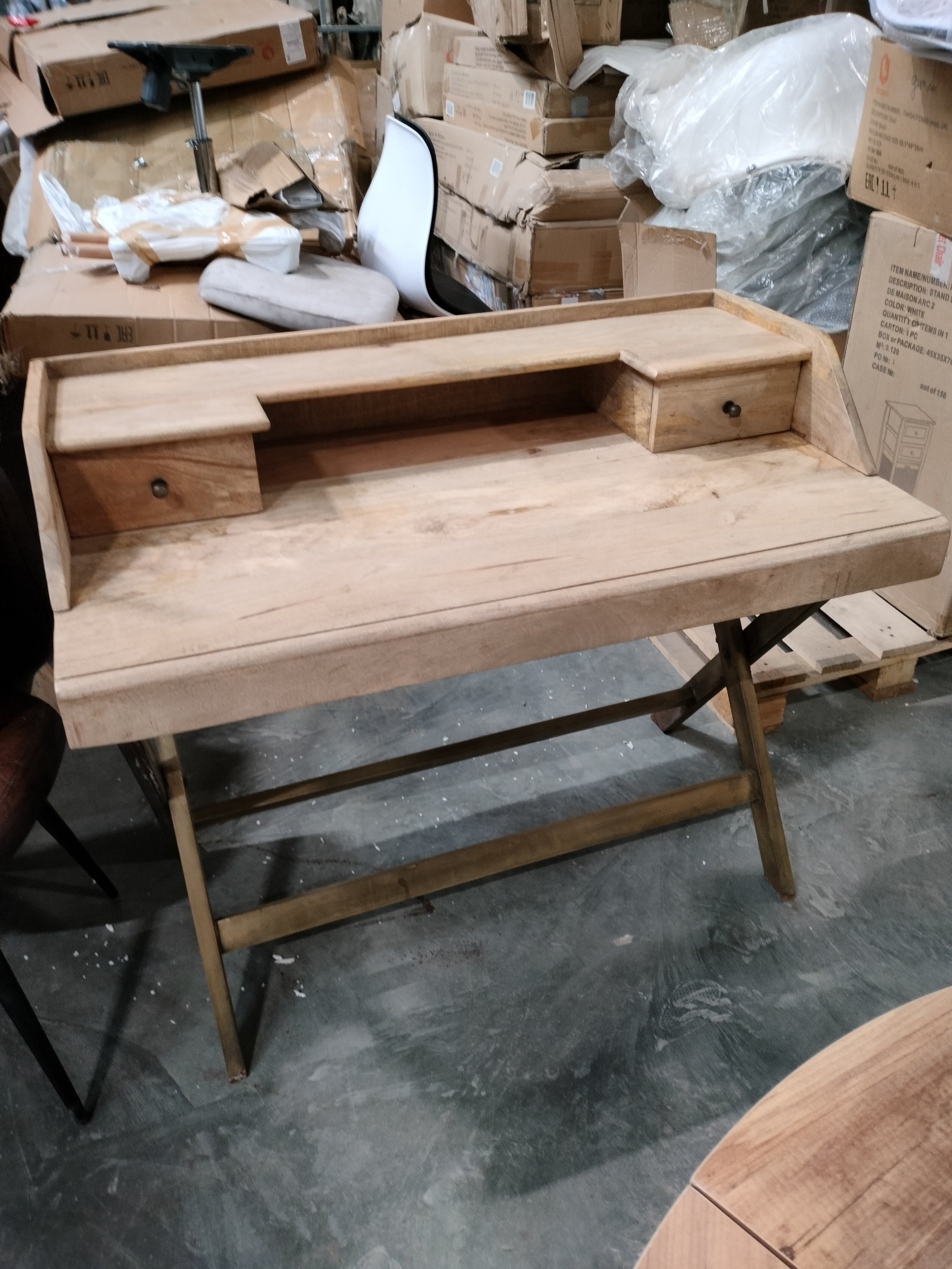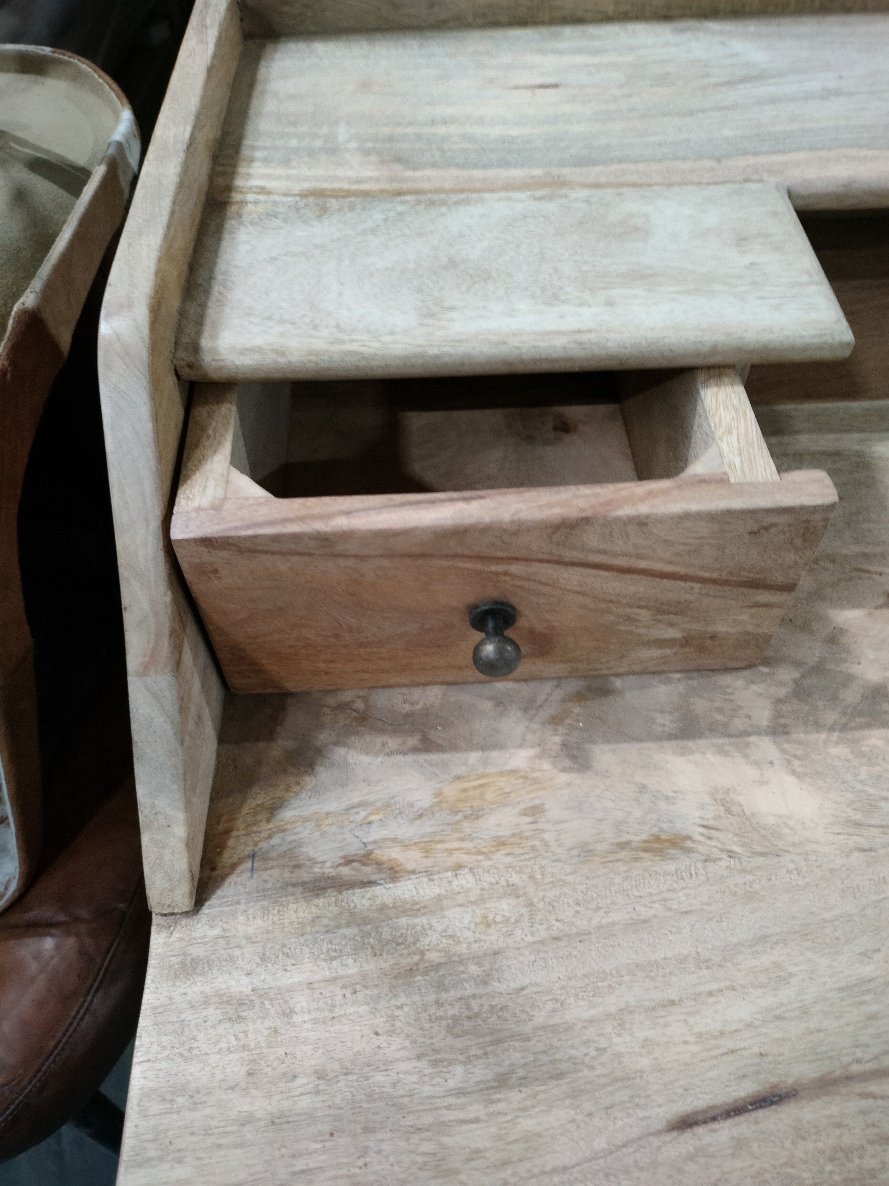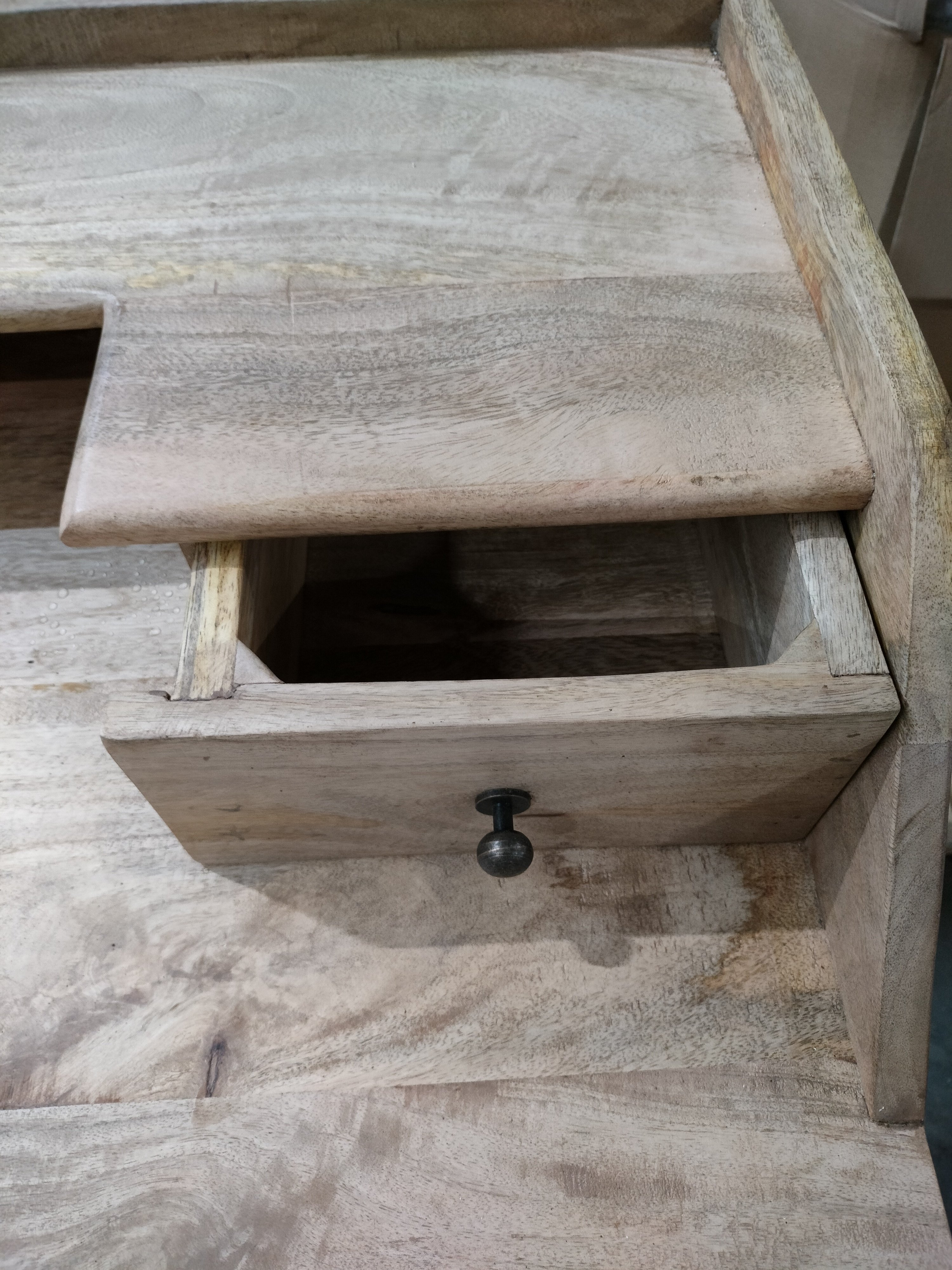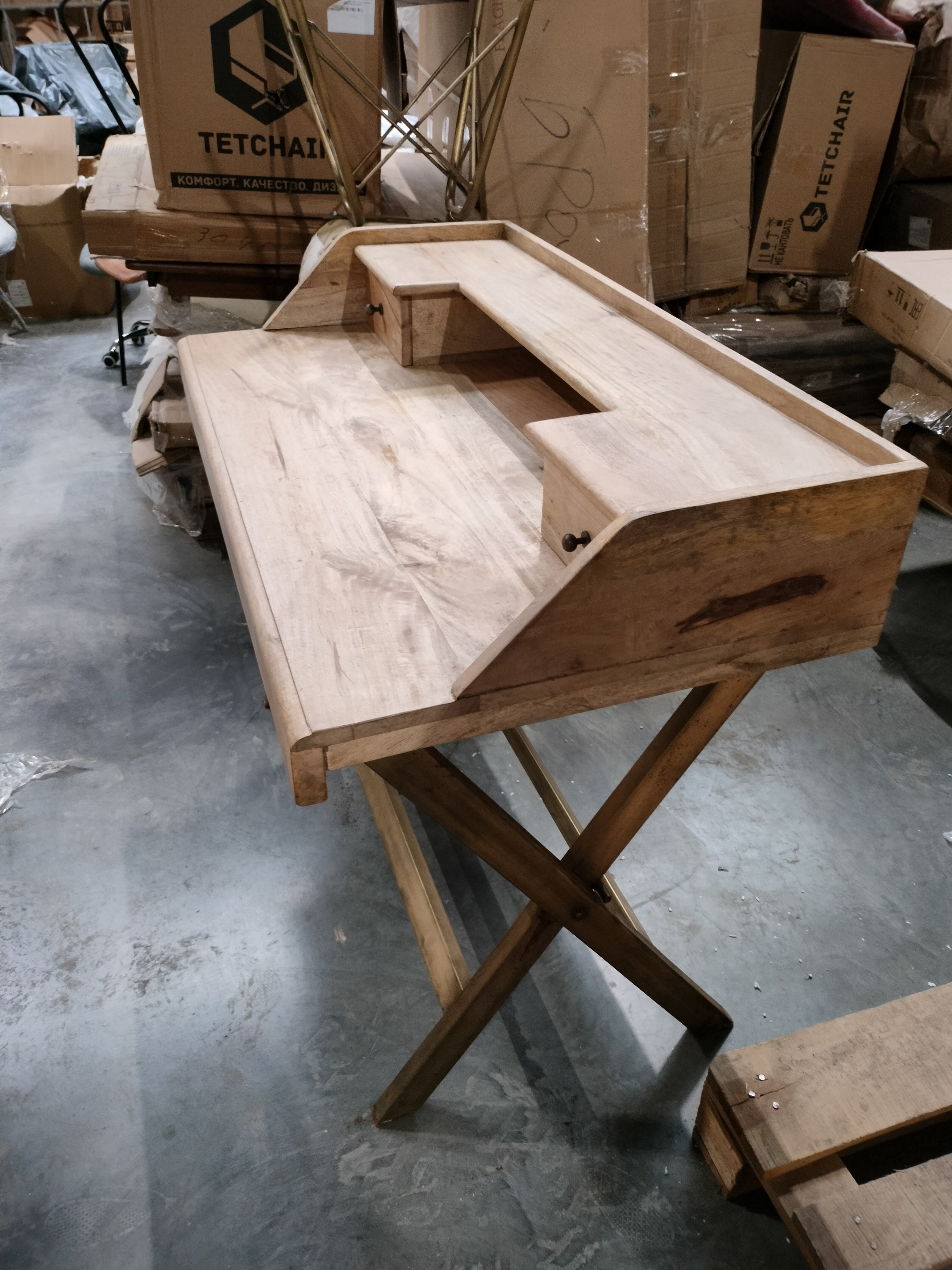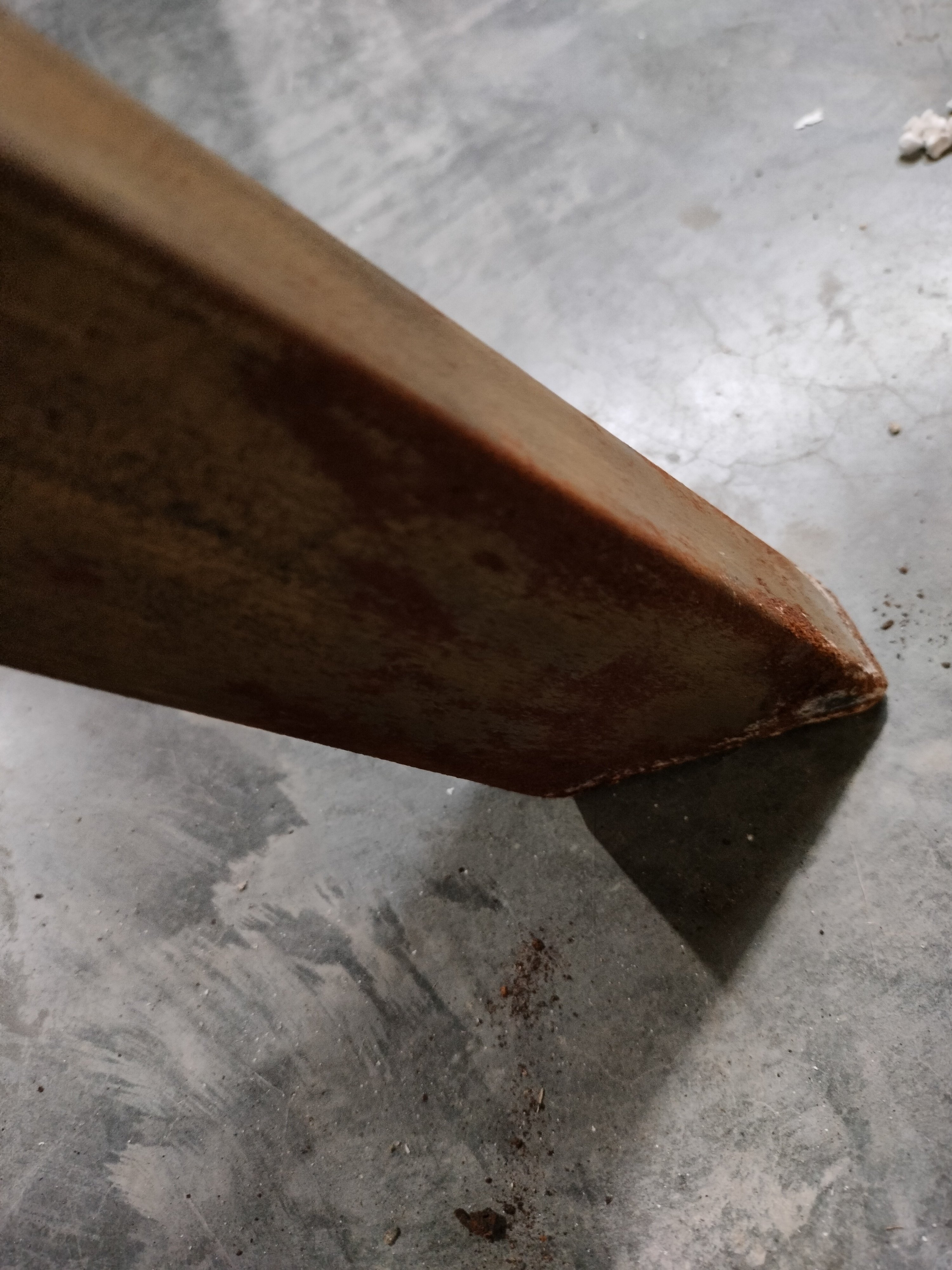 Описание дефекта: микросколы и трещины на деревянных поверхностях, ржавчина на ножках.
