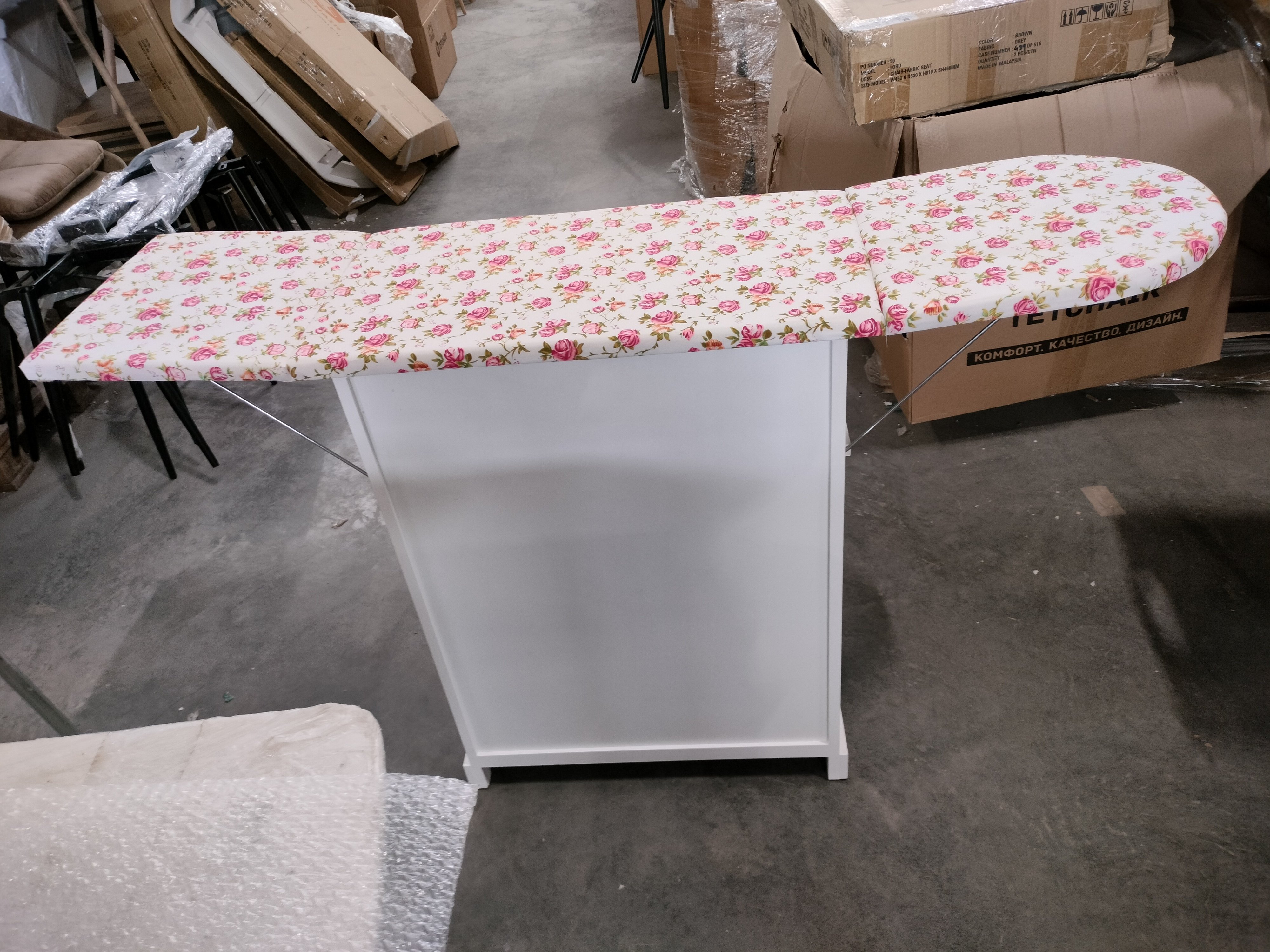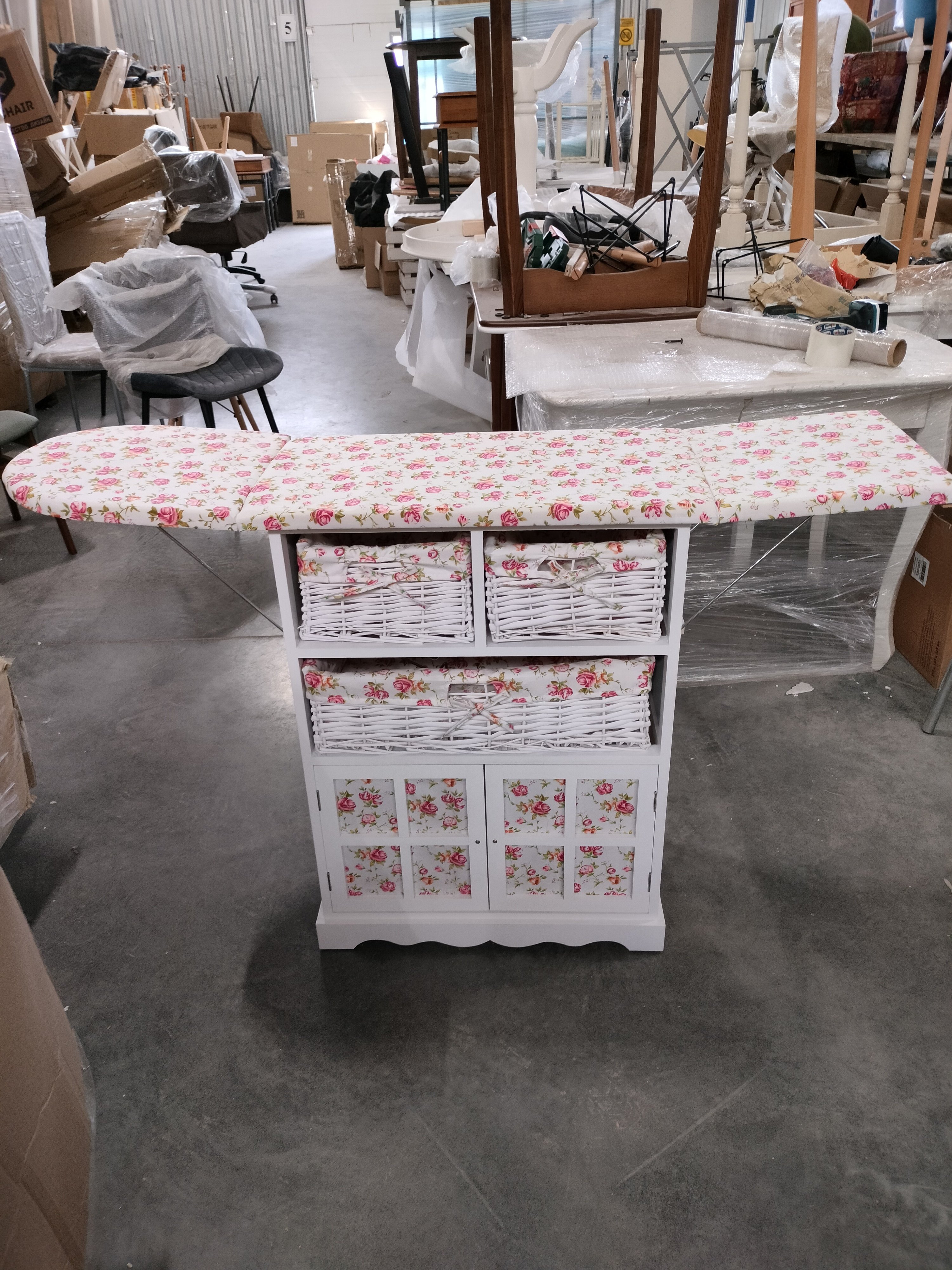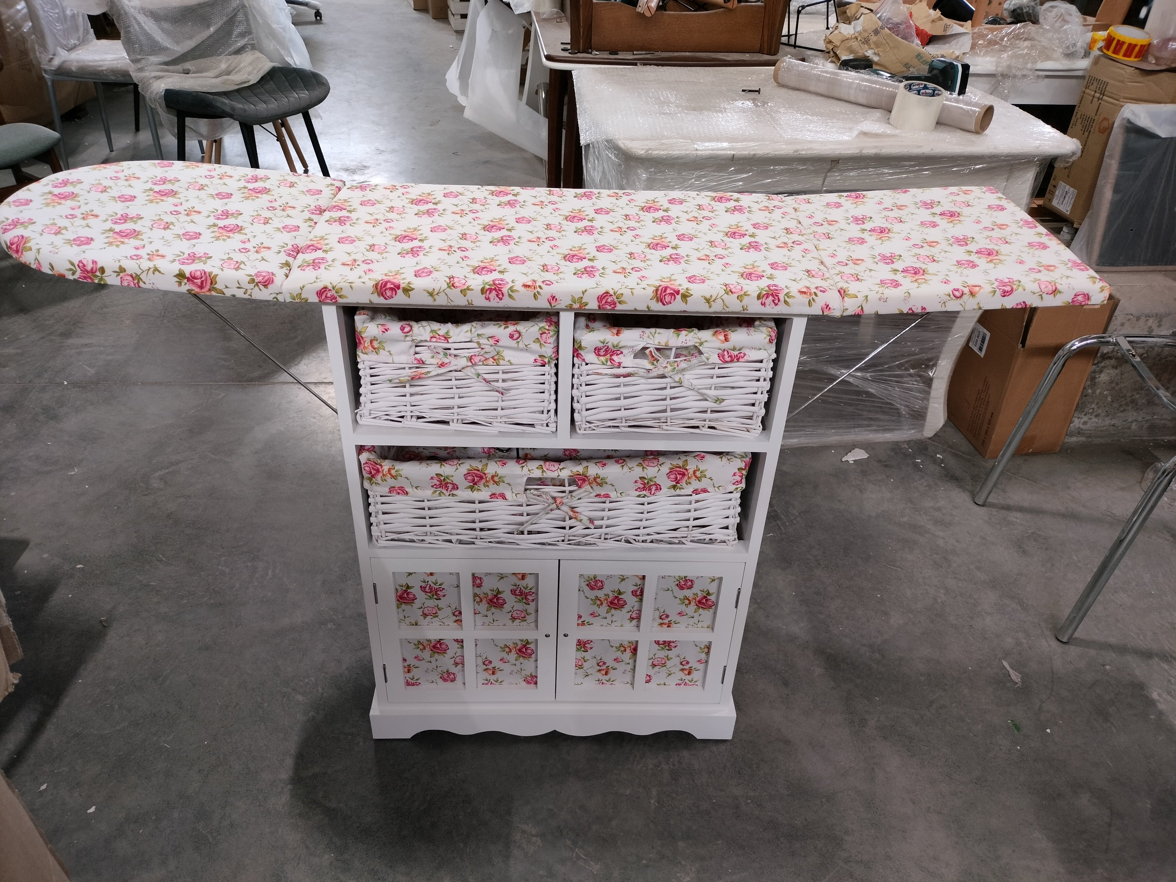 Описание товара без дефектов: Интересный и продуманный дизайн, ориентированный на практичность, выгодно выделяет гладильный комод Secret De Maison CAMPANARD среди привычной мебели. Каркас из массива павловнии, покрашенный в цвет слоновой кости, плетеные корзины из бумажного жгута ручной работы и тканевые чехлы с цветочным принтом помогут создать атмосферу максимального уюта, спокойствия и умиротворения в вашем доме. В сложенном виде комод не занимает много места. Благодаря наличию специального складного механизма, его можно быстро и легко трансформировать в гладильную доску. Удобный размер доски, подставка для утюга и чехол из ткани обеспечивают оптимальные условия для глажки. Плетеные корзины разного размера и закрытое отделение с дверцами идеальны для хранения постельного белья, утюга и множества предметов. Этот стильный, привлекающий внимание комод, можно поставить в любой комнате: гостиной, спальне, коридоре, ванной. Модель выполнена из массива павловнии, легкого и одновременно прочного материала, с хорошими водоотталкивающими свойствами, благодаря чему комод долговечен, надежен и не требует специального ухода. Изделие отлично сочетается с мебелью из коллекции SAINT-TROPEZ, поставляется в собранном виде.