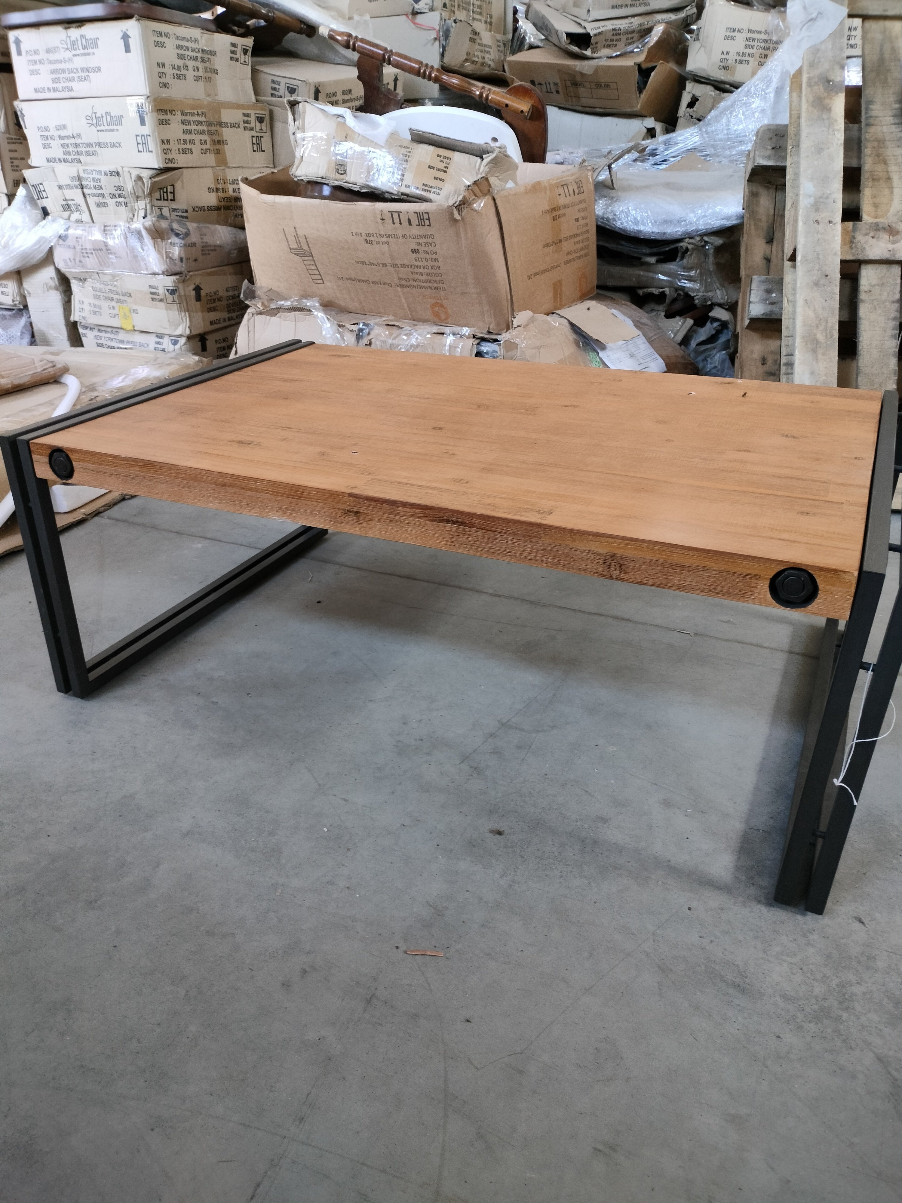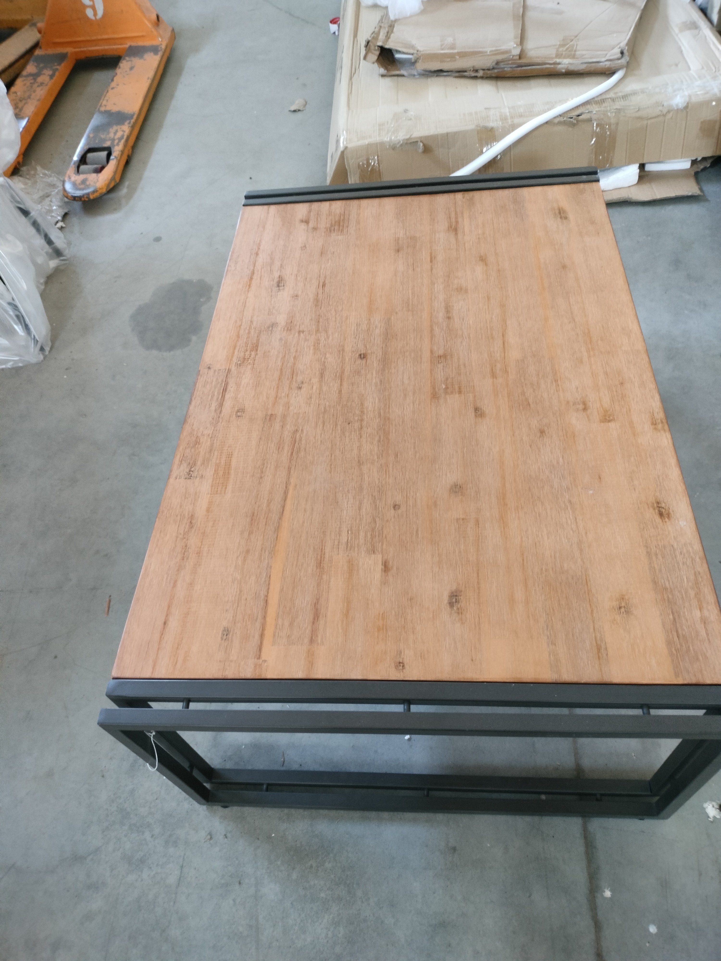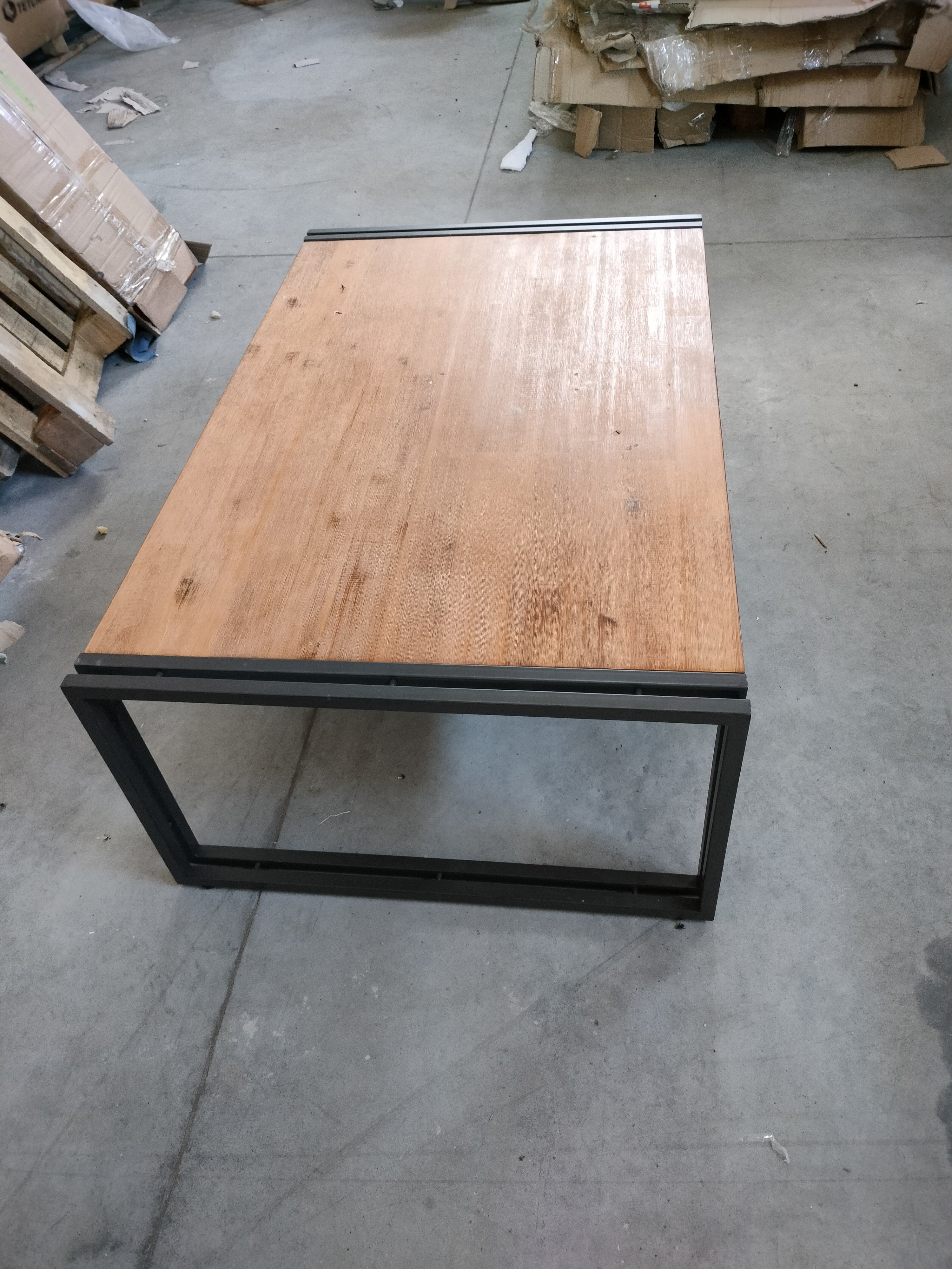 Описание товара без дефектов: Материал: ножки - металл, столешница - дерево акация с брашированием. Цвет: коричневый дым (smoke brown B034). Размеры: 41х110х70 см