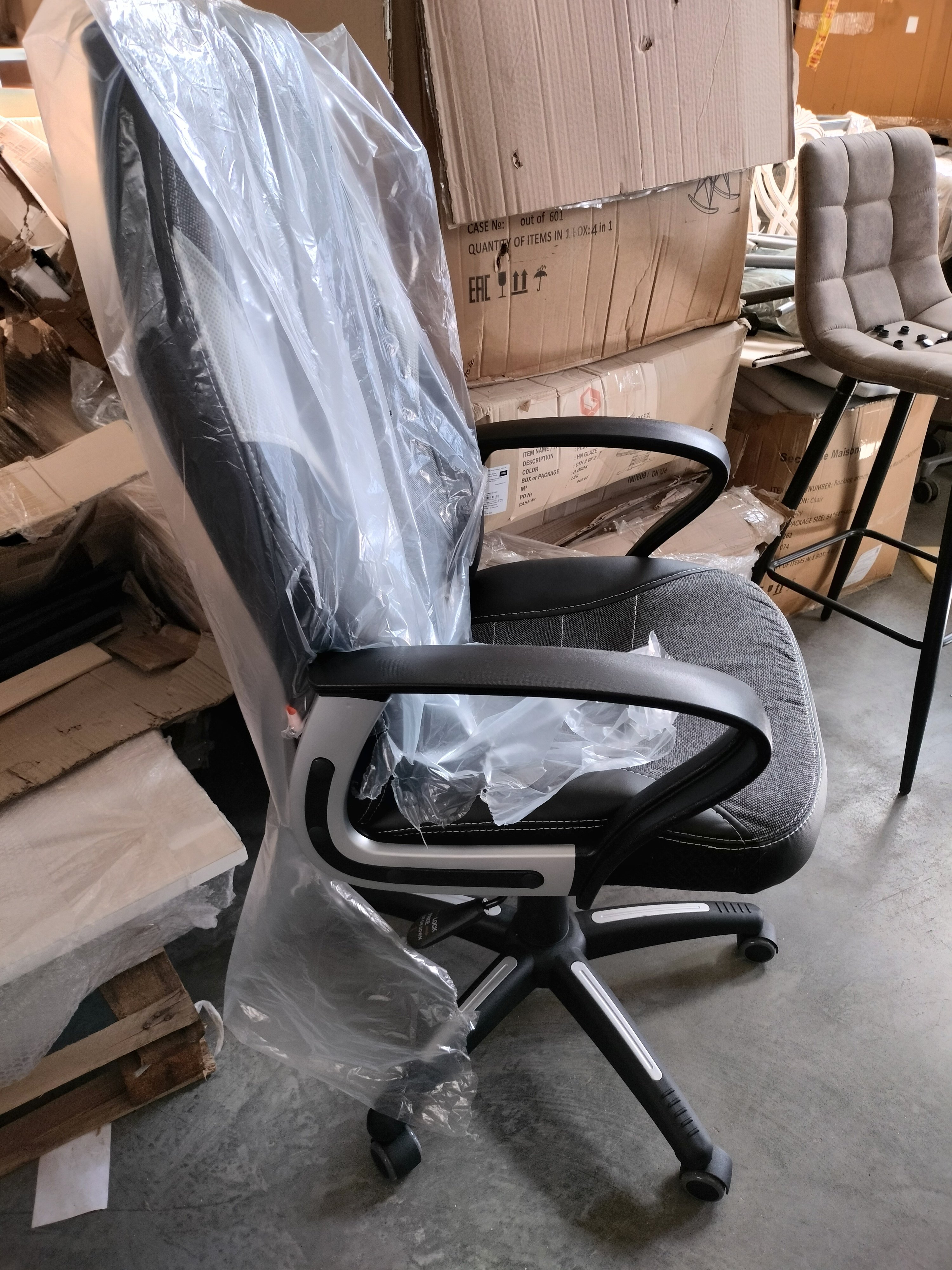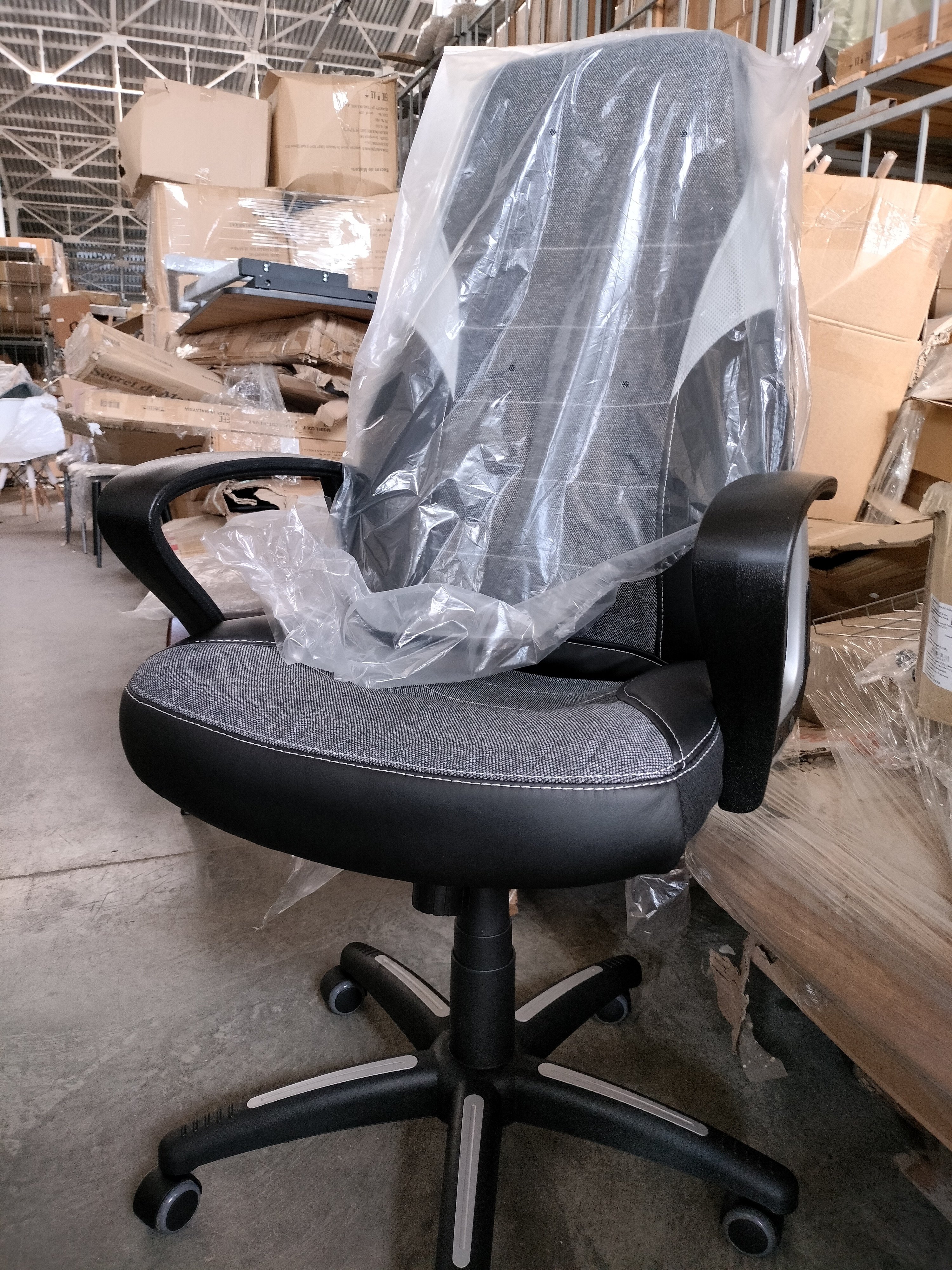 Описание товара без дефектов: Уникальные черты компьютерного кресла INTER из коллекции OFFICE помогут довести интерьер вашего рабочего пространства до совершенства. Модель гармонично впишется в любое помещение, сочетая в себе функциональность и оригинальный внешний вид. Каркас из экологически безопасной фанеры толщиной более 10 мм гипоаллергенен и надежен. Широкое сиденье с мягким наполнителем из пенополиуретана (до 35 кг/м2) стандартной плотности легко подстраивается под контуры тела человека, обладает отличными эксплуатационными качествами. Высота и наклон с фиксацией в одном положении регулируется при помощи основательного механизма. Пластиковая крестовина с декоративными вставками и специальными насечками для предотвращения соскальзывания ног надежна, устойчива к частому использованию и усиленной эксплуатации. Полиуретановые ролики с прорезиненными вставками имеют тихий ход, подходят для использования на ламинате и паркете. Ролики и крестовина в креслах бренда TETCHAIR соответствуют стандарту BIFMA. Во всех креслах бренда TETCHAIR используются газлифты 3 класса, он способен выдерживать вес до 120 кг. Фиксированные пластиковые подлокотники с декоративными вставками снимут нагрузку с плеч и помогут расслабиться. Оригинальное сочетание высокопрочной износостойкой экокожи и крепкой ткани выглядит стильно и изысканно. Экокожа, используемая при изготовлении кресла, выдерживает до 50 000 циклов на истирание по Мартиндейлу, ткань флок также выдерживает до 50 000 циклов. Ткани с прочностью более 35 000 циклов являются самыми долговечными. Мебель, в которой используются такие ткани можно использовать не только дома но и в ресторанах, салонах красоты, приемных. Привлекательная модель INTER представлена в коричневом, черном и сером цветах. Офисное кресло произведет впечатление на вас своей солидностью, долговечностью и отличными эксплуатационными качествами. Модель поставляется в разобранном виде. Необходима простая сборка по прилагаемой инструкции. Максимальная нагрузка 120 кг.