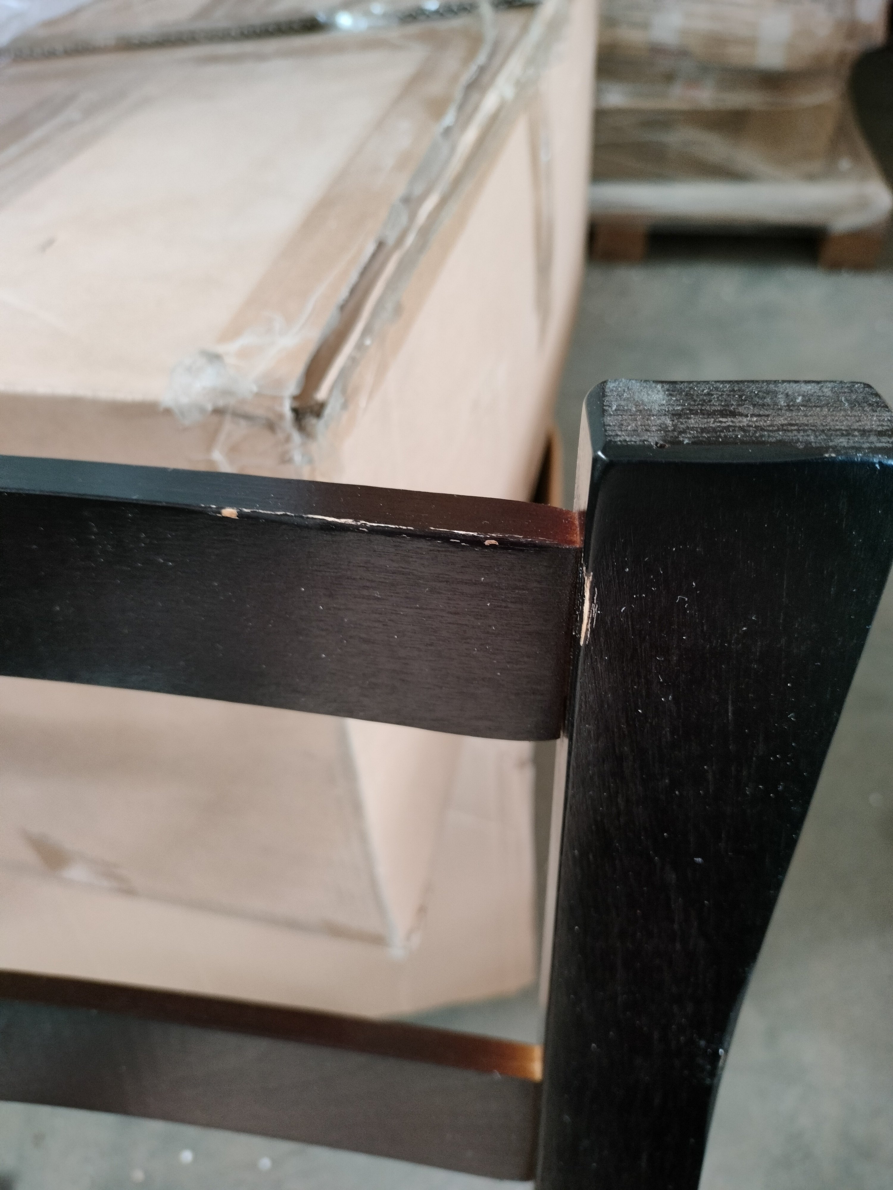 Описание дефекта: расслойка материала, вмятина на подлокотнике, облезла краска.