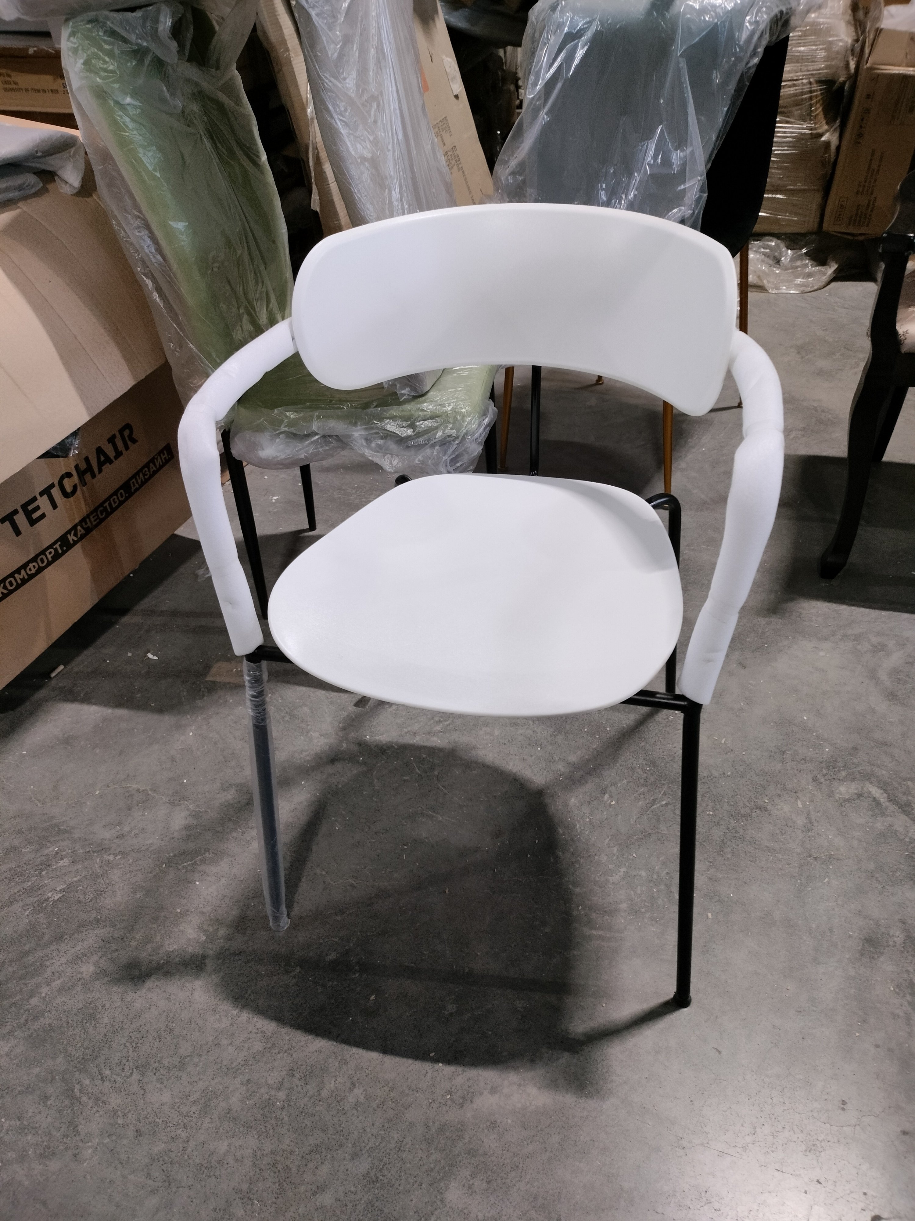 Описание товара без дефектов: Дизайн кресла VAN HALLEN из коллекции Modern разработан известным дизайнером Cai Lichao. Дизайны от Cai Lichao со временем будут становиться только более ценными. Философия дизайна кресла основана на простоте и элегантности. Облегченный металлический каркас и ножки в сочетании с пластиковым сиденьем и спинкой придают изделию особую привлекательность, оригинальность и визуальную легкость. Кресло VAN HALLEN отлично выглядит со всех сторон, оно создаст комфортную обстановку дома, будет смотреться стильно и оригинально на открытой веранде кафе. Кресло может украсить любое пространство, изменить обстановку в лучшую сторону, наполнить ваш интерьер легкостью и уютом. Пластик белого цвета и металлические ножки – прочные и долговечные материалы, не требующие специального ухода, способные выдерживать большую нагрузку. Кресло будет радовать вас своим первоначальным видом долгие годы. Кресло подойдёт для гостиной, для кухни, для спальни или для ресторана. Кресло очень простое в сборке, инструкция по сборке прилагается.