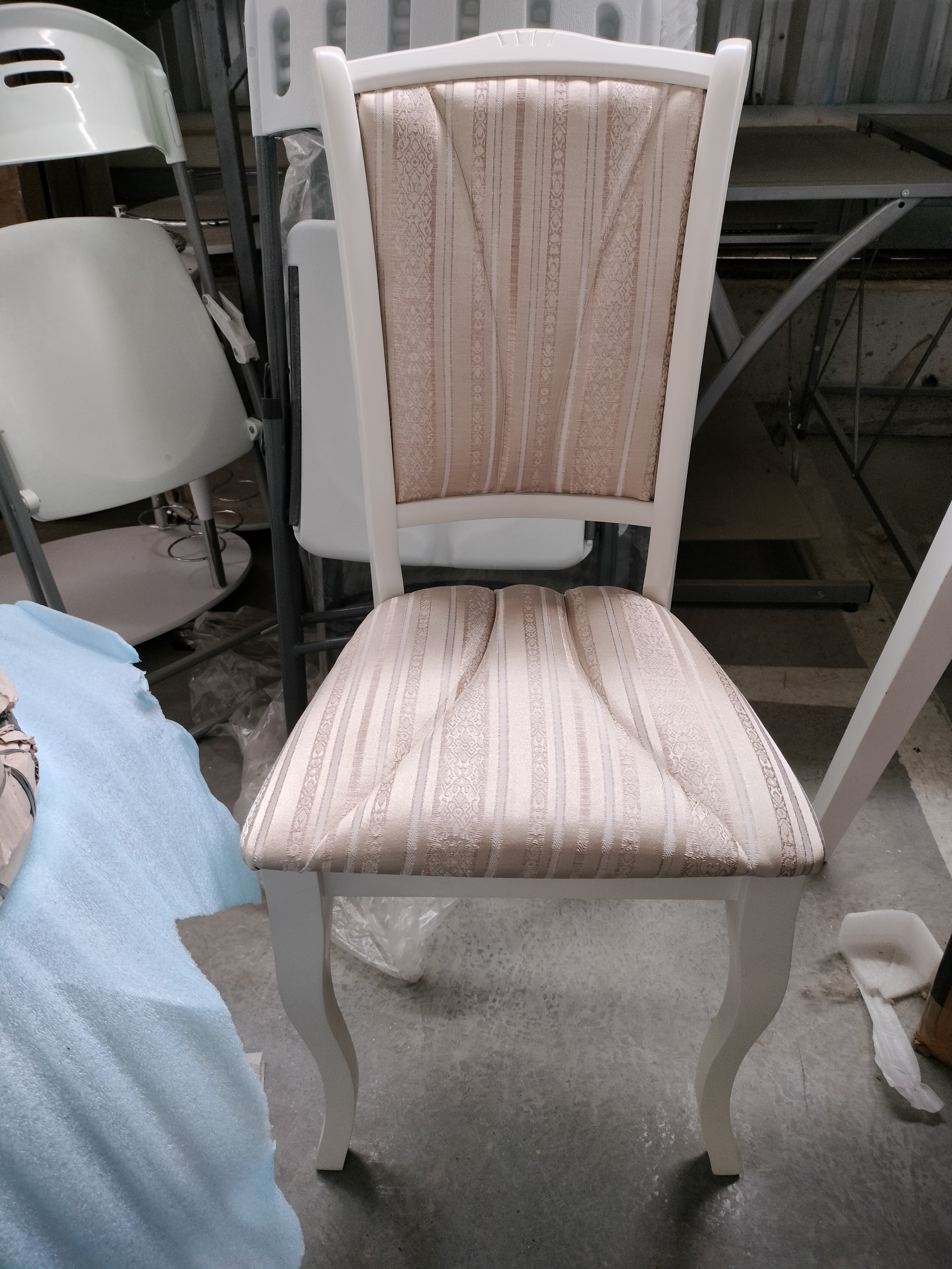 Описание товара без дефектов: Деревянный стул «Опера» (Opera) с мягким сиденьем из Миланской коллекции, выполненный в классическом стиле, добавит вашей обеденной зоне, гостиной или спальне тепла и уюта. Элегантный стул изготовлен из массива гевеи - благородной древесины, обладающей прочностью и имеющей красивый природный рисунок. Высокая спинка и мягкое сиденье модели обиты тканью, которая не меняет форму со временем и не теряет своих эксплуатационных качеств долгие годы. Оригинальная прострочка на ткани подчеркивает красоту и индивидуальность стула. Устойчивый каркас в цвете слоновая кость (Ivory white) прекрасно сочетается с бежевой обивкой с золотистым рисунком, что позволяет использовать стул в любом интерьере, как загородном доме так и в городской квартире, кафе или ресторане. Изящная модель «Опера» (Opera) добавит вашему пространству ощущение гармонии, спокойствия и великолепия, прослужит долгие годы, не требуя сложного ухода. Модель прекрасно сочетается с обеденным столом Siena. Стул поставляется в разобранном виде, необходима несложная сборка по прилагаемой инструкции.