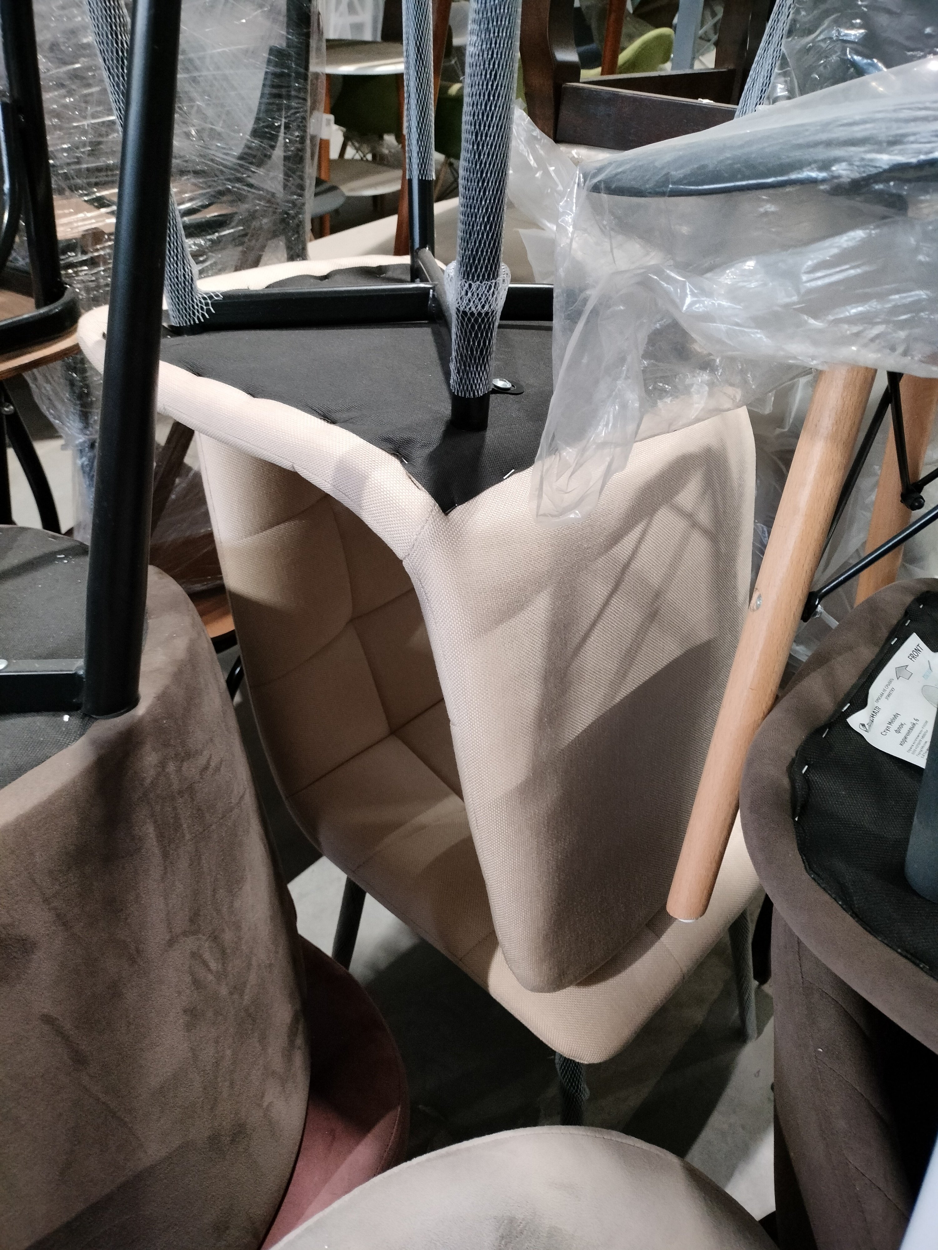 Описание товара без дефектов: Удобный и практичный дизайн стула CHILLY MAX из коллекции Modern позволит ему вписаться практически в любой интерьер. Стул можно расположить в гостиной, кухне или столовой. Он хорошо подойдет для обстановки городской квартиры, загородного дома, кафе или ресторана. Тонкие металлические ножки с порошковым покрытием, стеганая тканевая обивка и лаконичные формы стула идеально соответствуют концепции современного стильного пространства. Мягкое сиденье и спинка позволяют комфортно расположиться на длительное время. Практичная тканевая обивка бежевого цвета отличается устойчивостью к износу и долговечностью, благодаря чему стул не требует специального ухода и будет долгое время радовать вас своим первоначальным видом. Монолитный каркас изделия выполнен из многослойного гнутоклееного шпона толщиной 10 мм. Наполнение - комбинация пенополиуретанов различной плотности. Стул подойдёт для гостиной, для кухни, для спальни, для ресторана или для кафе. Стул очень прост в сборке, инструкция по сборке прилагается.