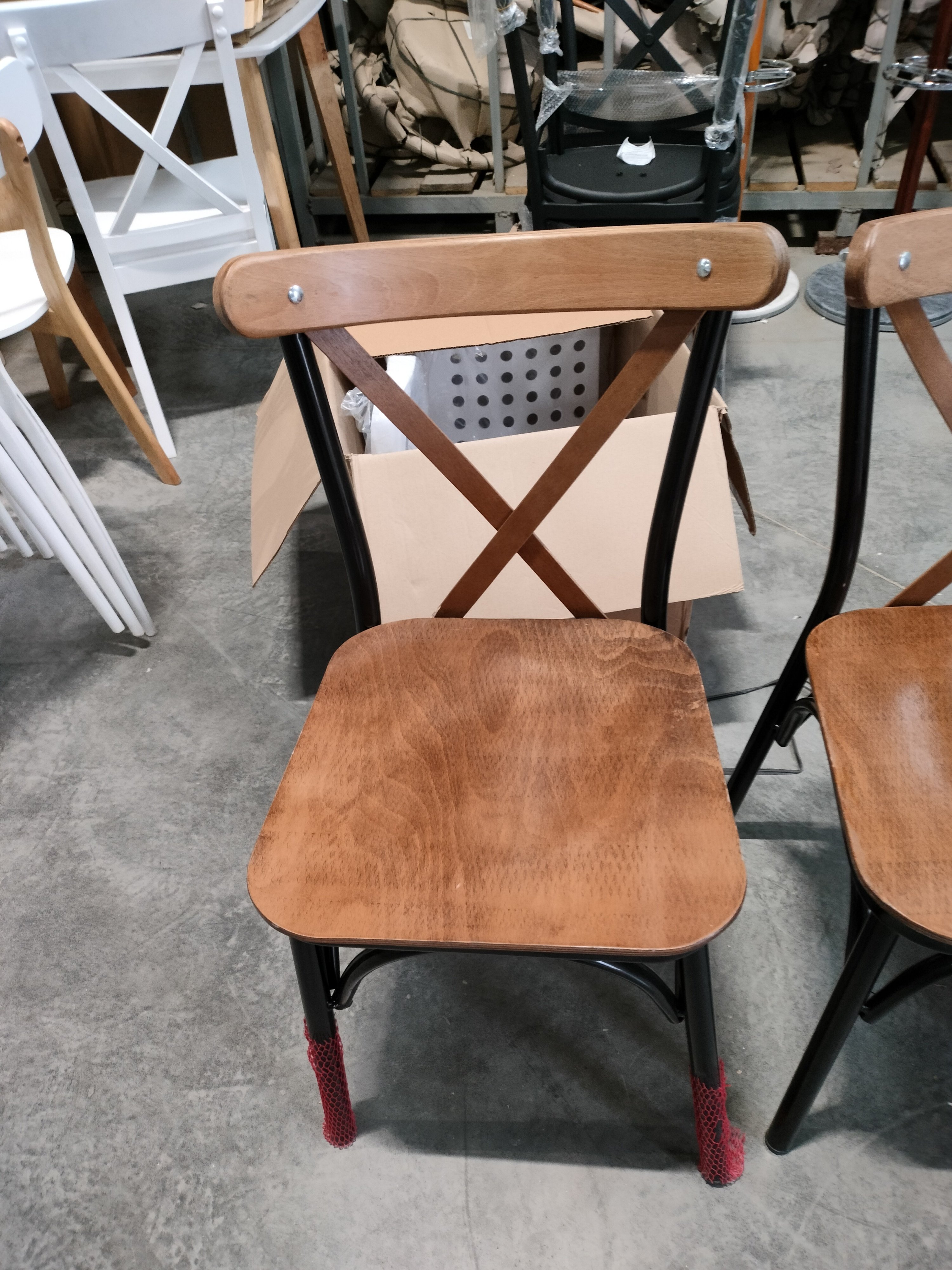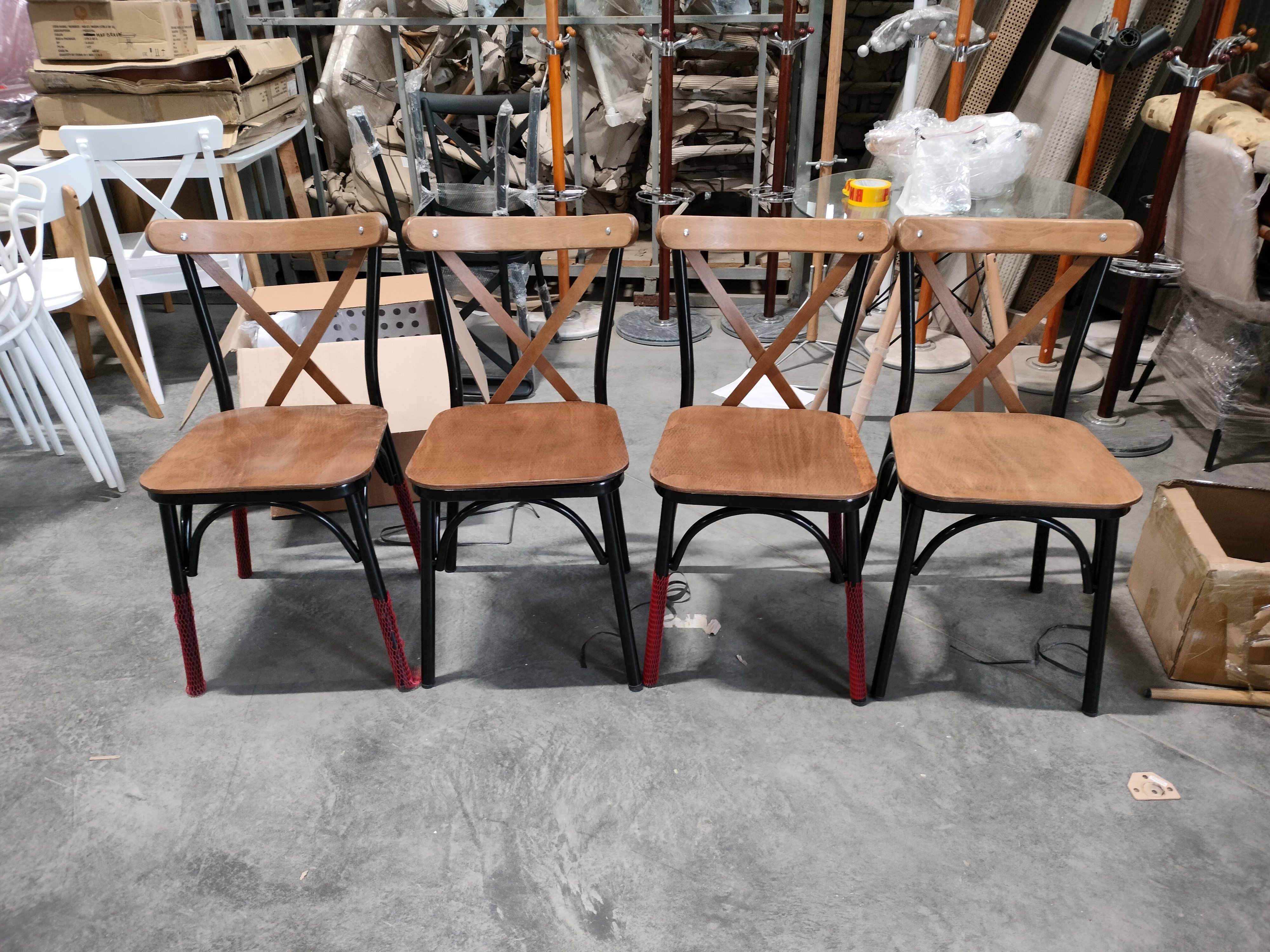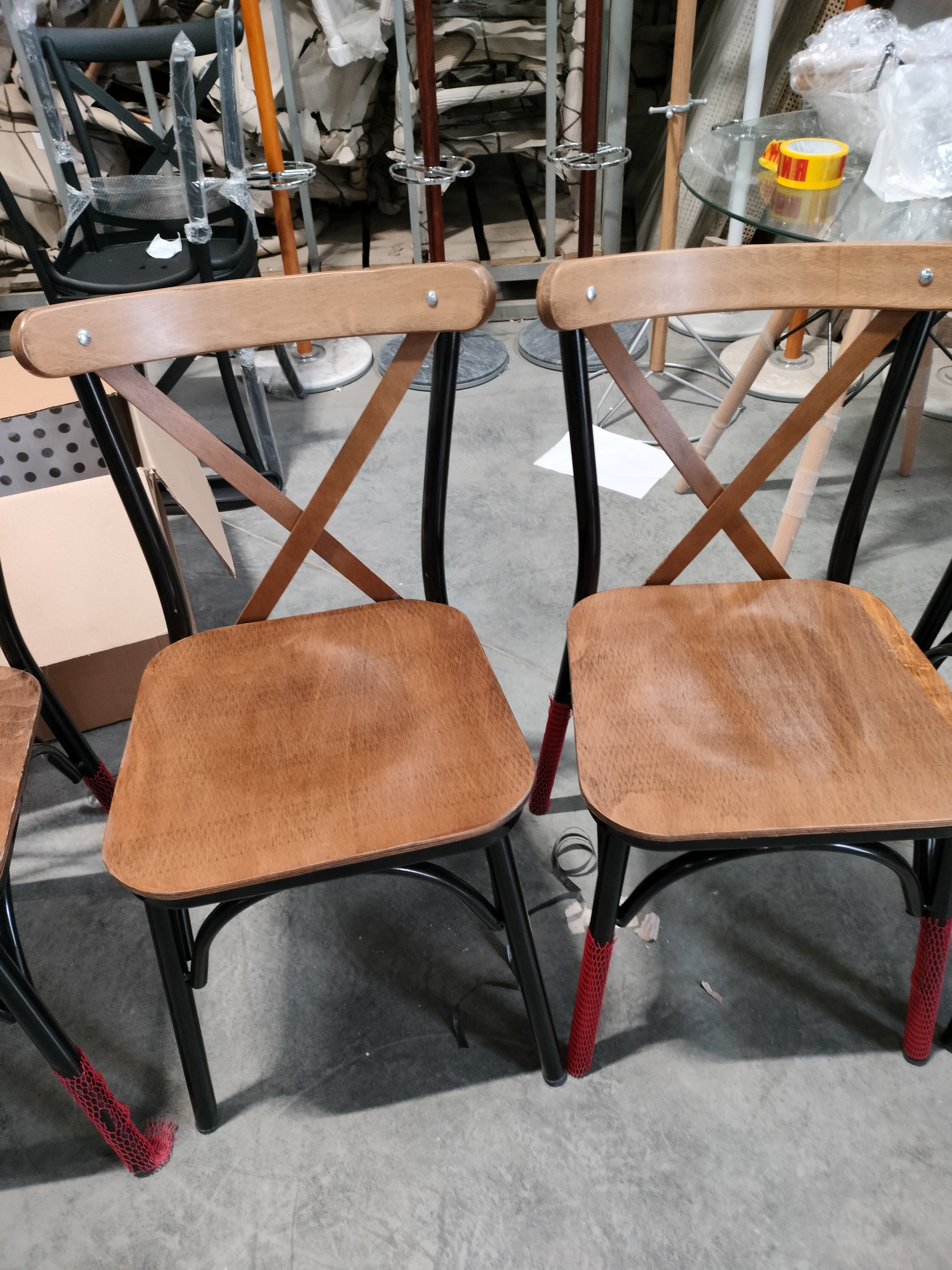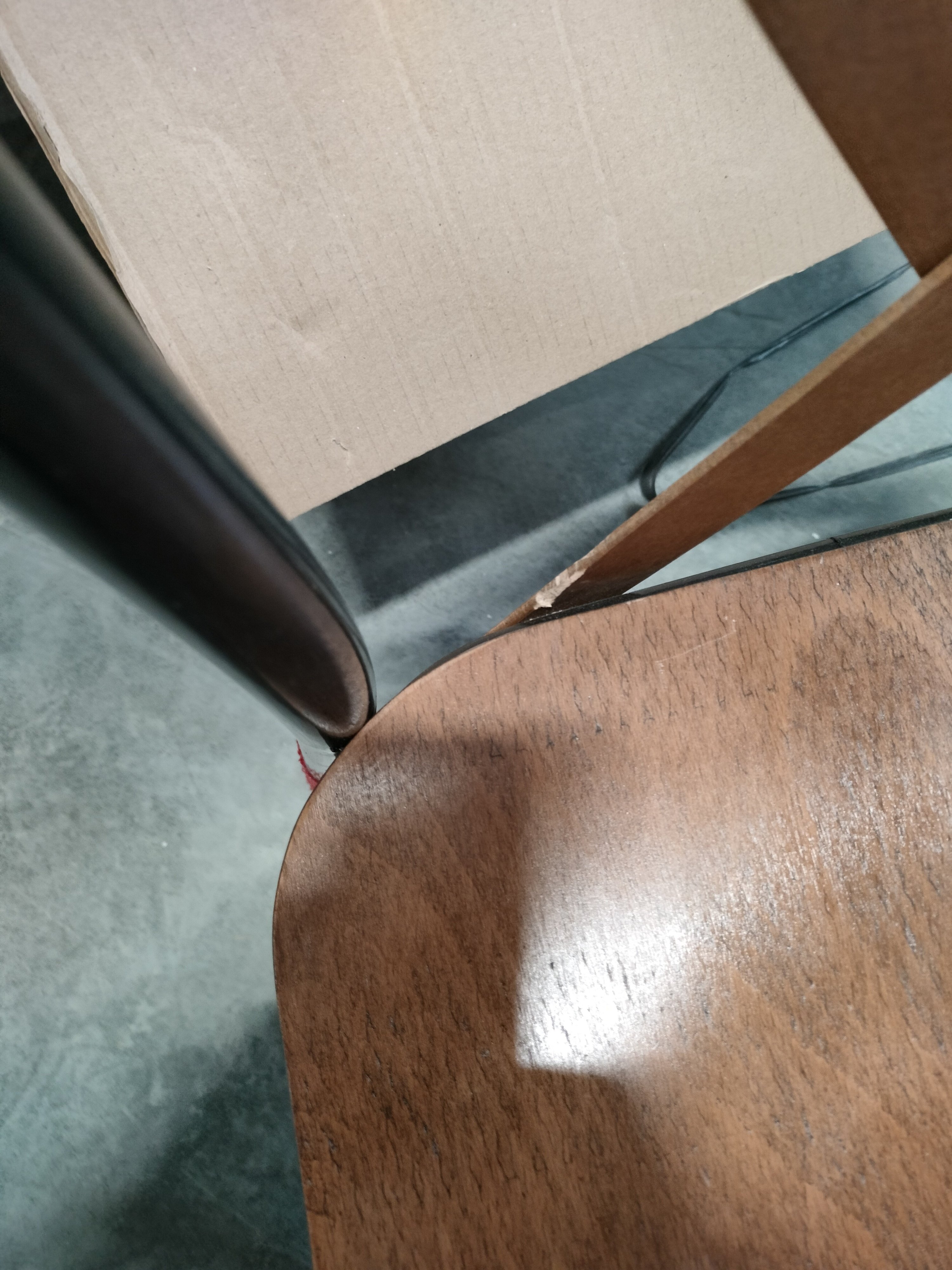 Описание дефекта: У всех четырех стульев поцарапан каркас и плохо обработаны деревянные части