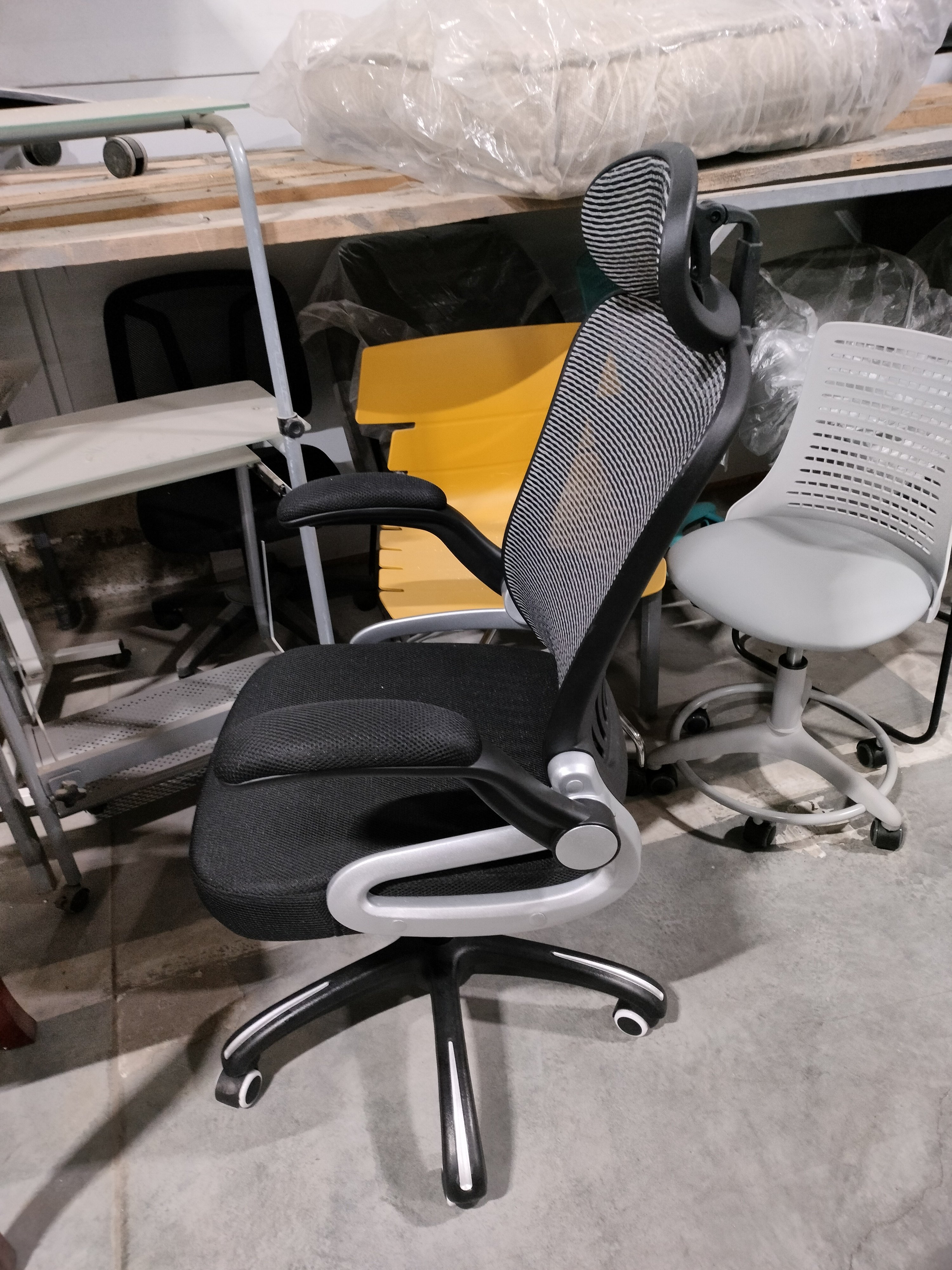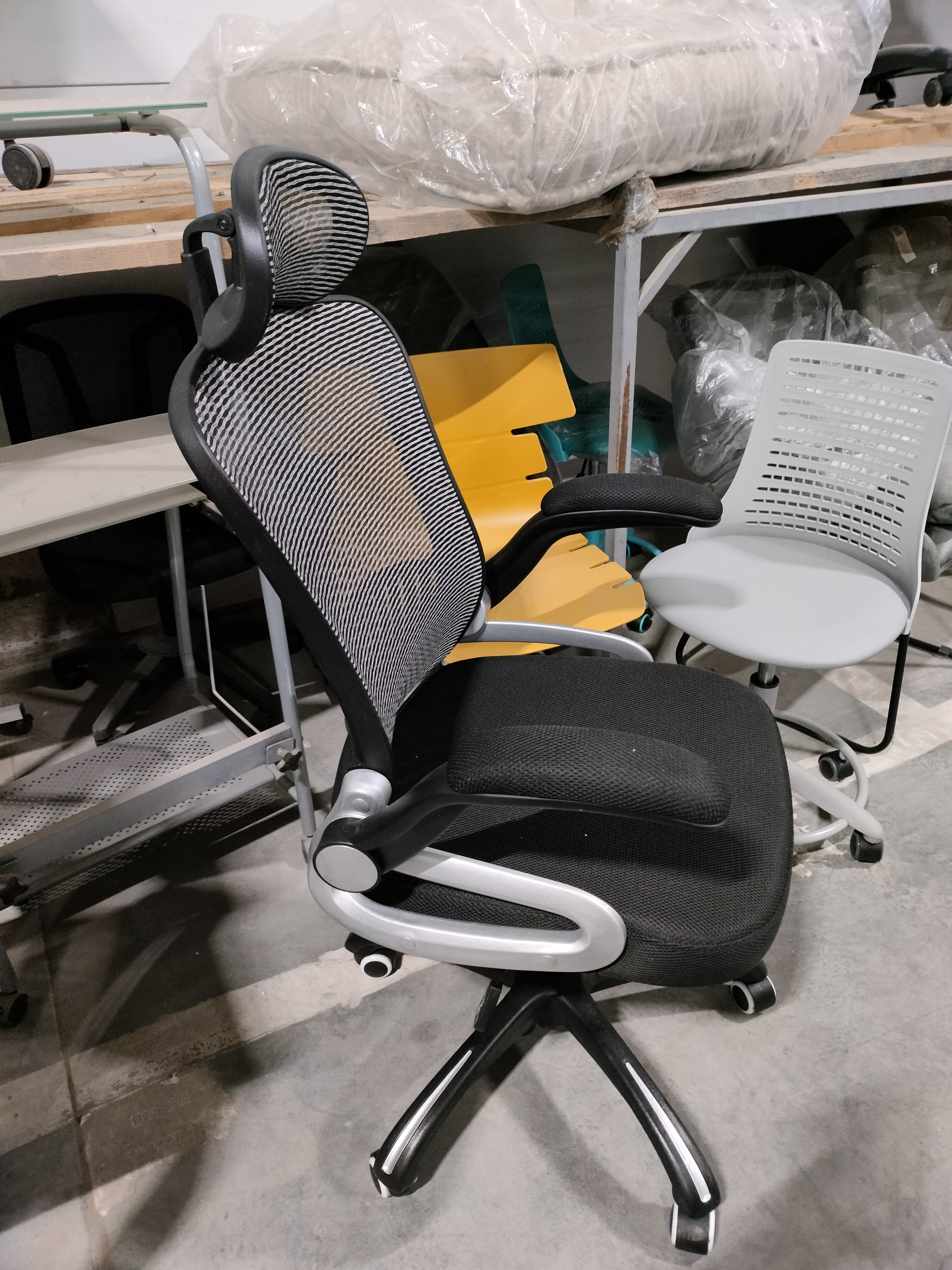 Описание товара без дефектов: Стильный дизайн кресла MESH-2 из коллекции OFFICE удачно сочетает в себе черты функциональности и элегантности. Благодаря своему презентабельному внешнему виду модель отлично впишется в интерьер рабочего кабинета или переговорной комнаты. Каркас кресла выполнен из крепкого пластика и фанеры. Такие материалы отличаются повышенной прочностью и основательностью. Эргономичная сетчатая спинка способствует равномерному распределению нагрузки на поясницу. Мягкая обивка на пластиковых откидных подлокотниках создает дополнительный комфорт при длительной работе. В качестве наполнителя в мягком сиденье кресла используется износостойкий и долговечный пенополиуретан стандартной плотности. Удобный регулируемый подголовник позволяет расслабить шейный отдел позвоночника. Полиамидная крестовина диаметром 700 мм устойчива и надежна. Кресло оснащено прорезиненными роликами, которые обеспечивают подвижность кресла и не повреждают паркет или ламинат. Модель регулируется по высоте и наклону с фиксацией в одном положении при помощи специального надежного механизма. Компьютерное кресло MESH-2 черного цвета – идеальное сочетание практичности, комфорта и привлекательности. Максимальная нагрузка модели 120 кг. Модель поставляется в разобранном виде. Необходима несложная сборка по прилагаемой инструкции.