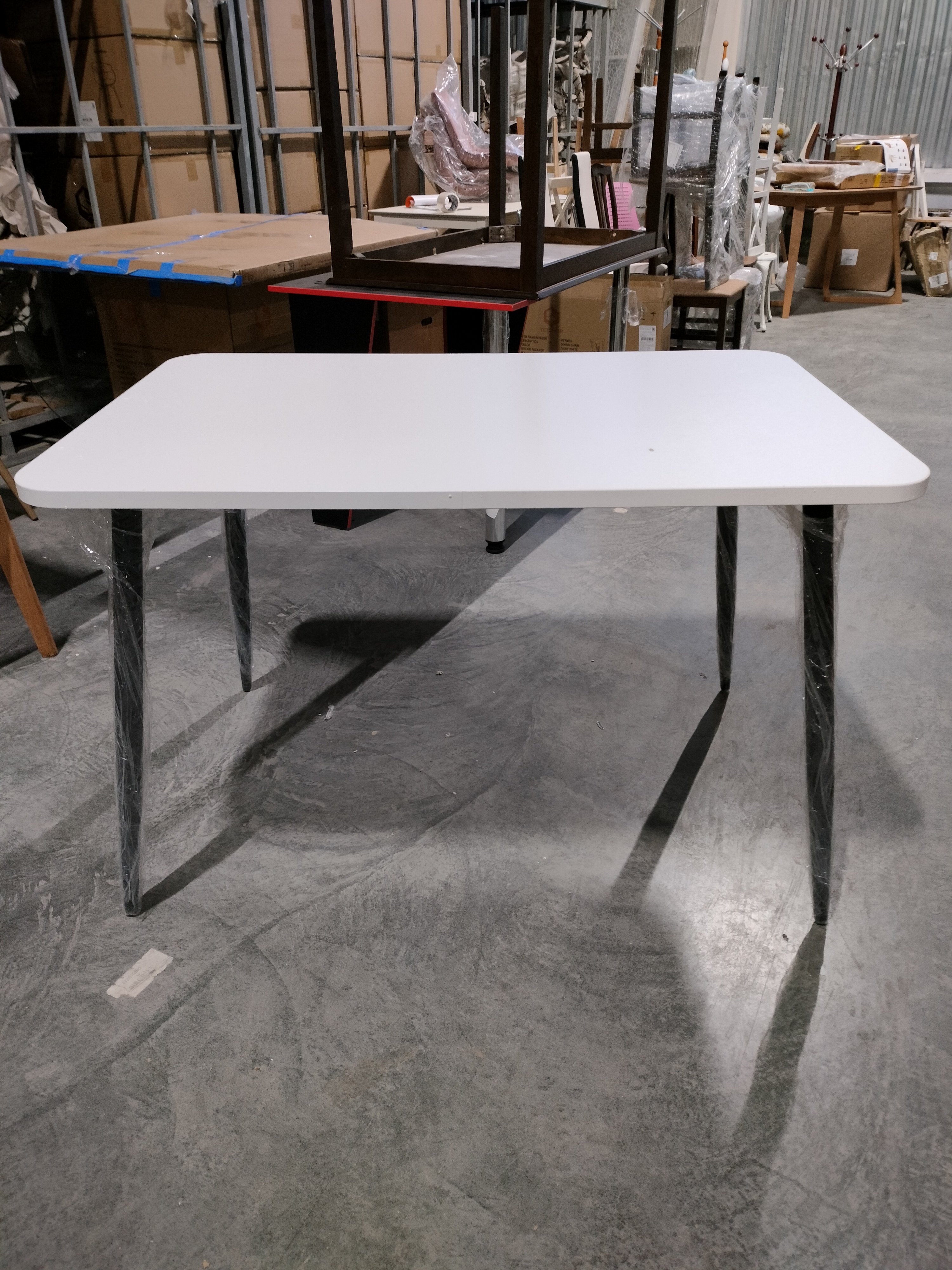 Описание товара без дефектов: Стильный и компактный стол Pluto из коллекции Modern – это удачное сочетание простоты и элегантности. Стол отлично впишется в интерьер кухни, столовой, гостиной, дачи или небольшого кафе. Cтолешница белого цвета выполнена из ЛДСП толщиной 25 мм, края оклеены прочной пластиковой кромкой толщиной 2 мм. Изящные тонкие ножки изготовлены из металла и окрашены в черный цвет. Простая в сборке и прочная конструкция прослужит вам долгие годы. Небольшие размеры стола позволят разместить его даже в небольшом пространстве. Стол прост в сборке, инструкция по сборке прилагается.