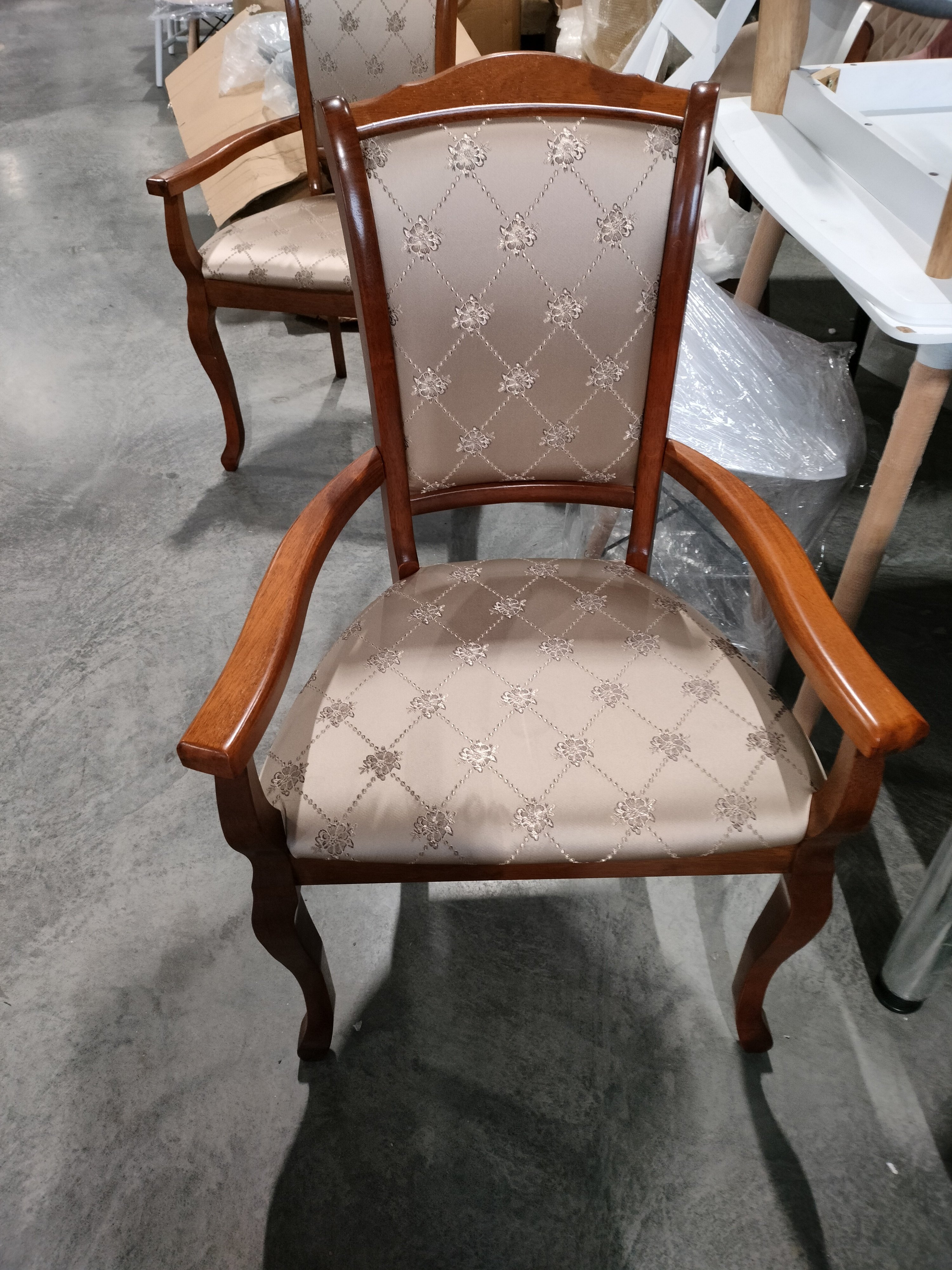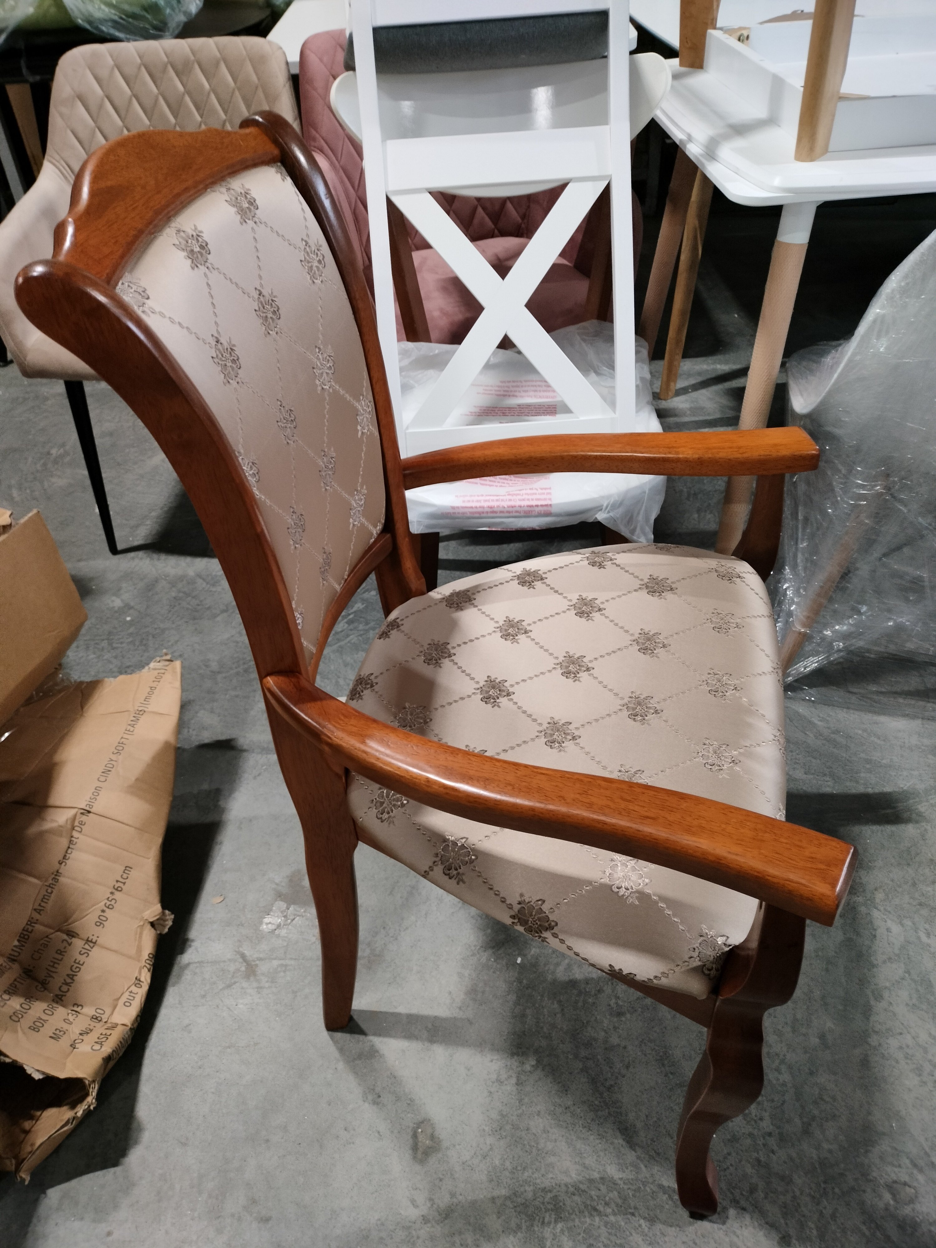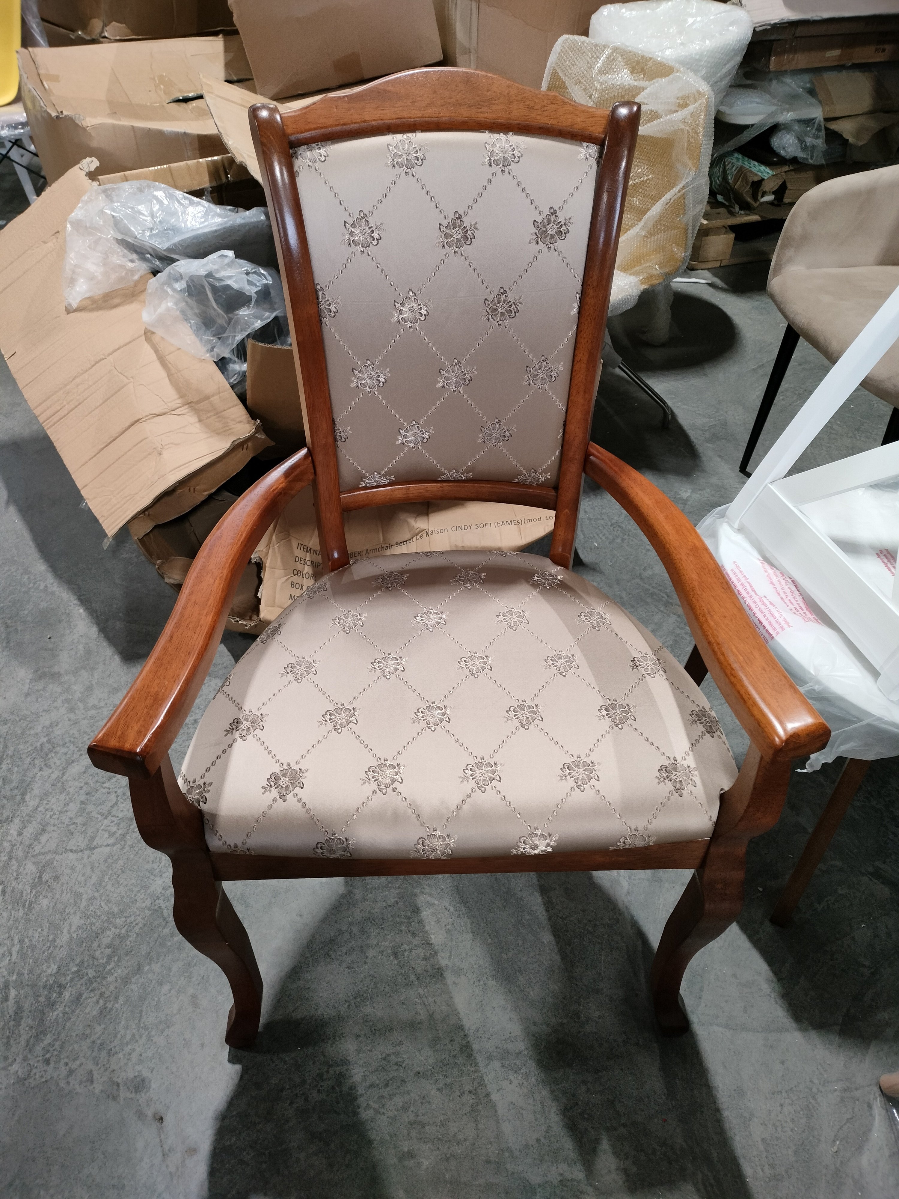 Описание товара без дефектов: Элегантное классическое кресло «Женева»( Geneva) из Миланской коллекции привнесет в интерьер вашего дома нотки роскоши и уникальности. Модель прекрасно подойдет для кухни, столовой, гостиной, кабинета или спальни. Каркас кресла выполнен из прочной древесины - массива гевеи, благодаря чему модель надежна, устойчива и долговечна. Мягкая спинка кресла имеет слегка изогнутую форму, что позволит отдохнуть и с комфортом провести время после тяжелого дня. Изящные ножки и удобные подлокотники не перегружают дизайн модели, обладают прочностью и основательностью. Мягкое сиденье, обитое тканью,со временем не меняет свою форму и не требует сложной чистки. Каркас цвета коричневый в рыжину (MAF Brown) в сочетании с обивкой «золотистые цветы» создадут атмосферу уюта и богатства в загородном доме или в городской квартире. Эксклюзивная модель «Женева»( Geneva) выделится среди других предметов интерьера своим неповторимым дизайном, надежностью и сроком службы, будет восхищать своего владельца на протяжении долгих лет. Стул очень прост в сборке, инструкция по сборке прилагается.