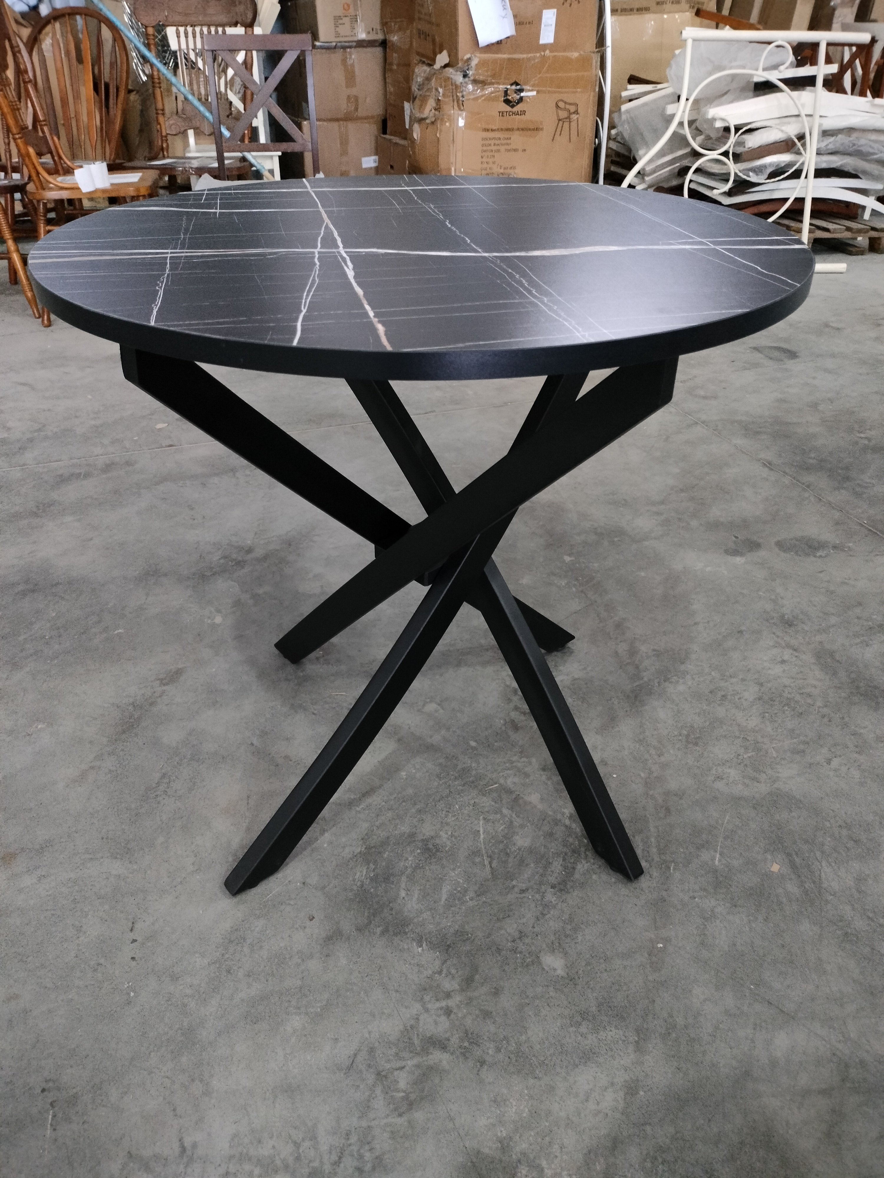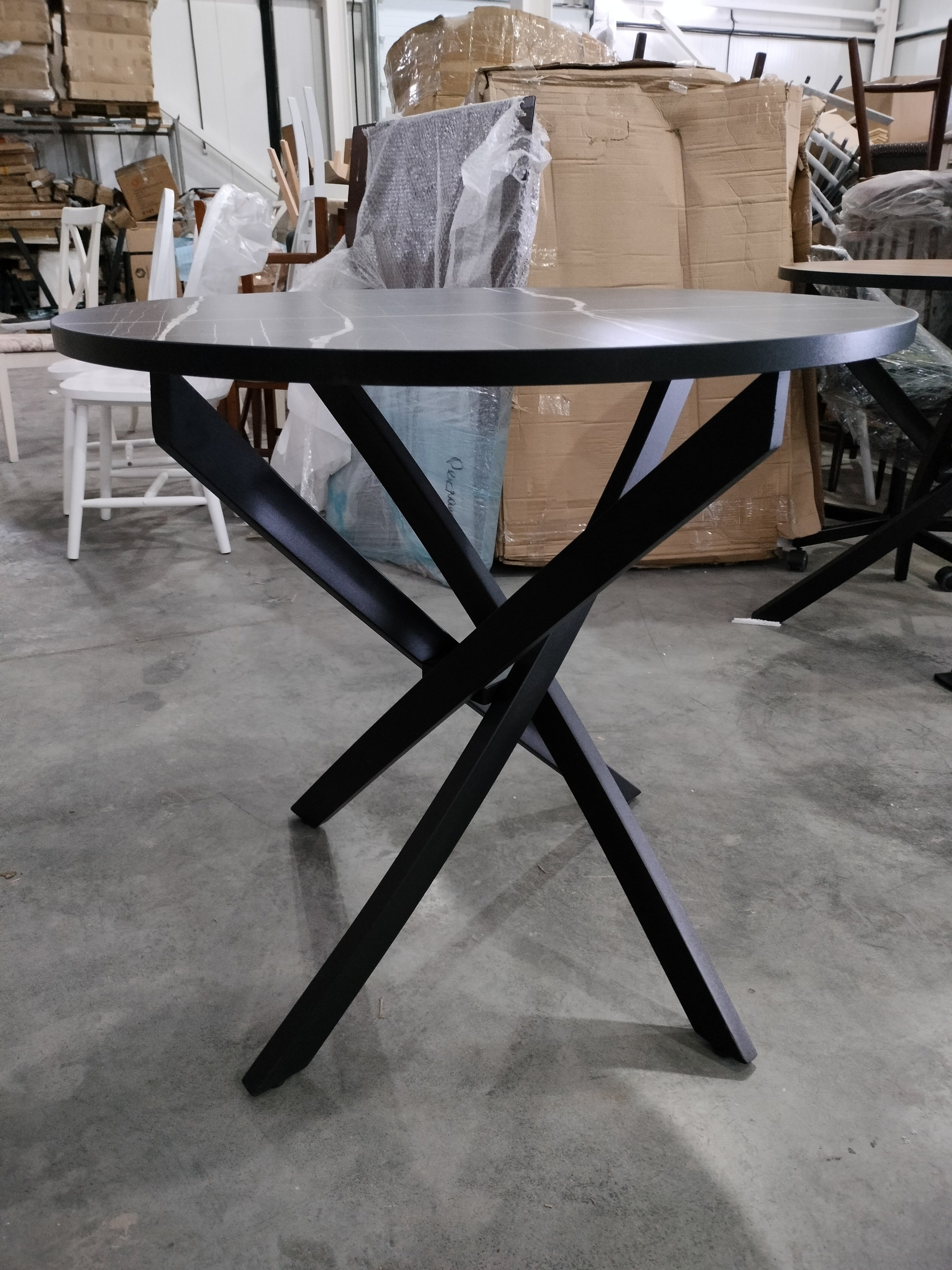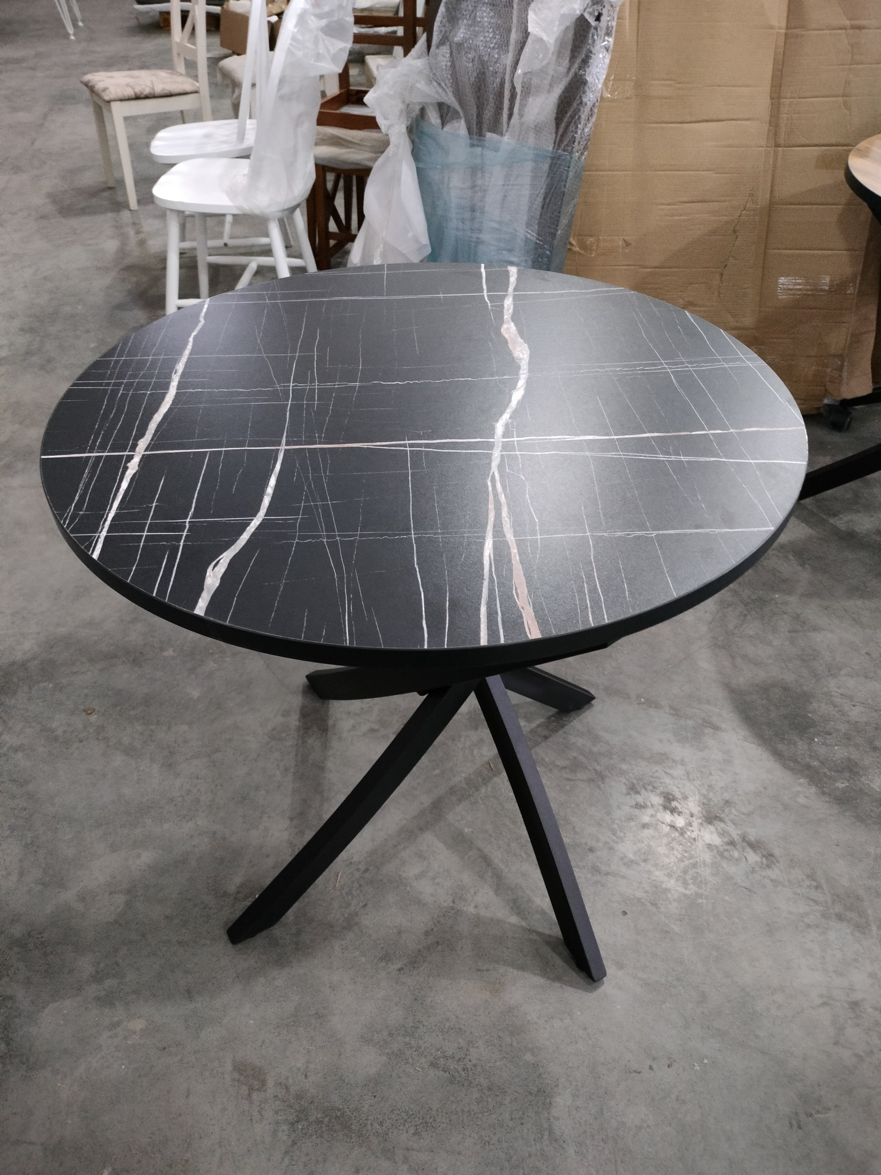 Описание товара без дефектов: Круглый обеденный стол MANZANA из коллекции Modern отлично впишется в современный интерьер городской квартиры или загородного дома. Стол будет отлично смотреться в гостиной, кухне или столовой. Столешница цвета мрамор выполнен из ЛДСП толщиной 22 мм на лицевую поверхность которых нанесен защитный слой HPL толщиной 1 мм. HPL имеет защитное покрытие оверлей высокой степени истирания, которое повышает устойчивость поверхностей к повреждениям. Кромка столешницы оклеена высокопрочной пленкой из ПВХ толщиной 2 мм. Стильные черные изогнутые металлические ножки окрашены порошковой краской. Устойчивые ножки стола регулируются по высоте для устранения неровности пола. За столом могут разместиться от 2 до 6 человек.. Простая в сборке и прочная конструкция прослужит вам долгие годы. Стол упакован в транспортировочный короб из ЛДСП + гофрокороб. Модель проста в сборке, инструкция прилагается.