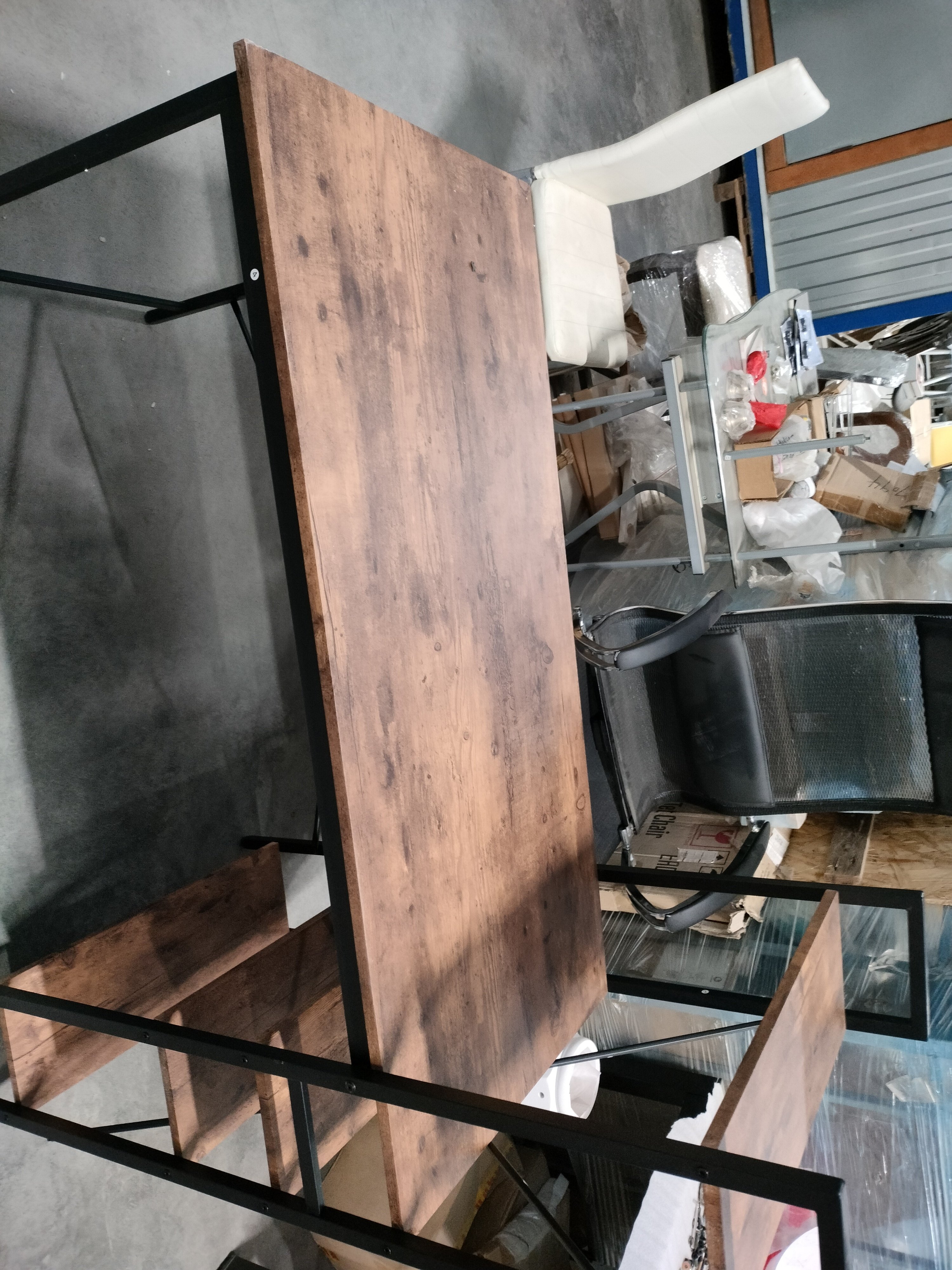 Описание товара без дефектов: Уникальный компьютерный стол WD-07 – оригинальное и удачное решение для вашего дома или офиса. Функциональная модель будет хорошо смотреться в рабочем кабинете с любым дизайном. Прямоугольная столешница, изготовленная из МДФ толщиной 15 мм и пленки ПВХ, не царапается. Она экологична, влагонепроницаема, устойчива к негативным воздействиям жидкостей и тепла. Надежный каркас выполнен из металла с порошковым покрытием, который обладает износостойкостью и прочностью. Основательные ножки с регулировкой отлично компенсируют неровности пола, что придает модели устойчивость. Компьютерный стол имеет четыре дополнительных полки из МДФ, которые можно использовать не только для бумаг, документов и оргтехники, но и для интересных предметов интерьера. Оригинальное сочетание коричневой столешницы и черного каркаса смотрится стильно и изысканно. Модель идеально впишется в любой современный интерьер, станет центральным элементом в помещении и прослужит вам долгие годы. Стол очень прост в сборке, инструкция по сборке прилагается.
