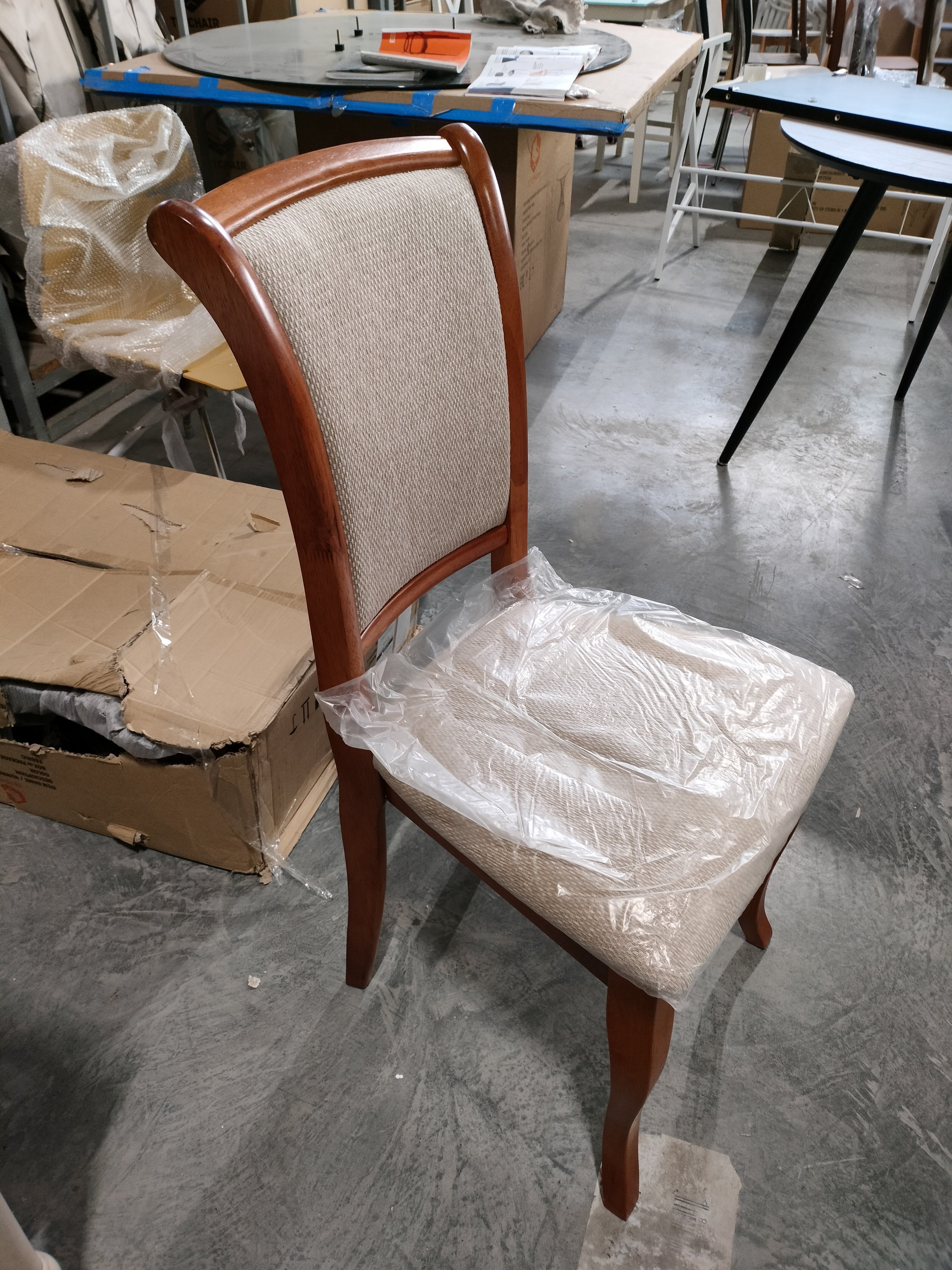 Описание товара без дефектов: Материал: каркас - массив гевеи, обивка - ткань. Размеры: 45х52х96 см