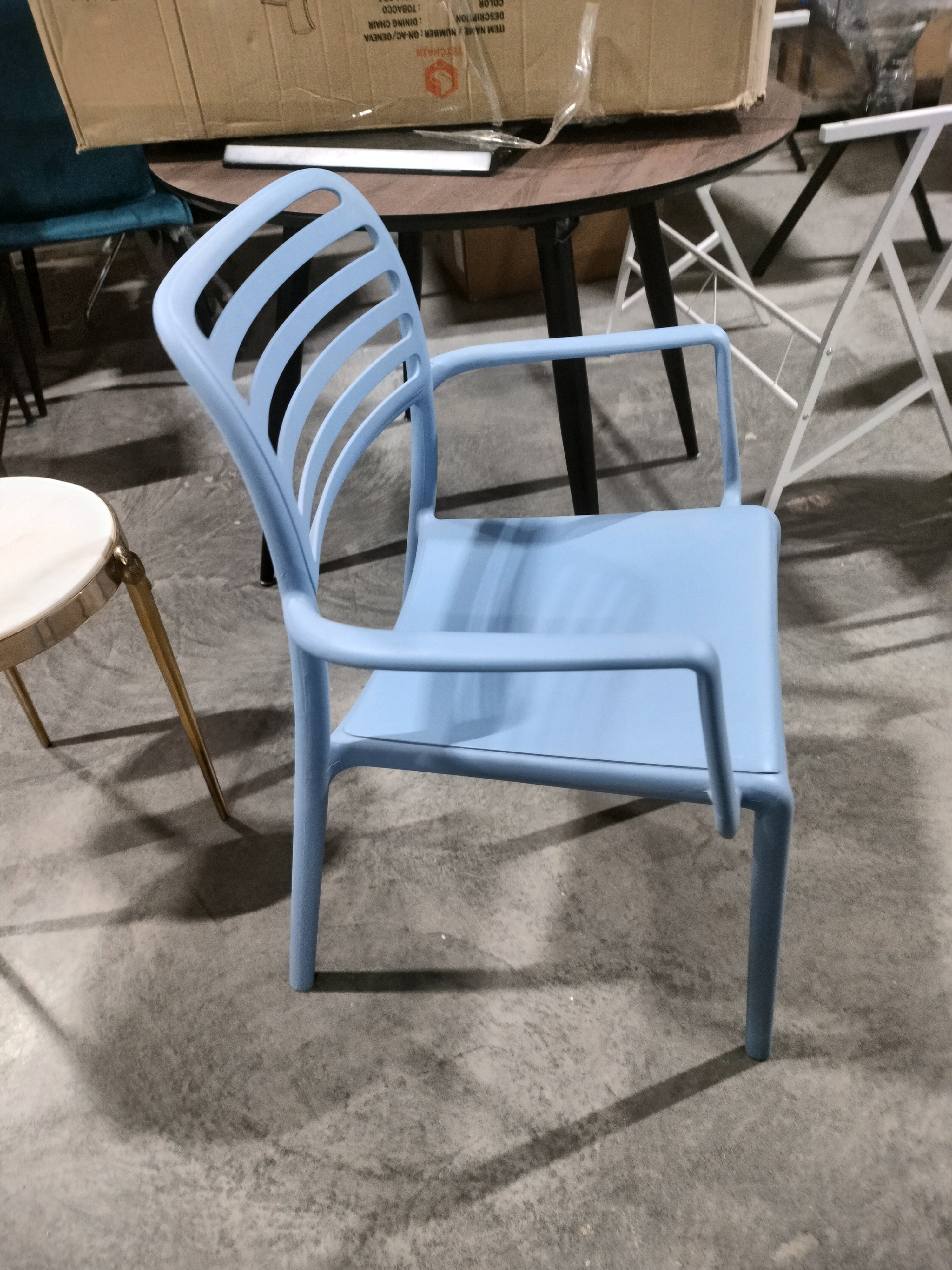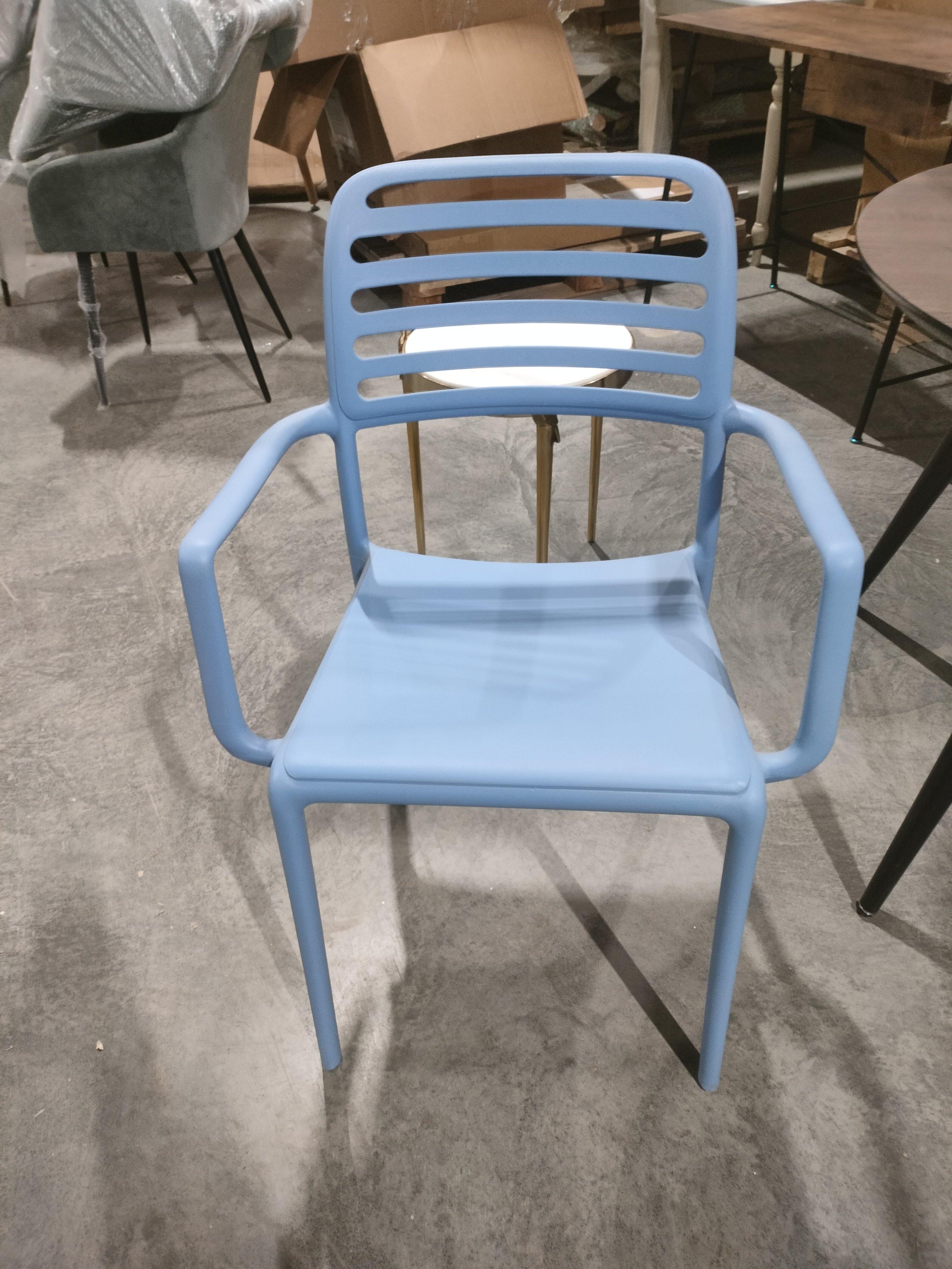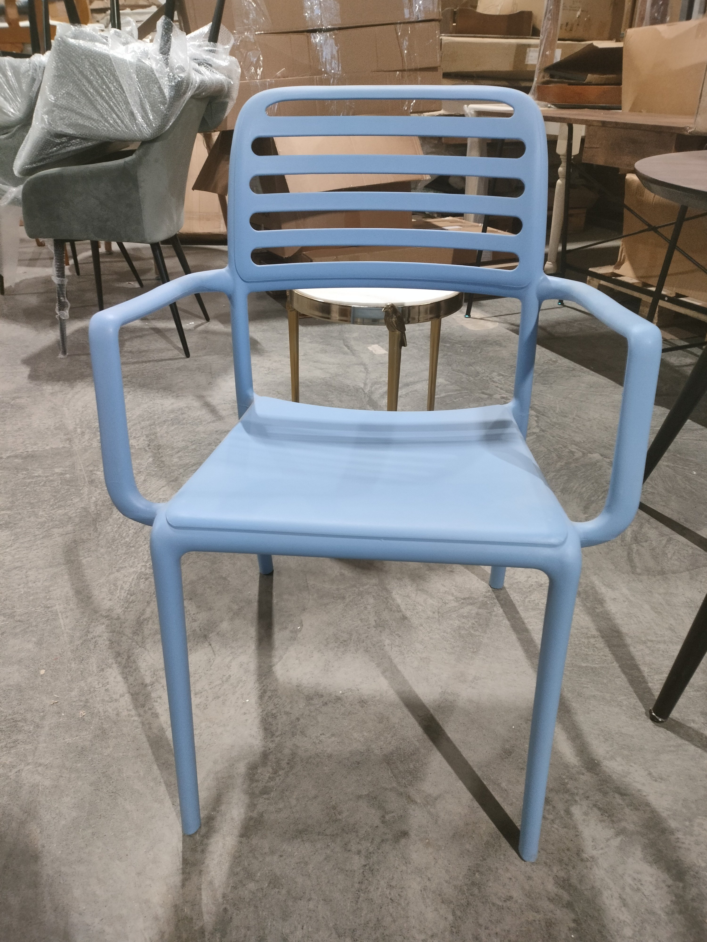 Описание товара без дефектов: Элегантный стул VALUTTO из коллекции MODERN гармонично впишется в интерьер загородного дома, кафе или ресторана, веранды или сада, столовой или кухни. Оригинальная модель станет прекрасным украшением любого помещения и привлечет внимание всех ваших гостей. Стул выполнен из высококачественного пластика. Такой материал практичен, безопасен, долговечен, не вызывает аллергии, не впитывает запах, не притягивает грязь и пыль, не деформируется под воздействием влаги, прост в уходе и чистке. Небольшой вес позволяет легко перемещать стул из одного помещения в другое. Стулья легко штабелируются и не занимают много место в сложенном виде. Слегка выгнутая спинка, удобные подлокотники, крепкий каркас, устойчивые ножки и широкое сиденье помогут принять расслабленную позу, насладиться отдыхом на свежем воздухе или внутри помещения после рабочего дня. Оригинальный стул бледно-голубого цвета (Pale blue) выглядит стильно и привлекательно. Практичная модель VALUTTO удивит вас своей долговечностью, износостойкостью и эксплуатационными свойствами, придаст дому или саду неповторимость и элегантность, будет отлично сочетаться с другими предметами интерьера. Стул поставляется в собранном виде.