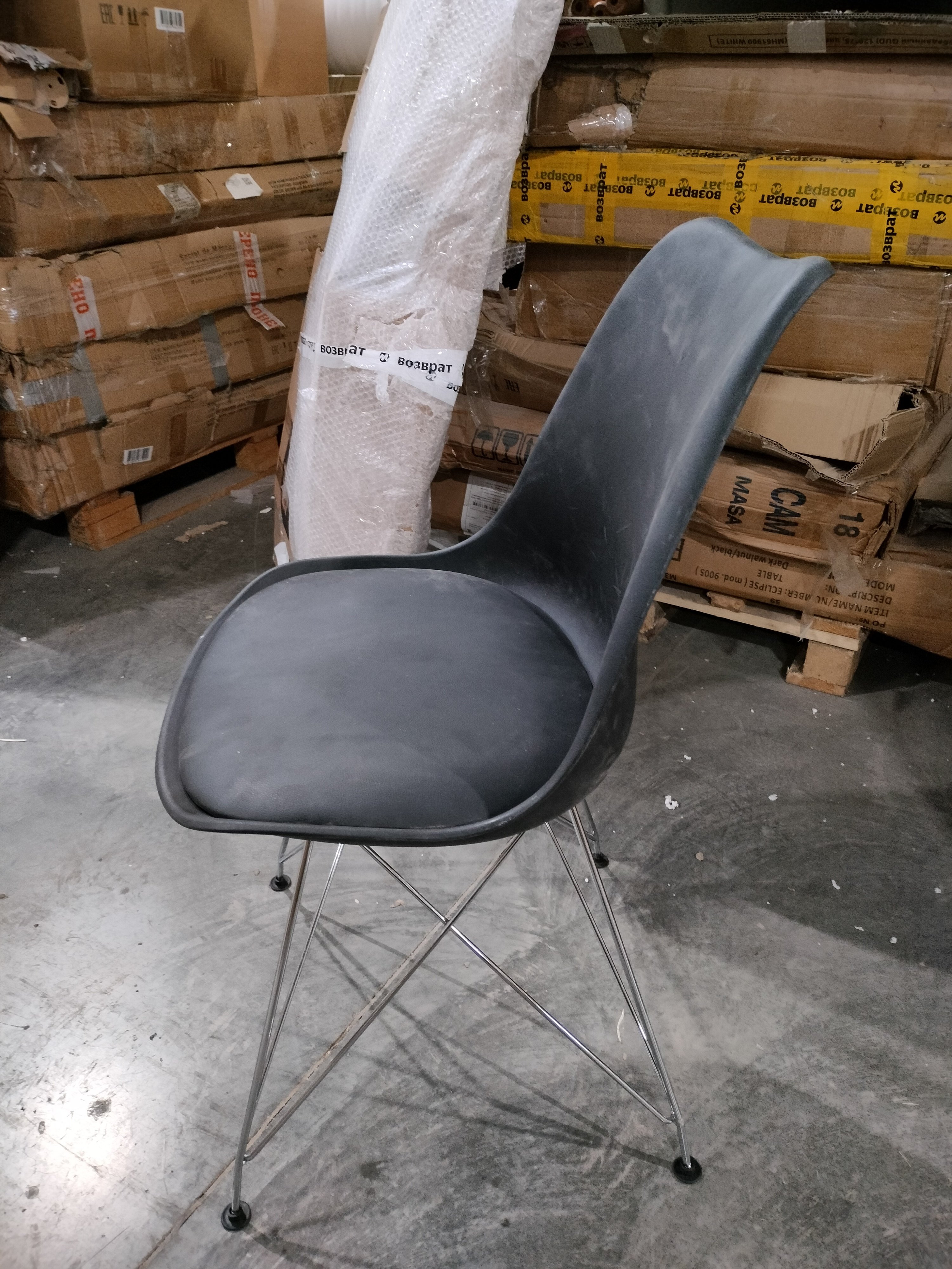 Описание товара без дефектов: Дизайн стула TULIP IRON CHAIR из коллекции Modern вдохновлен формой известного стула Tulip, спроектированного американским архитектором Ээро Саариненом в 50-х годах двадцатого века. Стул подкупает своей универсальностью и комфортной посадкой, благодаря которым варианты его расположения в интерьере безграничны. Этот удобный и привлекательный стул отлично впишется в интерьер городской квартиры, загородной веранды, кафе или ресторана. Оригинальные металлические ножки, монолитная конструкция сиденья и спинки украсят любое пространство, изменят обстановку в лучшую сторону, наполнят интерьер легкостью и уютом. Удобное сиденье с мягкой накладкой из искусственной кожи позволяет комфортно сидеть в течение длительного времени. Металлические ножки делают модель устойчивой и надежной. Стул выполнен из прочного пластика чёрного цвета. Модель практична, надежна, способна выдерживать большие нагрузки, устойчива к воздействию влаги, температурным перепадам и проста в уходе.