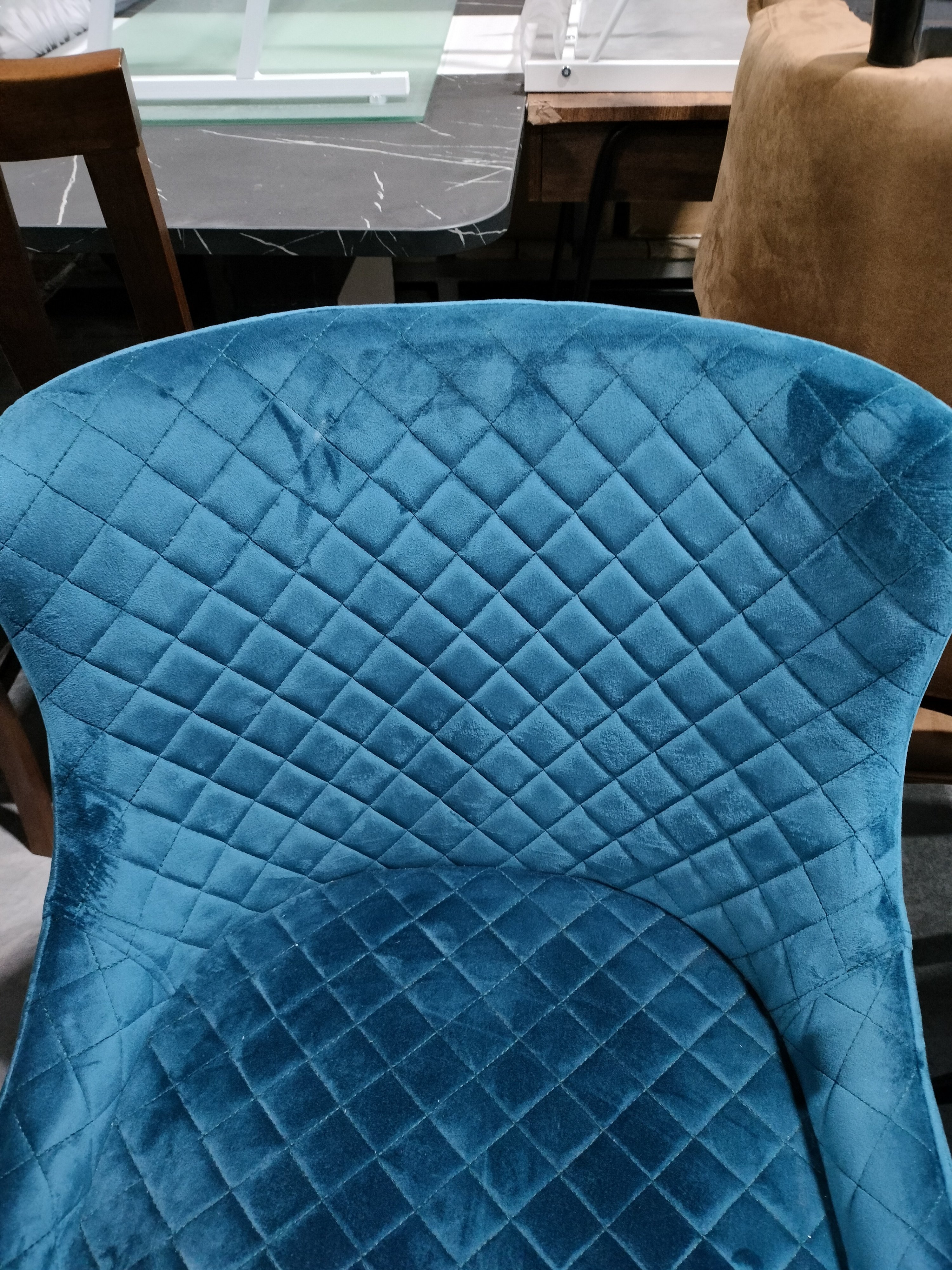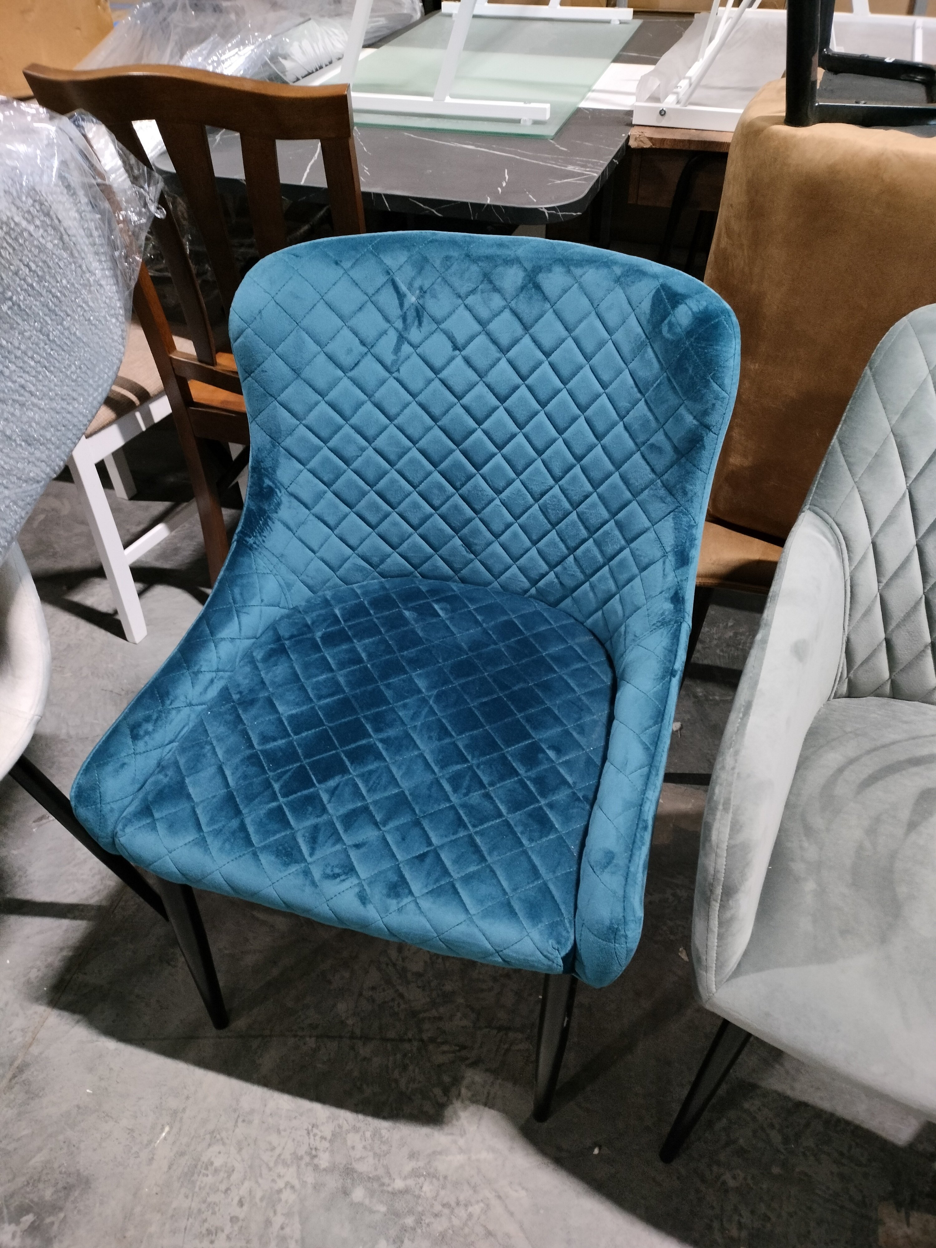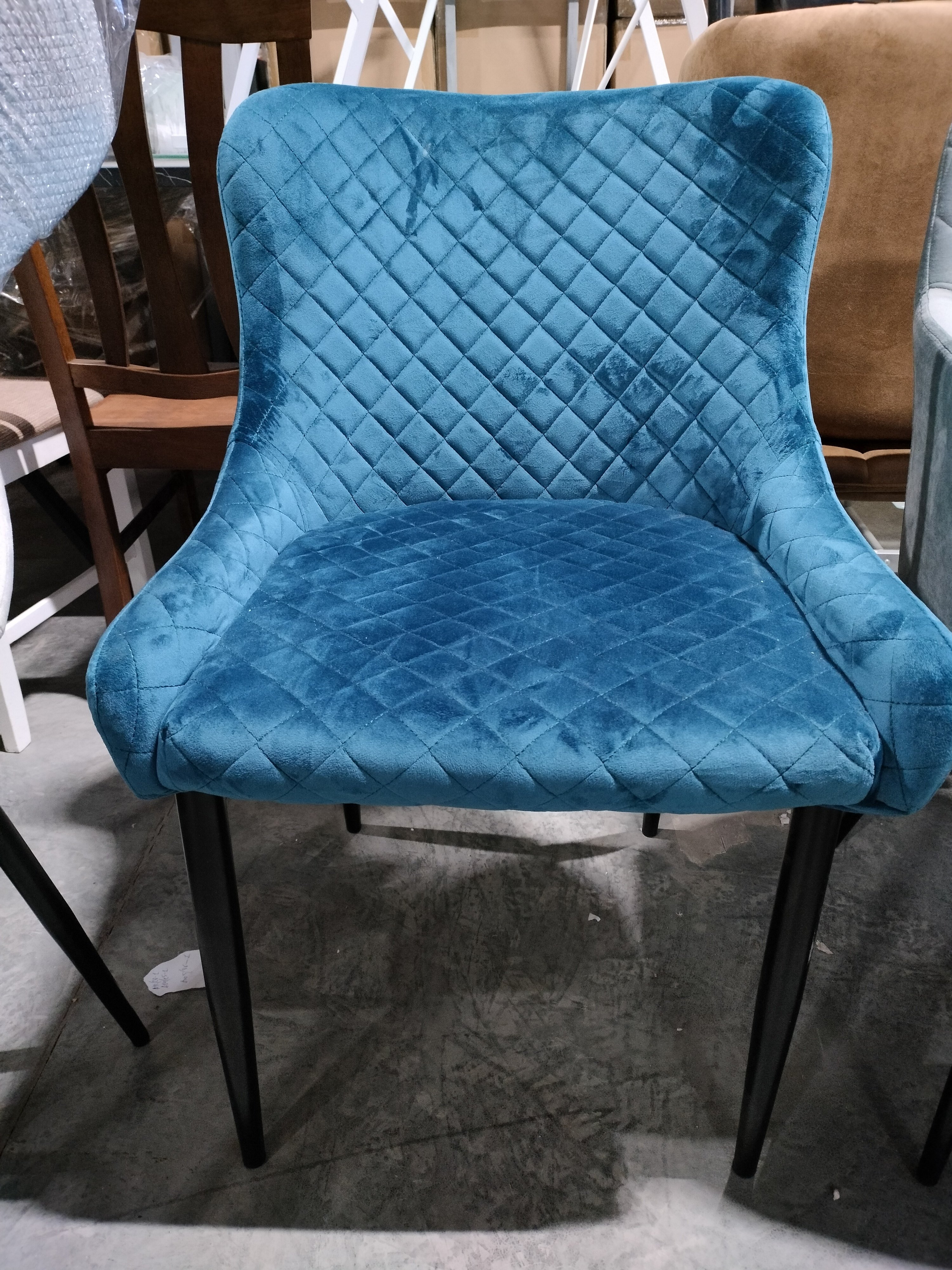 Описание товара без дефектов: Уникальный силуэт стула ELI из коллекции Modern – это удачное сочетание простоты и элегантности. Он хорошо впишется в обстановку гостиной, кухни или столовой. Простая форма, стеганая обивка благородного цвета и изящные металлические ножки придают стулу особую красоту и привлекательность. Удобные и обволакивающие формы спинки и сиденья обеспечат комфорт на протяжении длительного времени. Прочные металлические ножки делают модель крепкой и основательной. Тканевая обивка выглядит дорого, стильно, элегантно. Ее бархатистая и приятная на ощупь поверхность притягивает к себе мягкостью и изысканной красотой. Ткань обивки синего цвета обладает повышенной износостойкостью, способна на долгие годы сохранить свой первоначальный цвет, не протираясь и не выцветая.