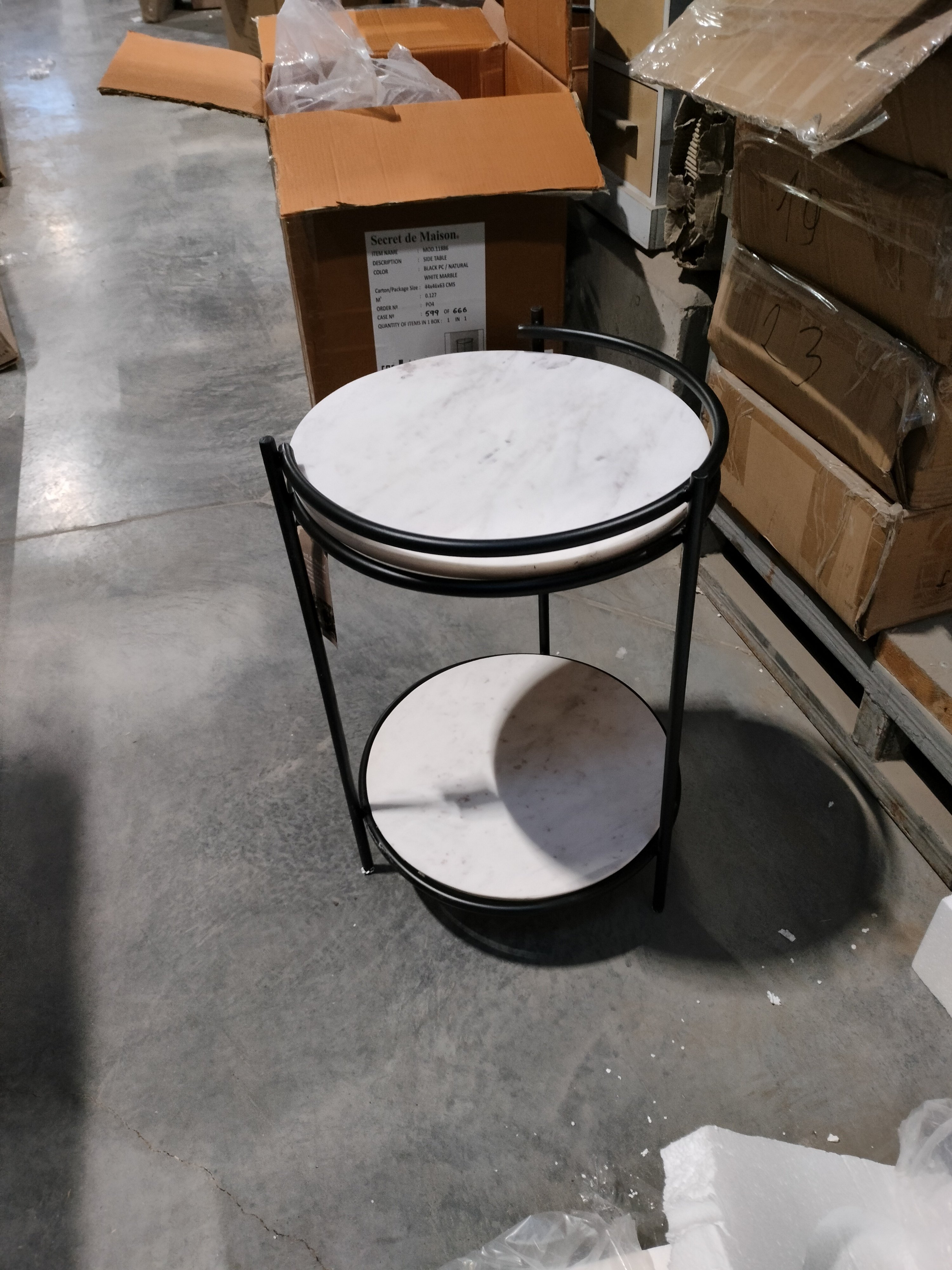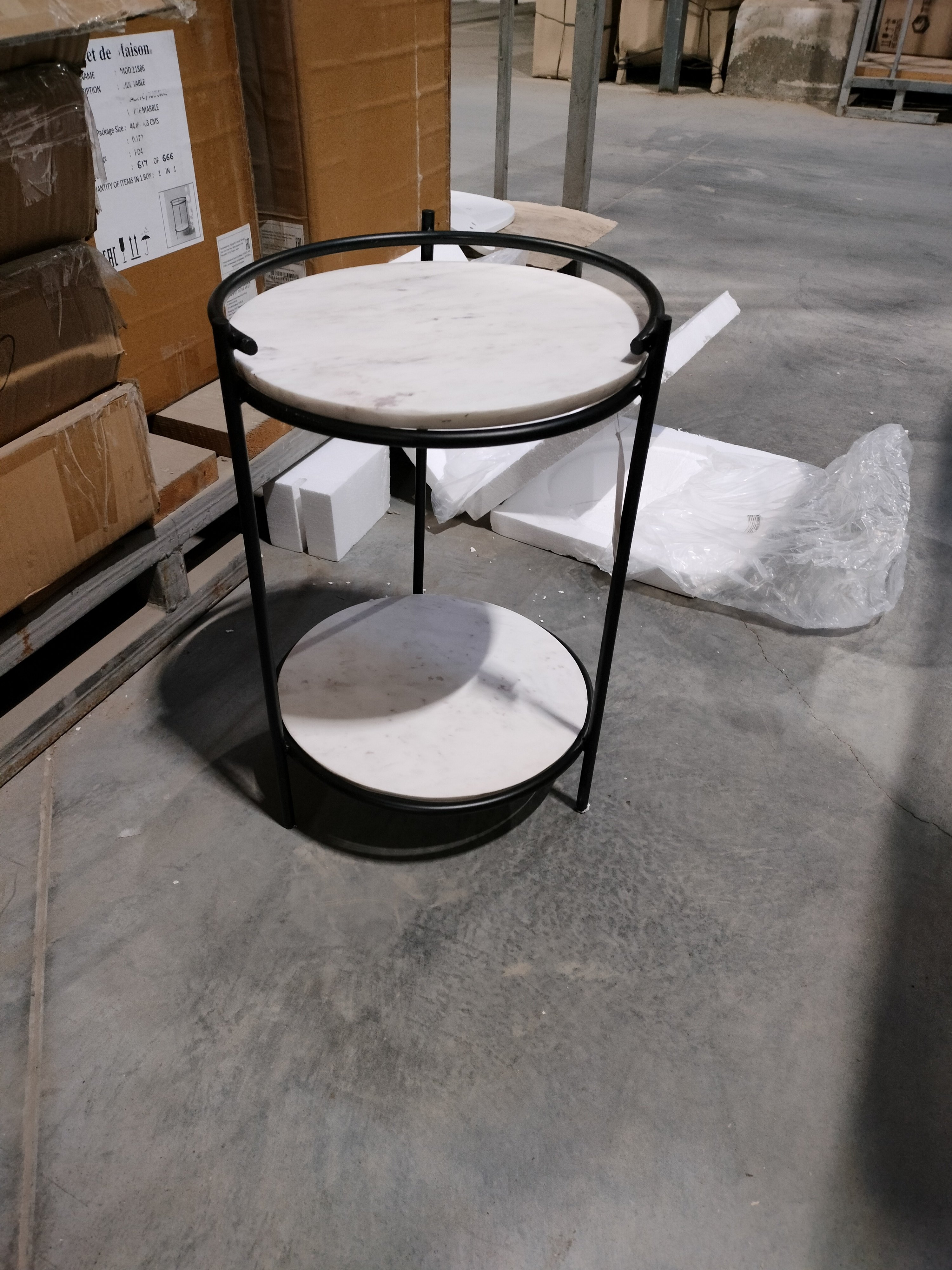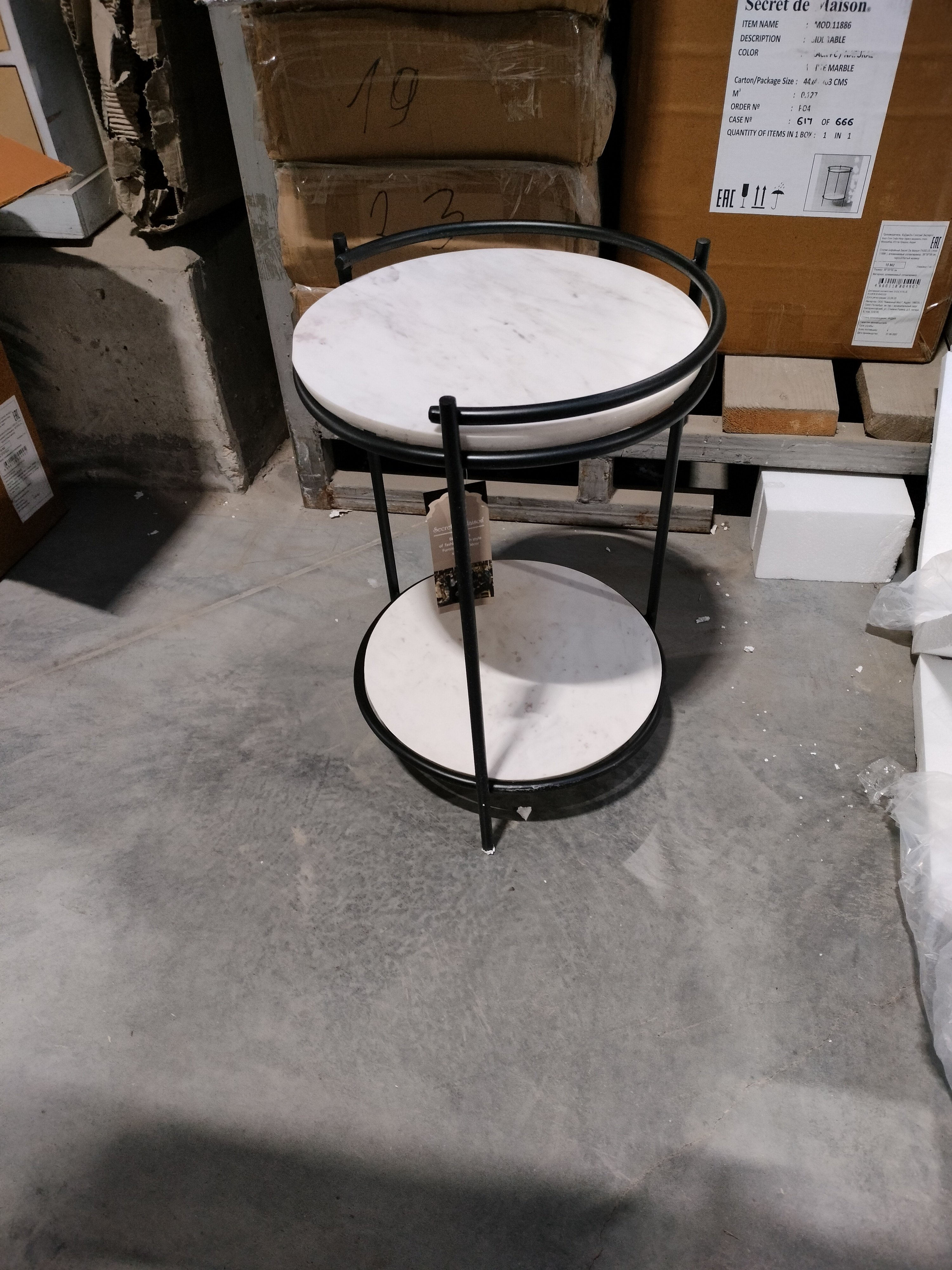 Описание товара без дефектов: Эксклюзивный кофейный столик Secret De Maison FASELIS из коллекции SILVER дополнит интерьер вашего дома, создаст атмосферу уюта, легкости и воздушности в любом помещении. Элегантная модель отлично подойдет для приема гостей. За кофейным столиком можно комфортно расположиться и выпить чашку чая или кофе в приятной компании. Прочный каркас модели выполнен из алюминиевого сплава, что придает ей устойчивость, основательность и надежность. Круглая столешница изготовлена из белого мрамора - природного материала с красивой текстурой. Такая поверхность устойчива к повреждениям, воздействию температур и влаги, не требует специального ухода. Благодаря своим компактным размерам и небольшому весу кофейный столик можно легко переместить на новое место, не повреждая напольное покрытие. Черные алюминиевые ножки и белая мраморная столешница будут удачно сочетаться с другими предметами интерьера. Кофейный столик FASELIS - отличное украшение вашего дома, способное придать обстановке особый шарм и обаяние. Кофейный столик будет отлично смотреться в гостинной, спальне или при входе в кафе. Столик поставляется в собранном виде.