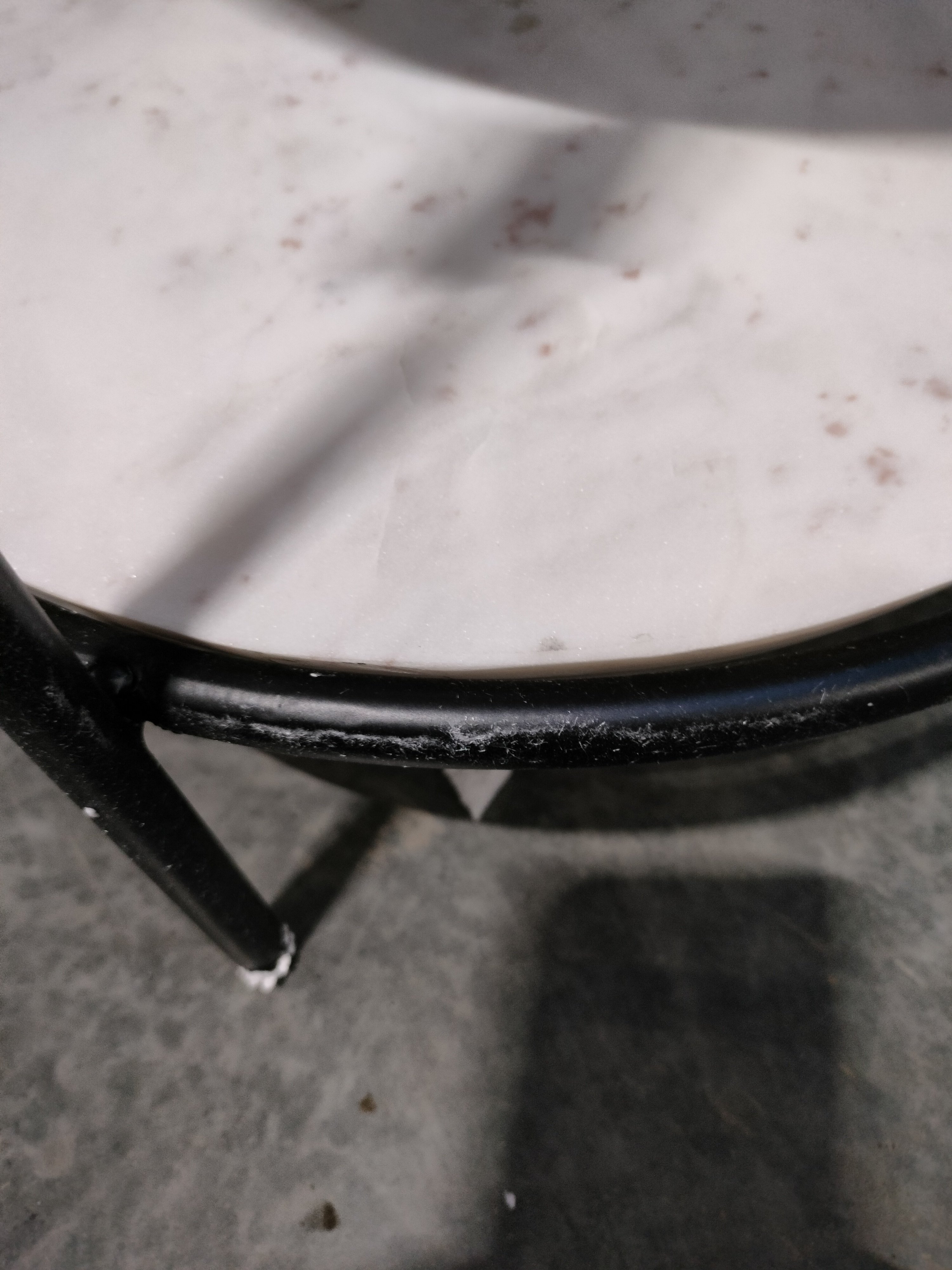 Описание дефекта: царапины на металлических деталях. Верхняя столешница не плоьно садится в закругление.