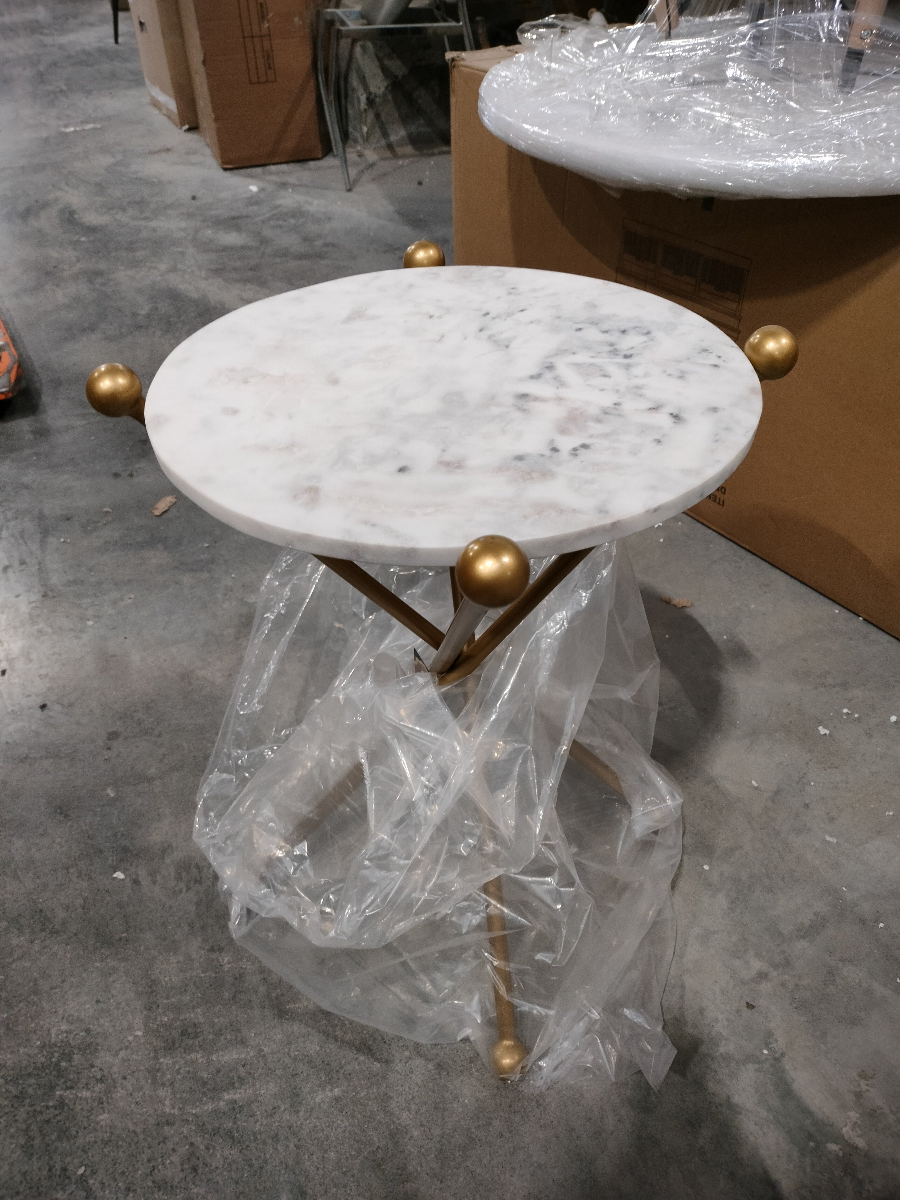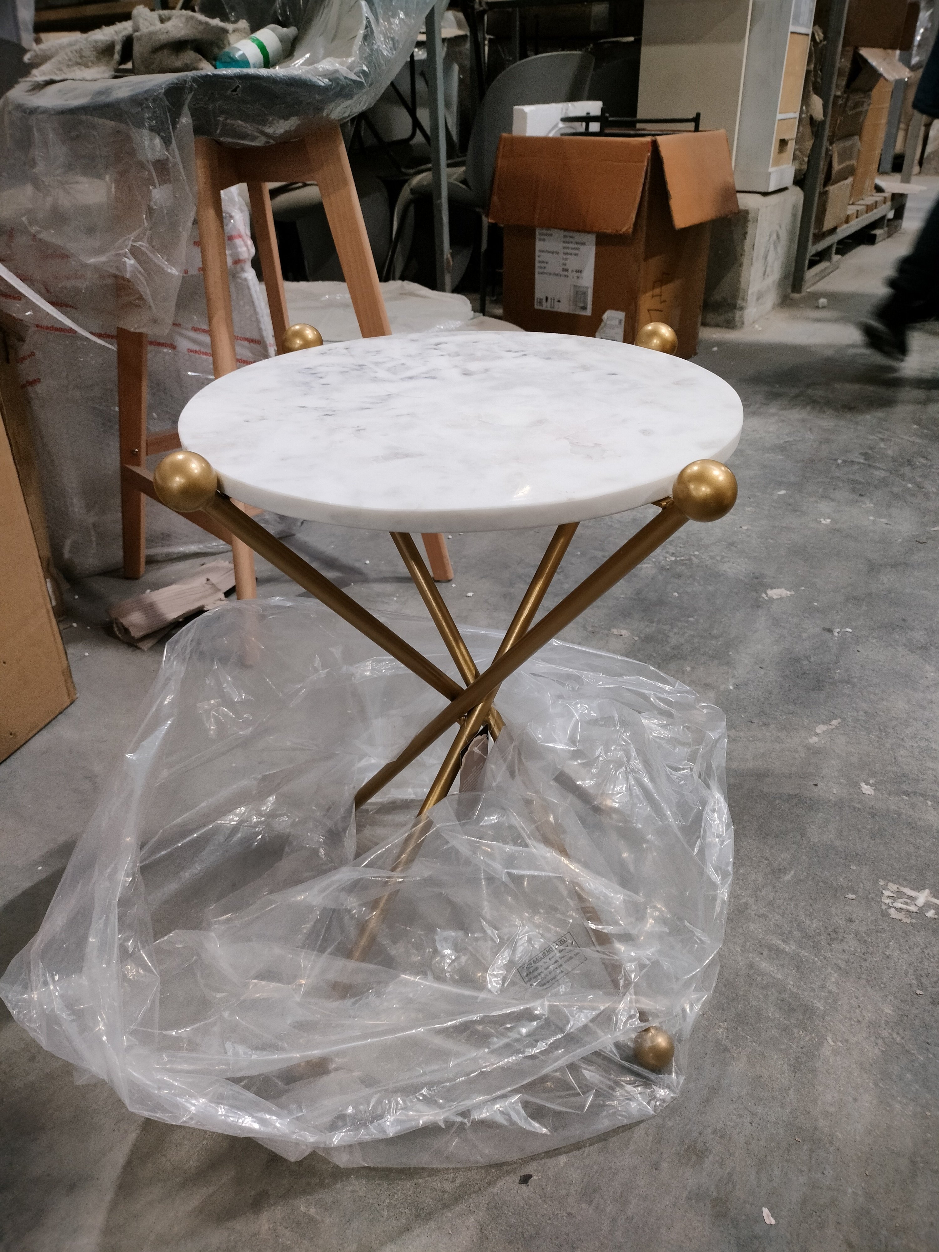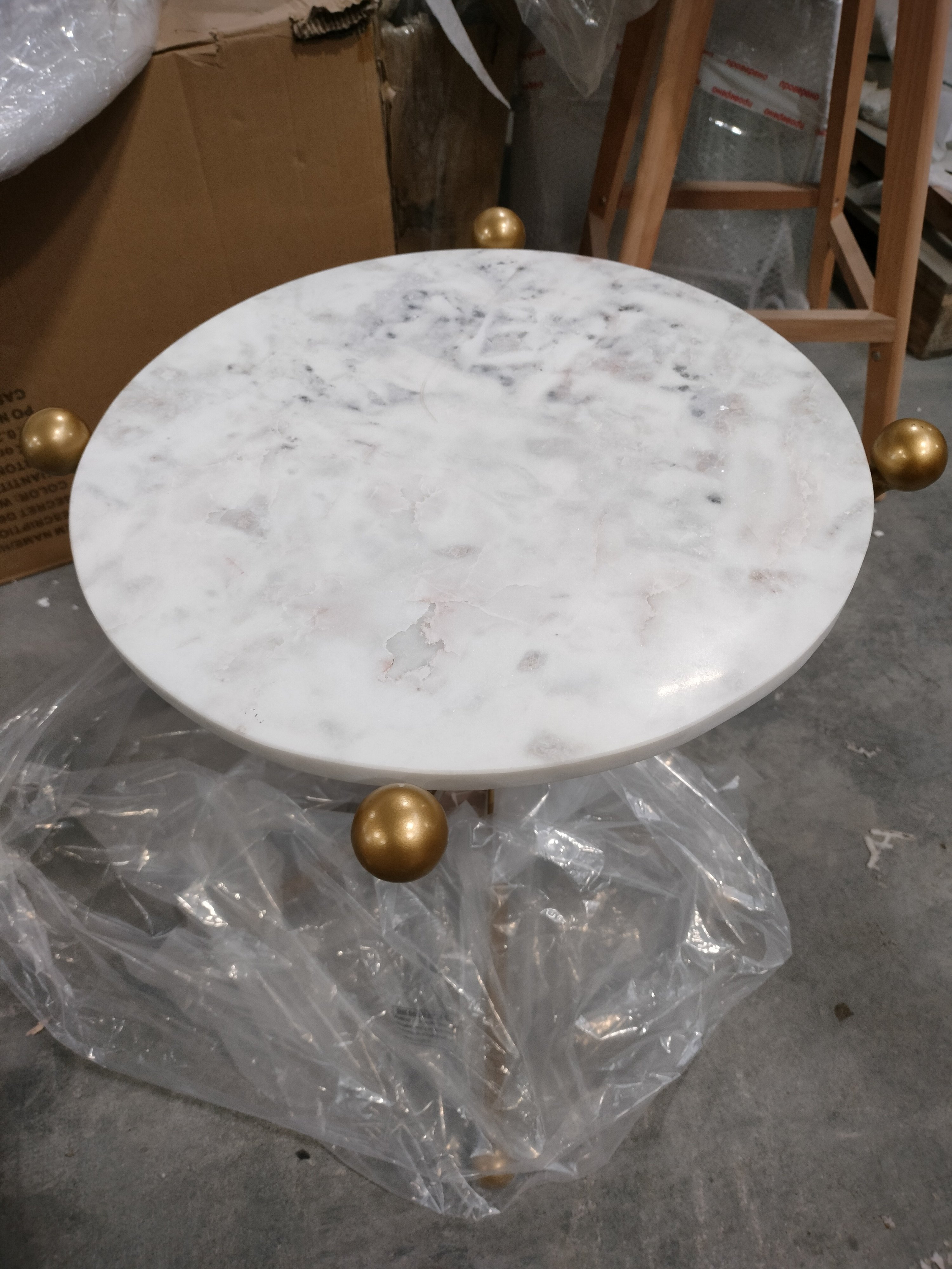 Описание товара без дефектов: Изысканный дизайн кофейного столика Secret De Maison TRIXY из коллекции SILVER создаст в вашем доме атмосферу роскоши и великолепия. Такая модель прекрасно впишется в любой интерьер, будет прекрасно смотреться в гостиной, спальне, на кухне или в столовой. Сочетание золотых ножек и белой круглой столешницы привнесет ноты изысканности в обстановку. Компактные размеры и небольшой вес делают модель мобильной, что позволяет перемещать кофейный столик в любую часть дома без особых усилий. Тонкие ножки из алюминиевого сплава надежны и устойчивы. Столешница выполнена из мрамора с красивой текстурой натурального камня, придающей интерьеру особую индивидуальность. Мраморная поверхность проста в уходе, прослужит долгие годы, сохраняя свой первоначальный вид и стильный дизайн. Кофейный столик Secret De Maison TRIXY станет оригинальным украшением вашего дома, придаст помещению ощущение уюта и комфорта. Кофейный столик будет отлично смотреться в гостинной, спальне или при входе в кафе. Столик поставляется в собранном виде.