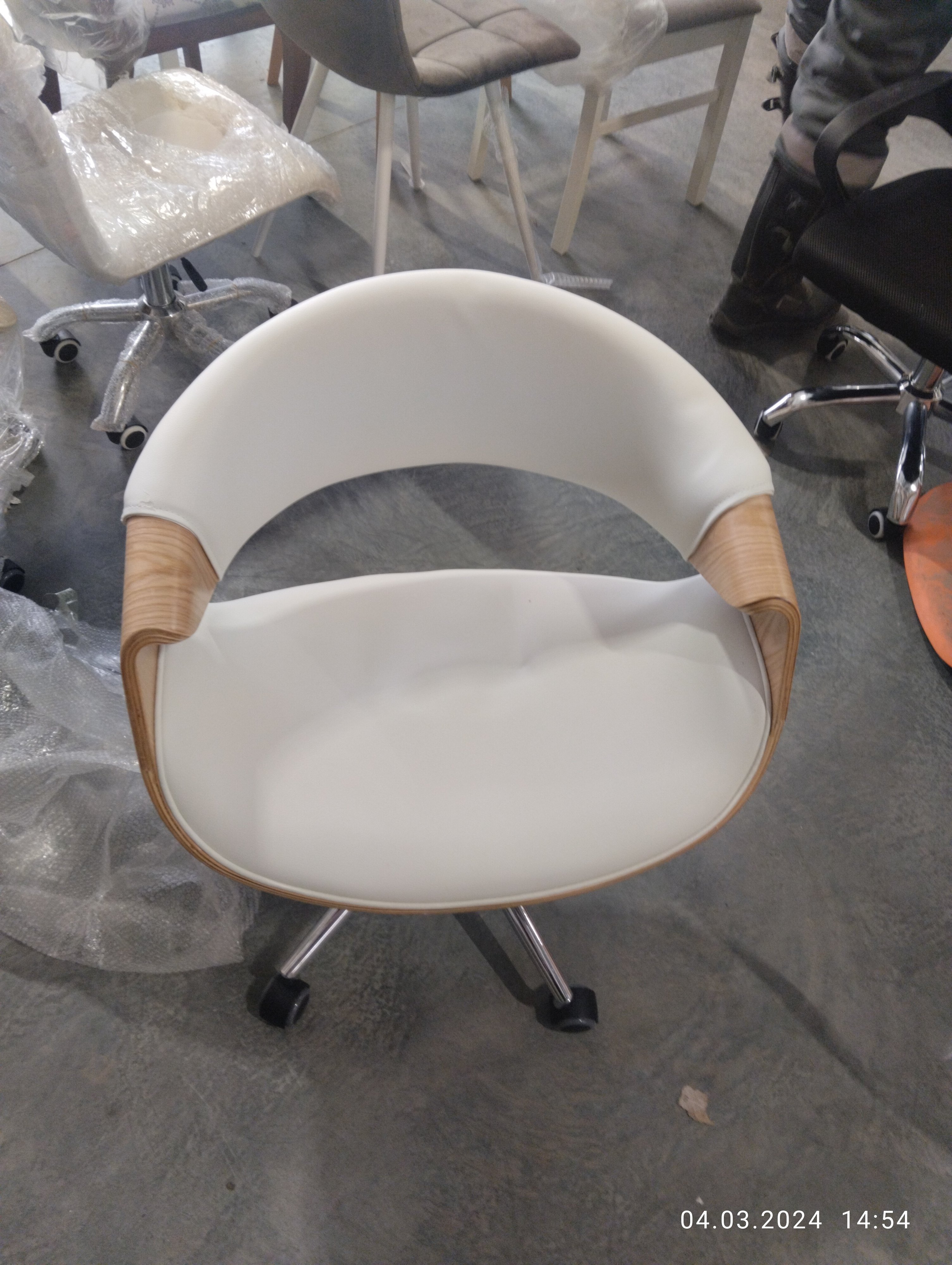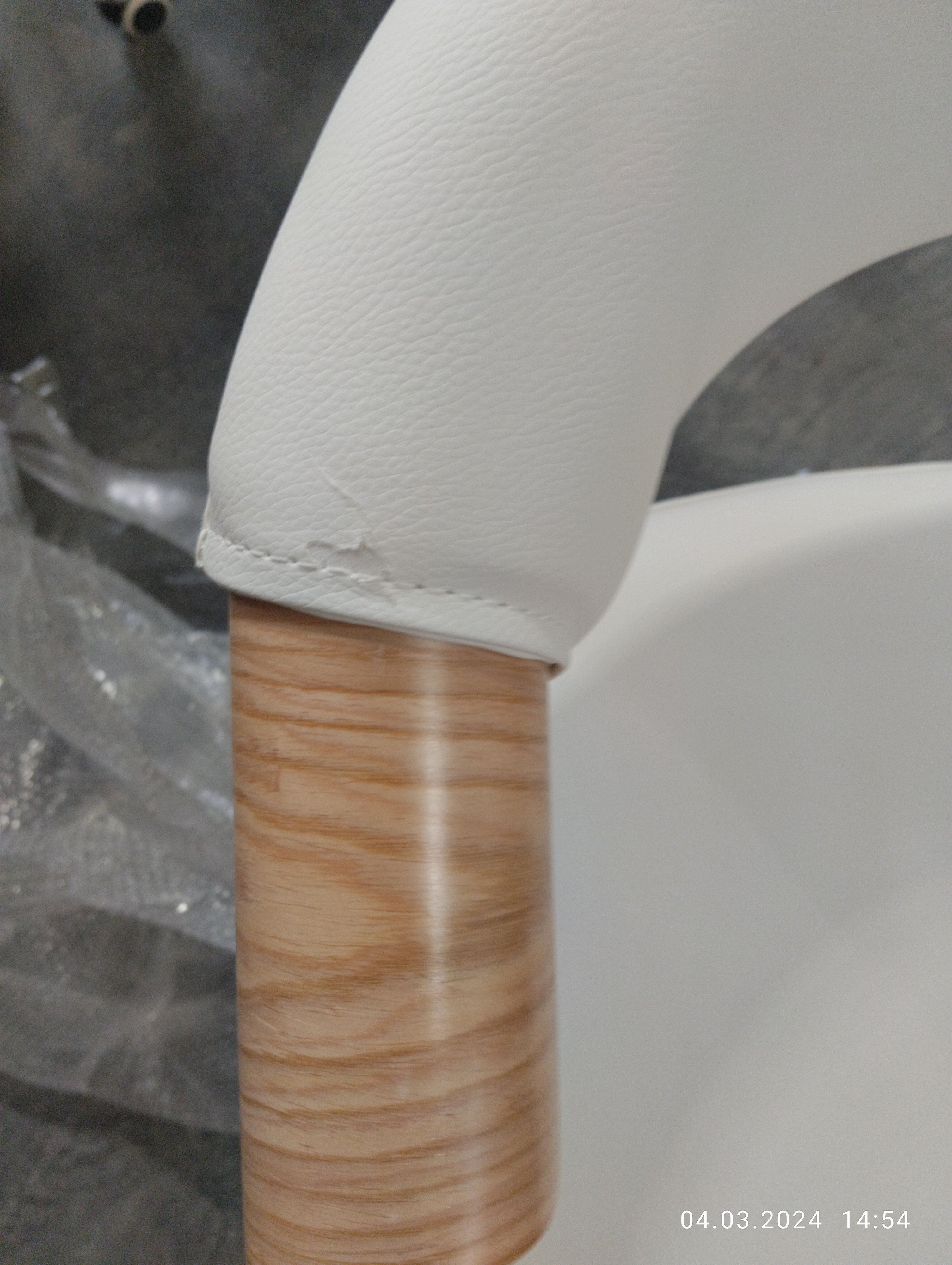 Описание товара без дефектов: Элегантное и надежное кресло BEND из коллекции OFFICE - показатель безупречного вкуса своего владельца. Уникальная модель прекрасно впишется в дизайн офиса или дома. Деревянный каркас из шпонированной фанеры и обивка из искусственной кожи – удачное сочетание надежности и элегантности. Искусственная кожа гипоаллергенна, износостойка и проста в уходе. Сиденье с мягким наполнителем из пенополиуретана стандартной плотности пропускает воздух, не накапливает пыль, не деформируется на протяжении длительного времени. Для принятия удобной позы кресло регулируется по высоте. Деревянные подлокотники необычной формы помогут уменьшить дискомфорт в плечах и шее при длительной работе, а также комфортно расположиться у стола. Металлическая хромированная крестовина диаметром 640 мм обеспечивает устойчивость и безопасность модели. Сочетание каркаса натурального оттенка с белым сиденьем и спинкой выглядит привлекательно и эстетично. Наличие высококачественных полиамидных роликов позволяет легко передвигаться на кресле, даже не вставая с него. Колесики подходят для использования на низковорсовых ковровых покрытиях и на специальных защитных поверхностях. Модель BEND отличается повышенным комфортом и презентабельным внешним видом, удивит владельца своей долговечностью и надежностью. Максимальная нагрузка кресла 120 кг. Кресло поставляется в разобранном виде. Инструкция по сборке прилагается.