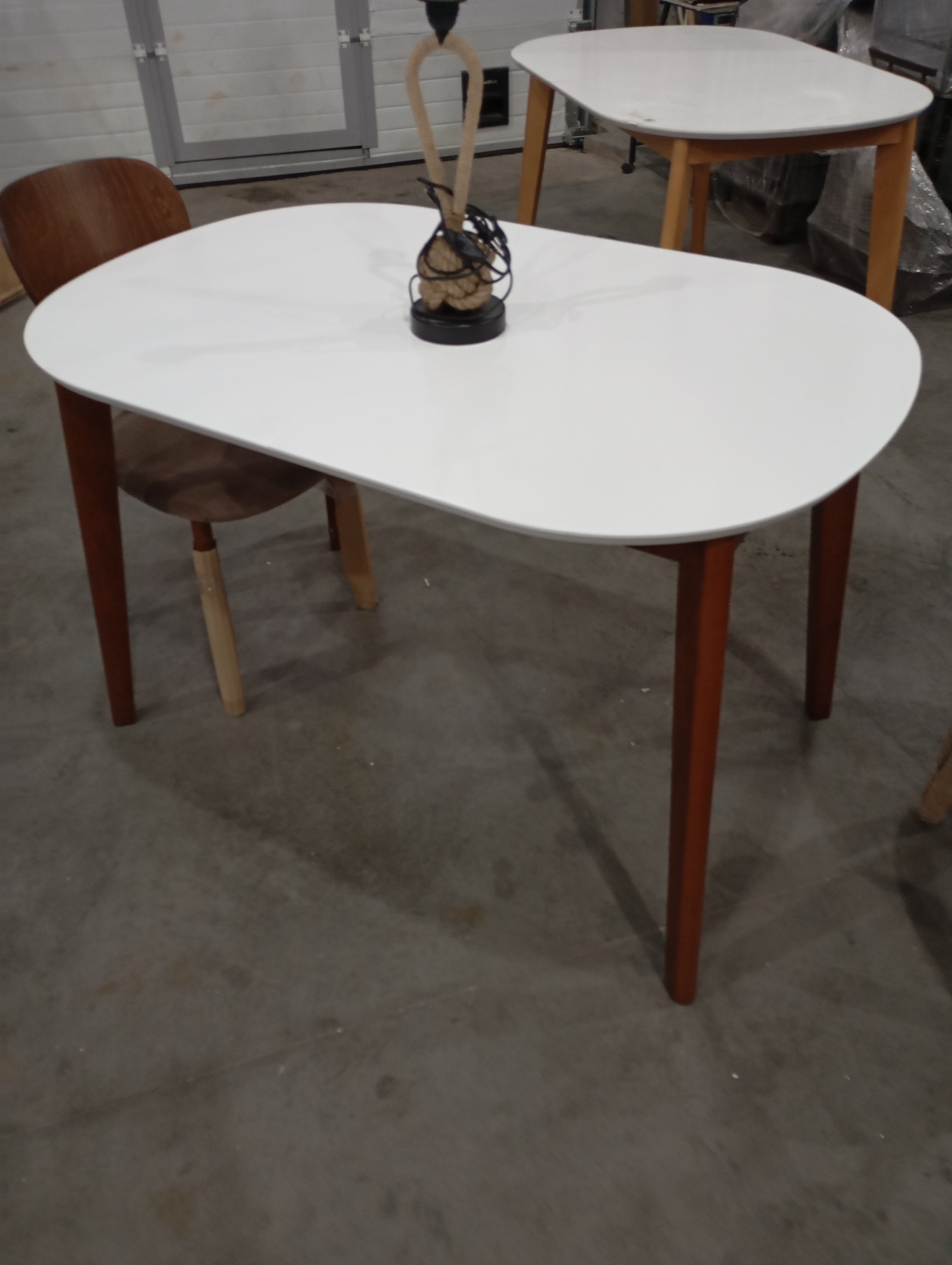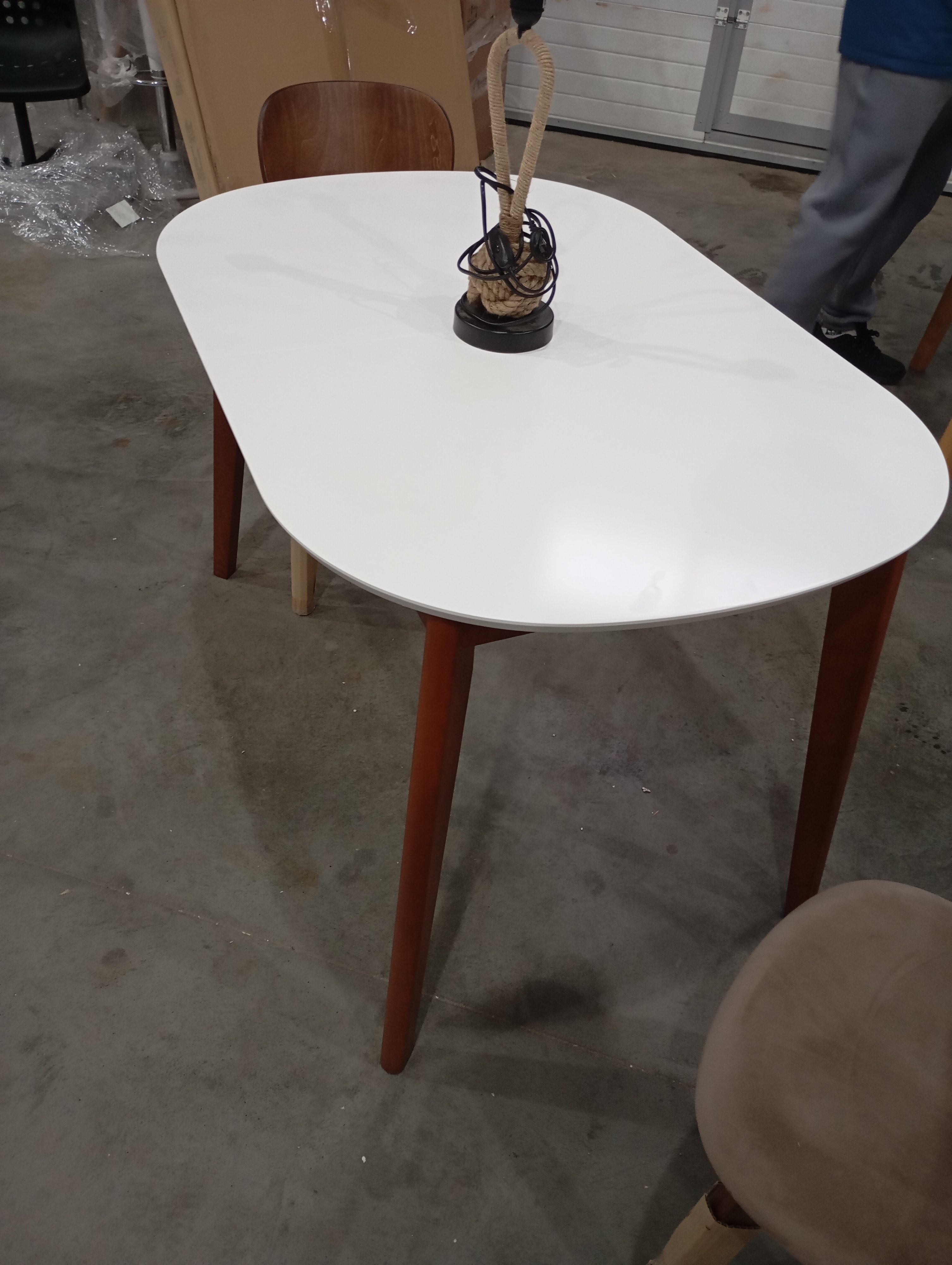 Описание товара без дефектов: Стильный обеденный стол BOSCO из Датской коллекции станет прекрасным украшением любой обстановки. Модель гармонично впишется как в классический, так и в современный интерьер. Контрастное сочетание белой столешницы и коричневых ножек поможет создать уют в любом помещении вашего дома. Отсутствие острых углов делает стол BOSCO идеальным решением для семей с маленькими детьми. Модель имеет надежный раздвижной механизм, который легко и без особых временных затрат дает возможность увеличить обеденное пространство. Размеры стола BOSCO позволяют с комфортом разместить от четырех до шести человек, при этом ваши гости не будут чувствовать тесноты или неудобства. Тонкие изящные ножки выполнены из надежной и прочной древесины – массива бука. Столешница овальной формы, изготовленная из МДФ со шпоном бука и глянцевым напылением, отличается элегантностью, практичностью и безопасностью. Она не требует специального ухода, устойчива к воздействию жидкости и тепла. Стол подойдёт для гостиной, для кухни, для загородного дома, для ресторана или для кафе. Стол поставляется в разобранном виде, необходима несложная сборка по инструкции.