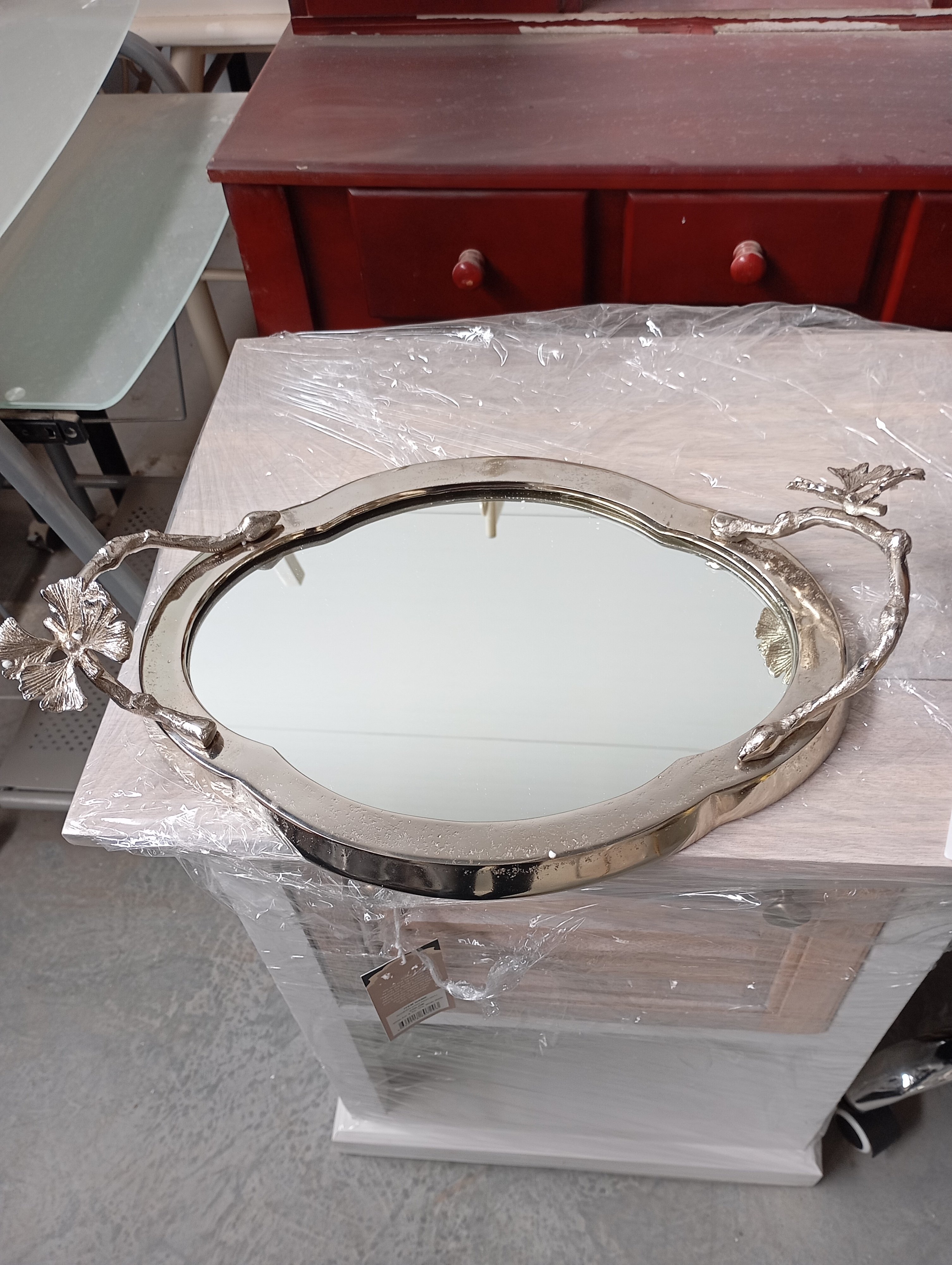 Описание товара без дефектов: Визуальная красота и изящество прекрасно сочетаются в дизайне подноса Secret De Maison MAPLE1 из коллекции SILVER. Необычное декорирование, зеркальная поверхность, изысканная форма создают неповторимый облик изделия, подчеркивают его грациозность и великолепие. Элегантный поднос, изготовленный из алюминиевого сплава и декорированный листьями, используется не только для подачи блюд, но и является идеальной подставкой для свечей, косметики, украшений и парфюма. Металлический материал с отделкой под никель (Nickel) обеспечивает высокую прочность и долговечность изделия. Модель подчеркнет особый статус владельцев, наделит помещение красотой, богатством и роскошью. Эта красивая интерьерная вещь не требует специального ухода и сложной чистки, восхитит вас своими эксплуатационными качествами, долговечностью и привлекательностью.