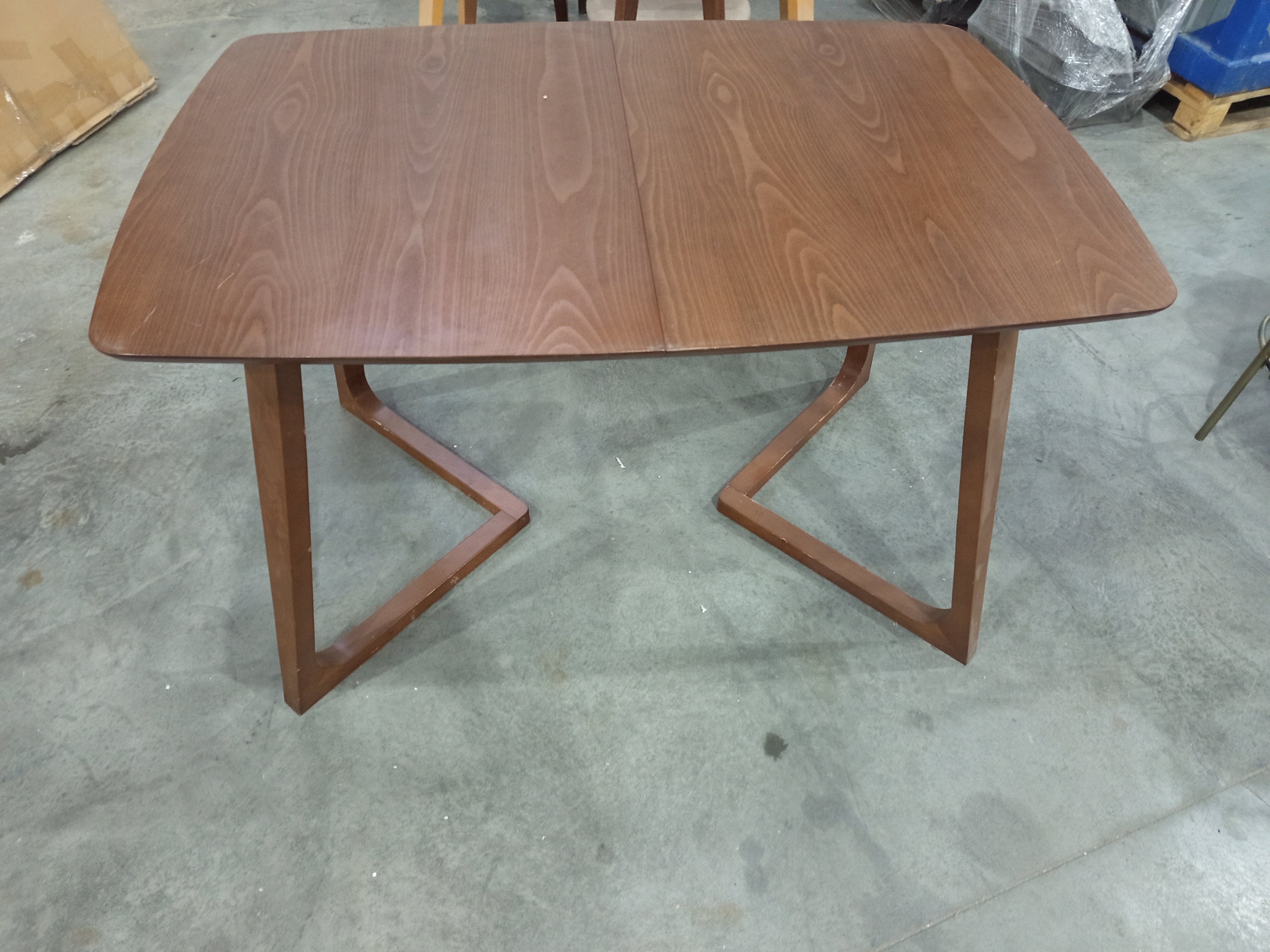 Описание товара без дефектов: Необычный раскладной стол VAKU из Датской коллекции сделает оригинальным и узнаваемым интерьер загородного дома или городской квартиры. Необычная форма ножек придаст любому помещению особую индивидуальность и привлекательность. Надежное основание из массива бука и прямоугольная столешница из МДФ с закругленными углами добавит уюта и комфорта в обстановку кухни, гостиной или столовой. Надежный стол с прочным раздвижным механизмом позволит увеличить обеденное пространство и разместить с удобством от четырех до шести человек. Стильный стол VAKU благородного коричневого цвета ─ это воплощение простоты, лаконичности и функциональности. Стол подойдёт для гостиной, для кухни, для загородного дома, для ресторана или для кафе. Модель не требует специального ухода, устойчива к воздействию жидкостей и тепла, проста в сборке.