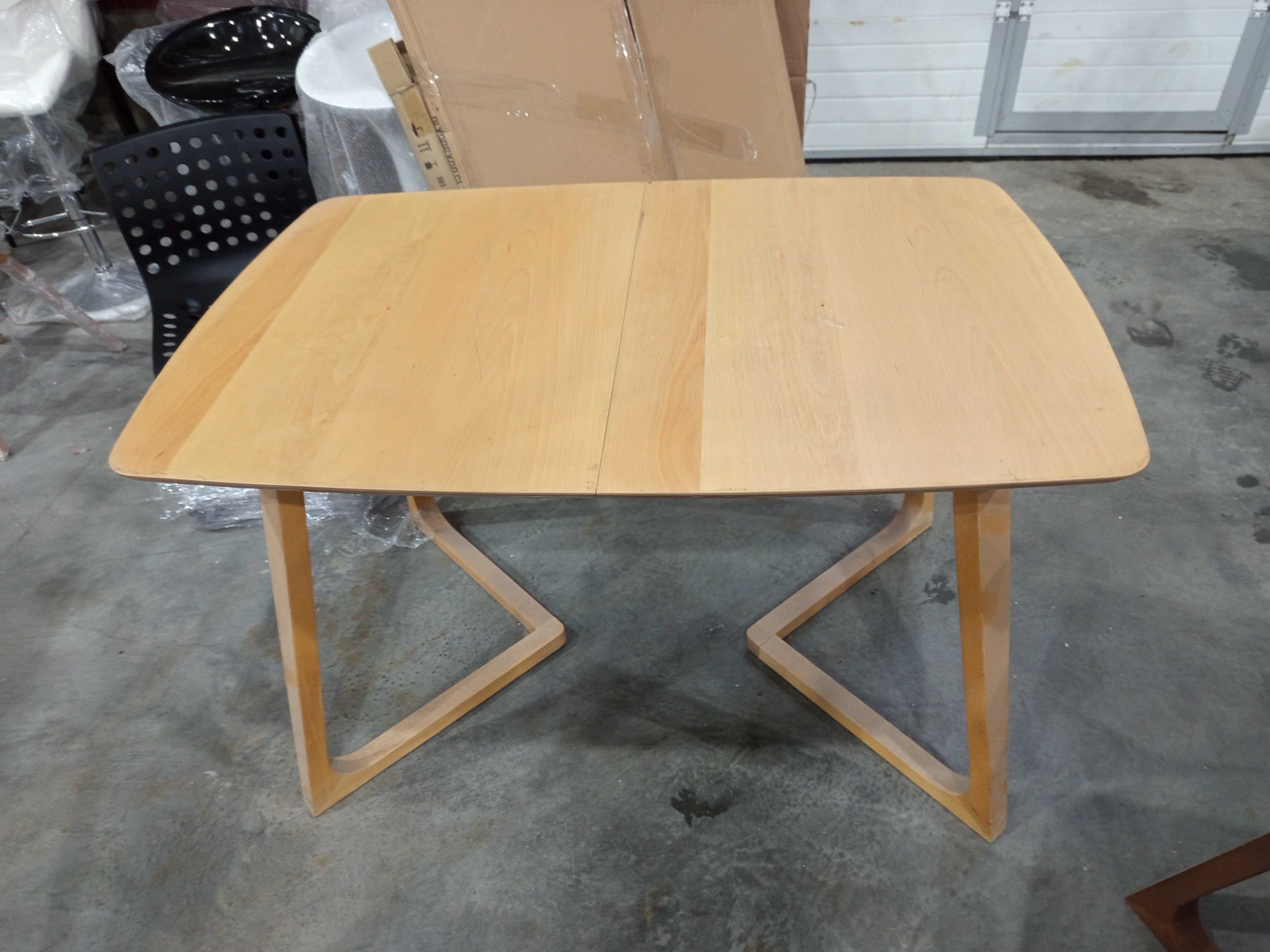 Описание товара без дефектов: Необычный раскладной стол VAKU из Датской коллекции сделает оригинальным и узнаваемым интерьер загородного дома или городской квартиры. Необычная форма ножек придаст любому помещению особую индивидуальность и привлекательность. Надежное основание из массива бука и прямоугольная столешница из МДФ с закругленными углами добавит уюта и комфорта в обстановку кухни, гостиной или столовой. Надежный стол с прочным раздвижным механизмом позволит увеличить обеденное пространство и разместить с удобством от четырех до шести человек. Стильный стол VAKU цвета натурального дерева─ это воплощение простоты, лаконичности и функциональности. Стол подойдёт для гостиной, для кухни, для загородного дома, для ресторана или для кафе. Модель не требует специального ухода, устойчива к воздействию жидкостей и тепла, проста в сборке.